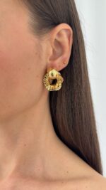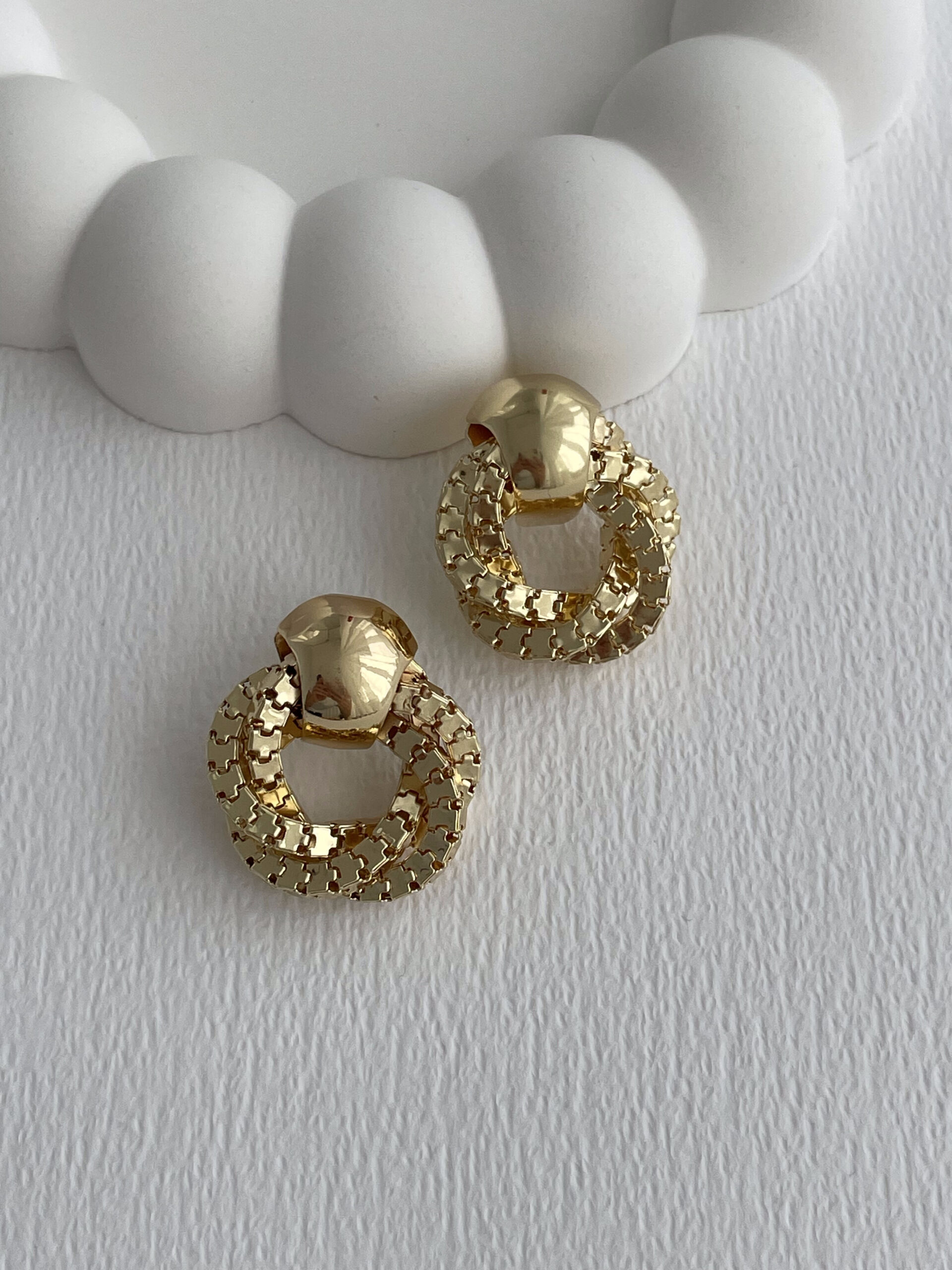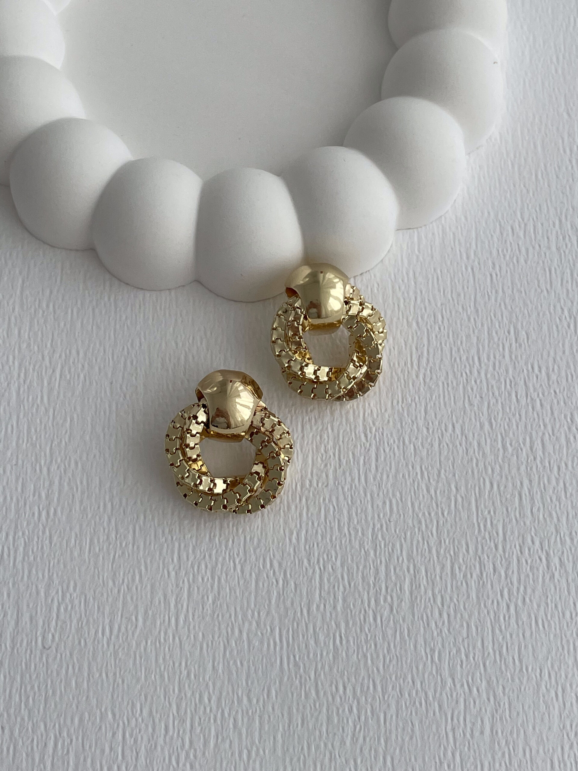 Özel Seri Sarmal Zincir Tasarım Gold Halka Küpe
