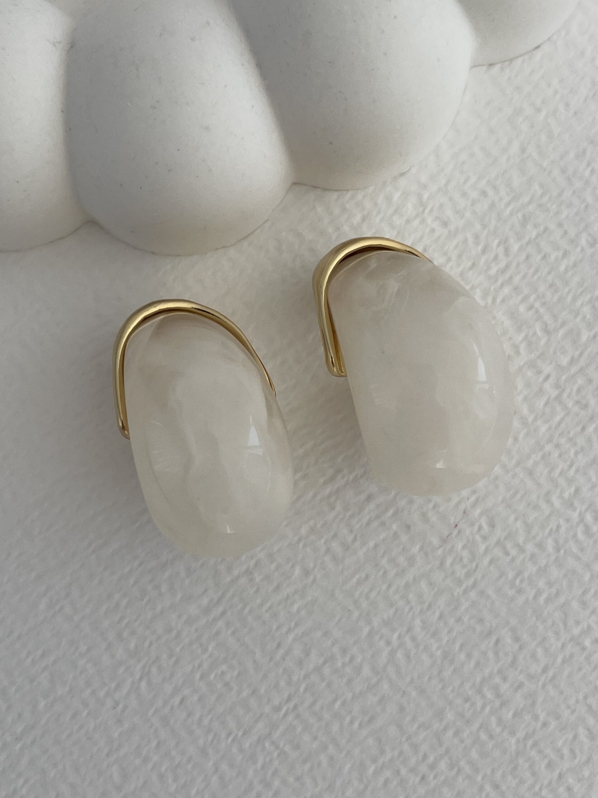 Özel Seri Saydam Krem Damla Tasarım Gold Detay Küpe