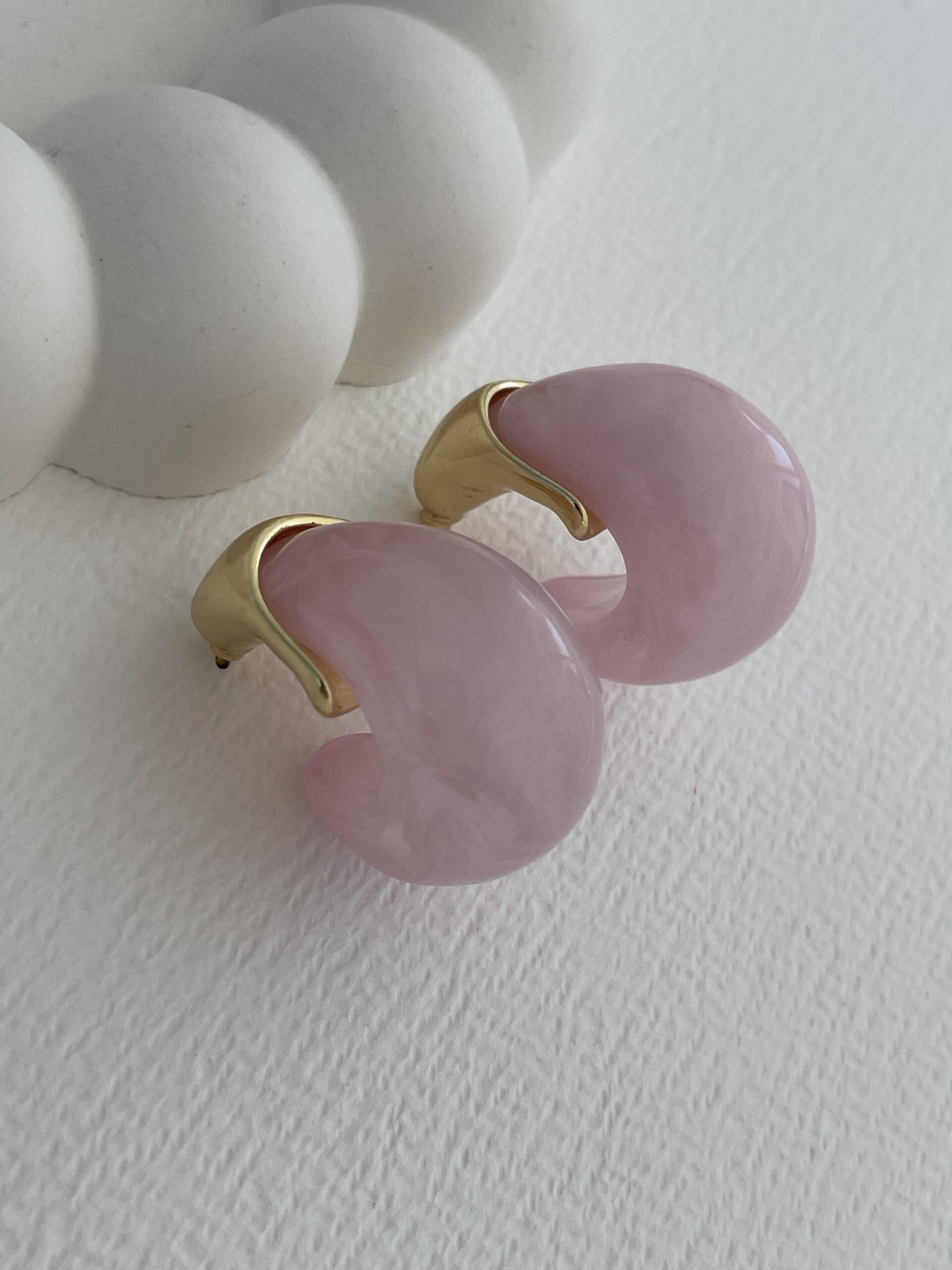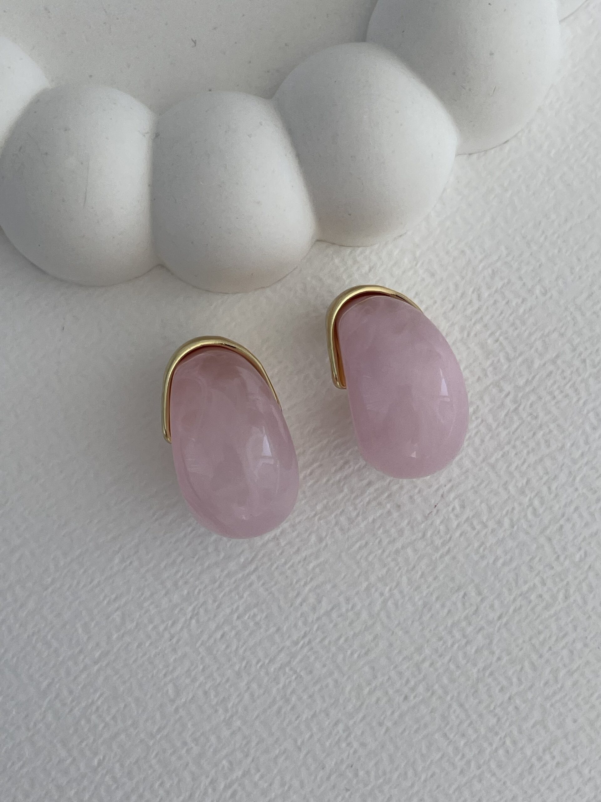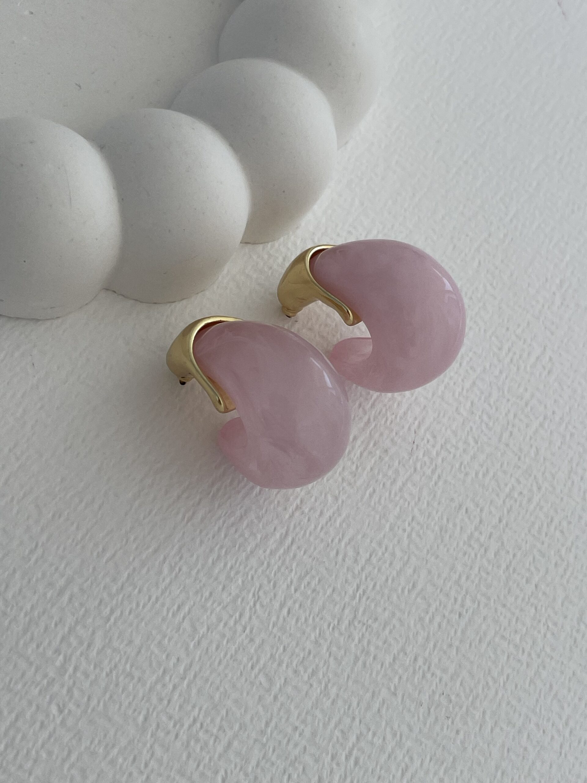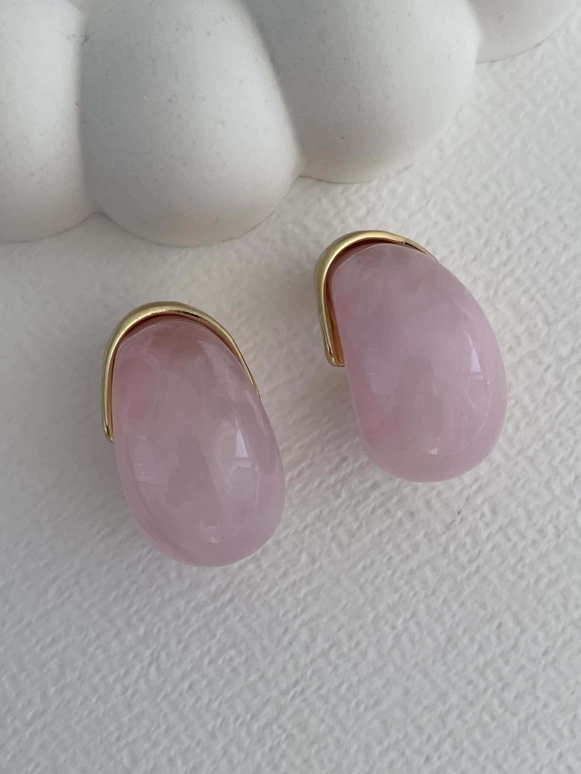 Özel Seri Saydam Toz Pembe Damla Tasarım Gold Detay Küpe