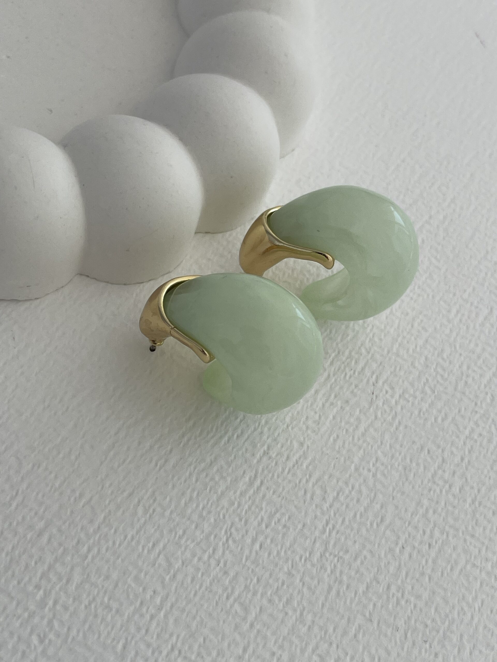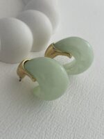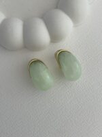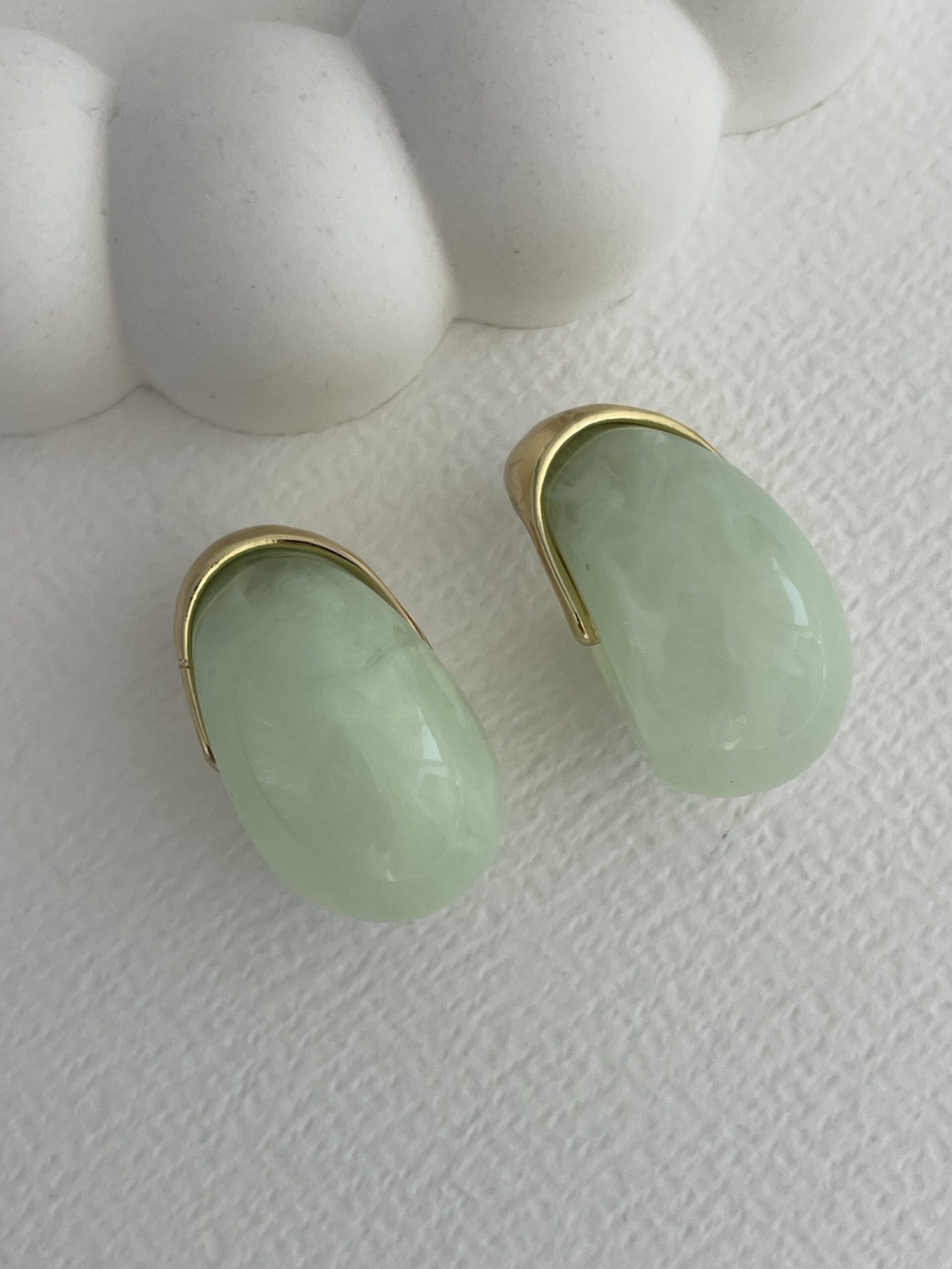 Özel Seri Saydam Yeşil Damla Tasarım Gold Detay Küpe
