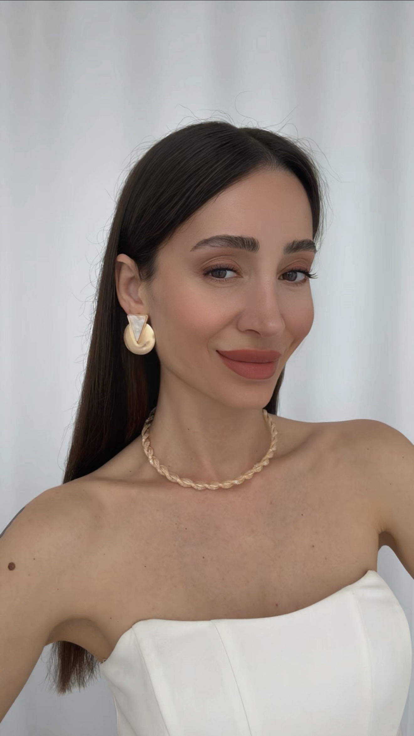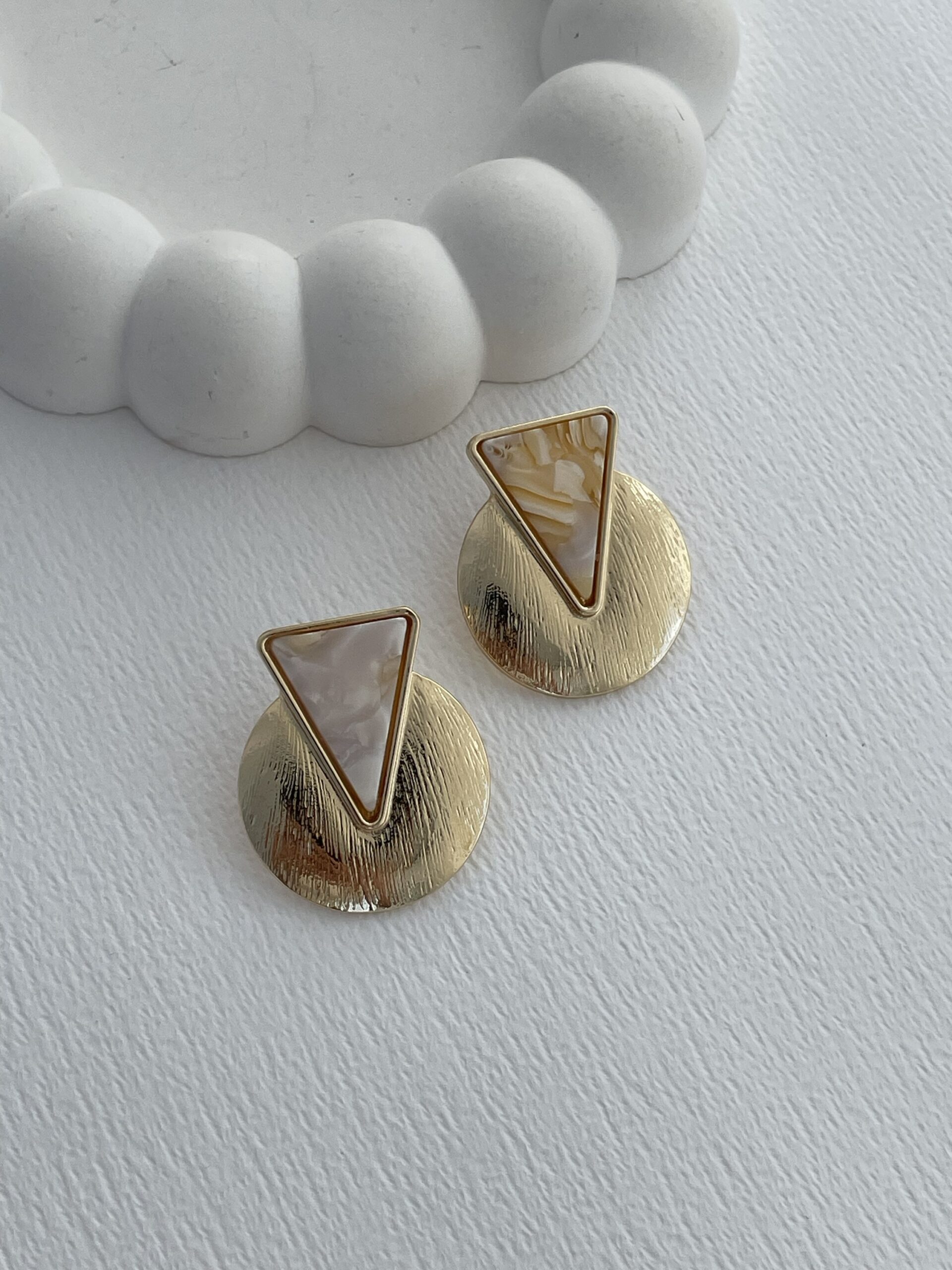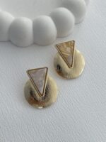 Özel Seri Sedef Detay Geometrik Tasarım Gold Küpe