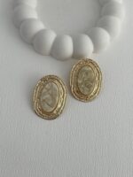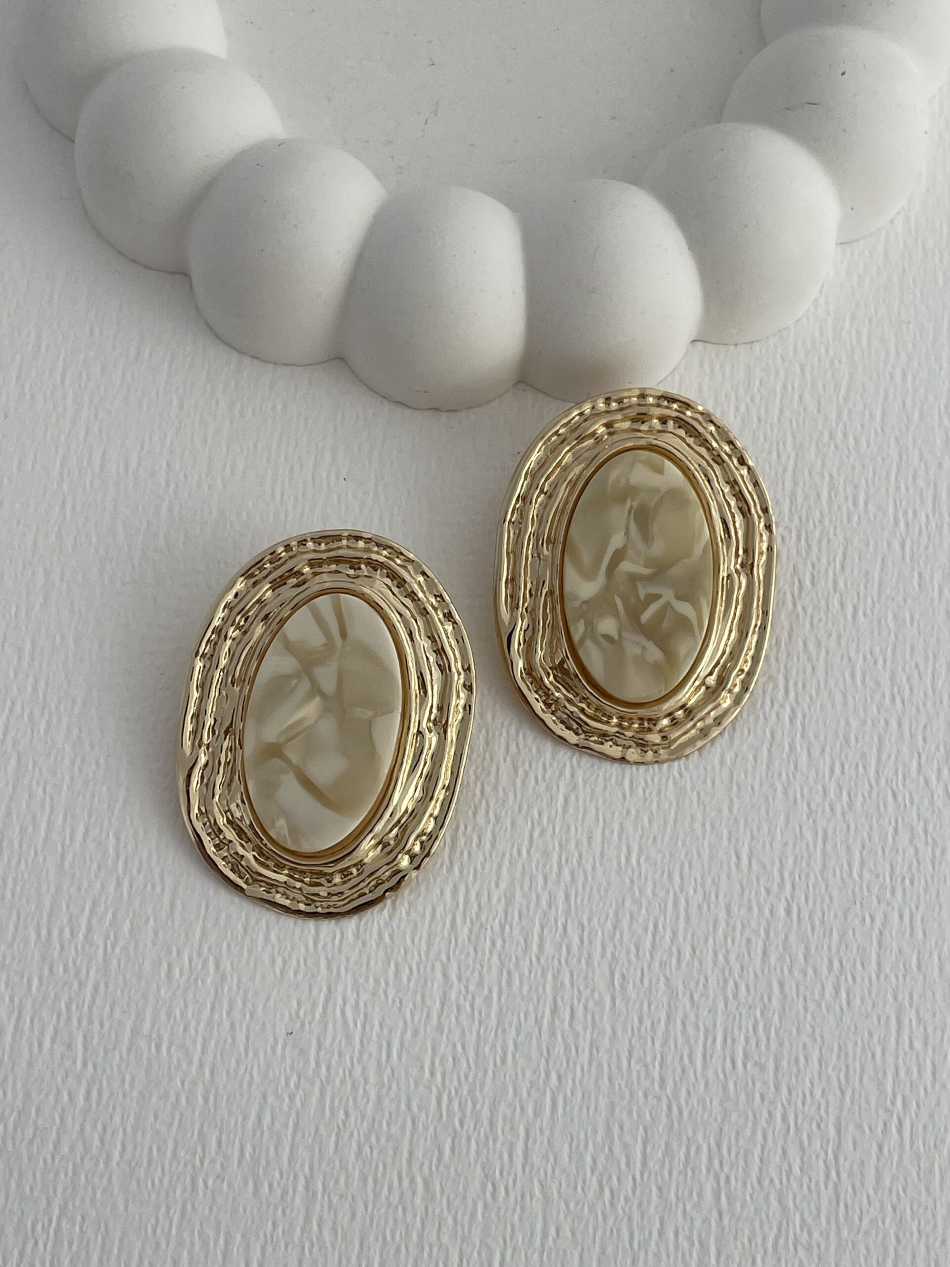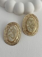 Özel Seri Sedef Detay Oval Tasarım Maksi Boy Gold Küpe