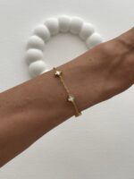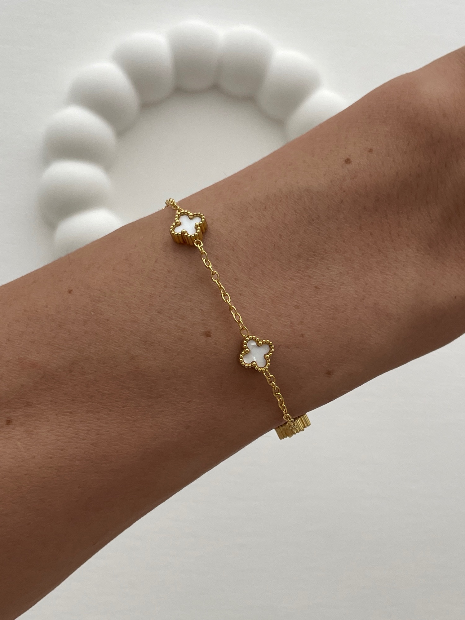 Özel Seri Sedef Mineli Beşli Mini Yonca Tasarım Gold Bileklik