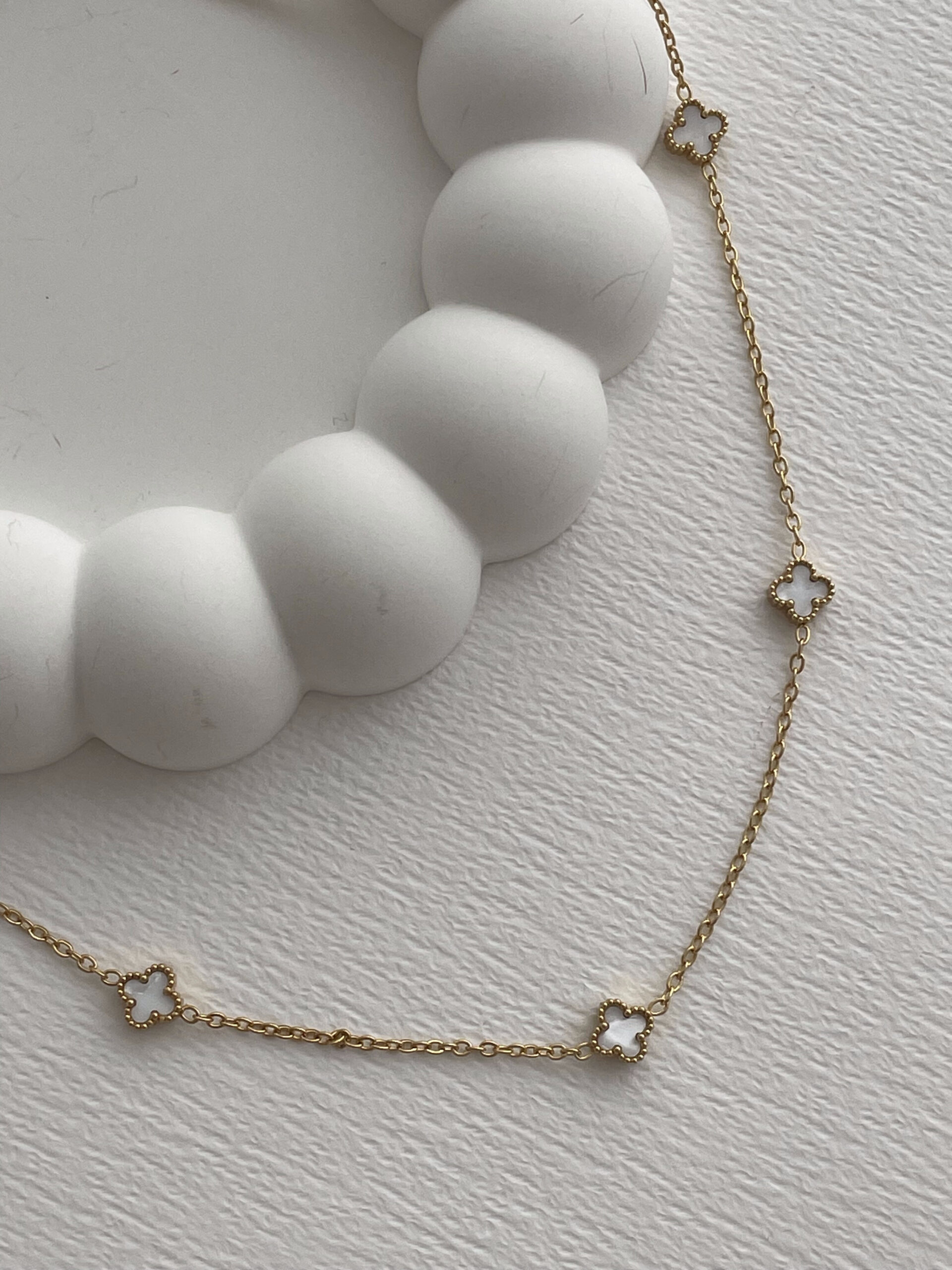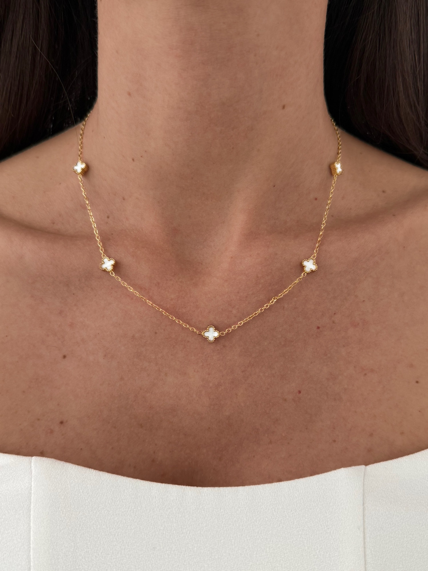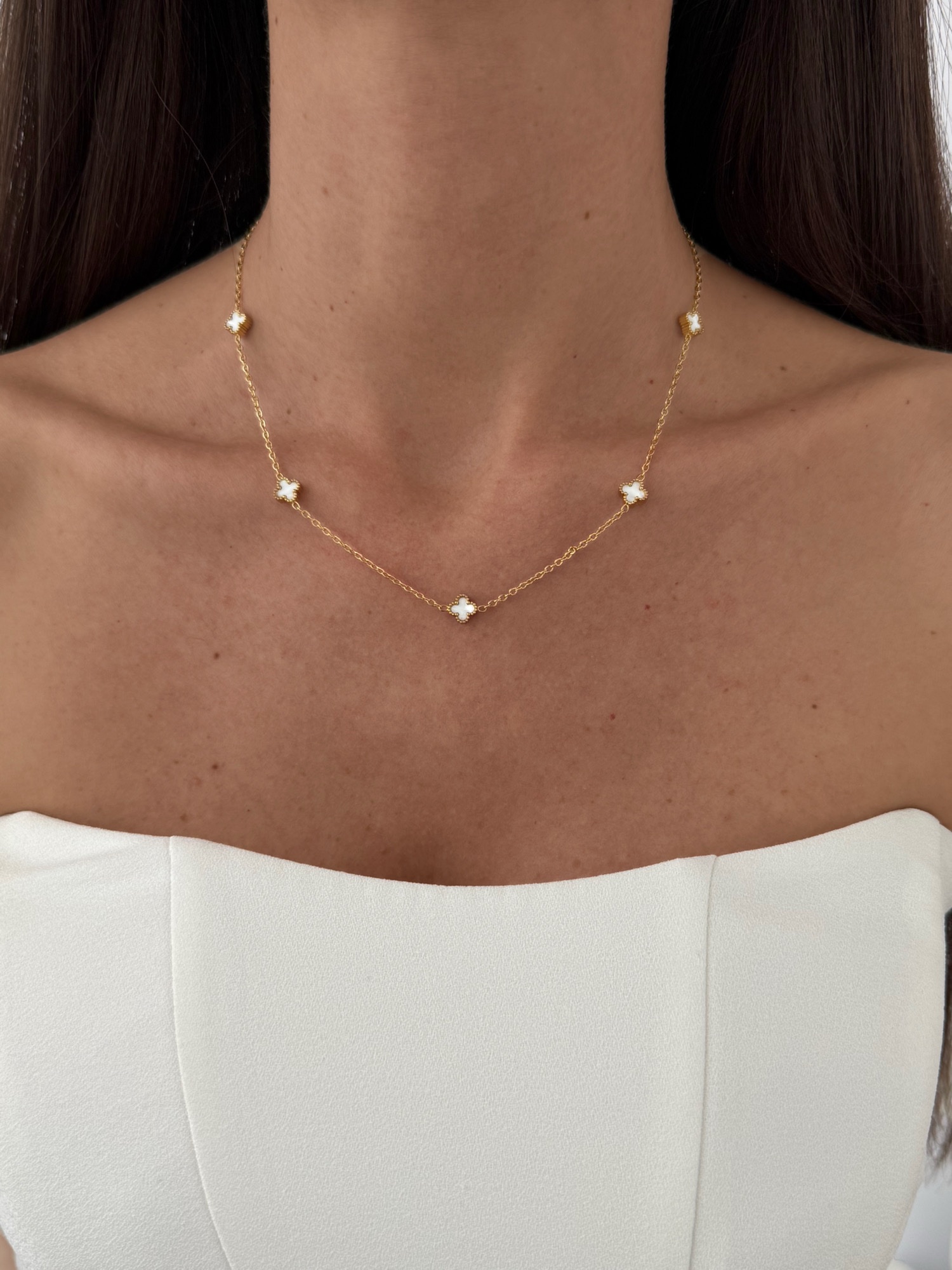 Özel Seri Sedef Mineli Beşli Mini Yonca Tasarım Gold Kolye