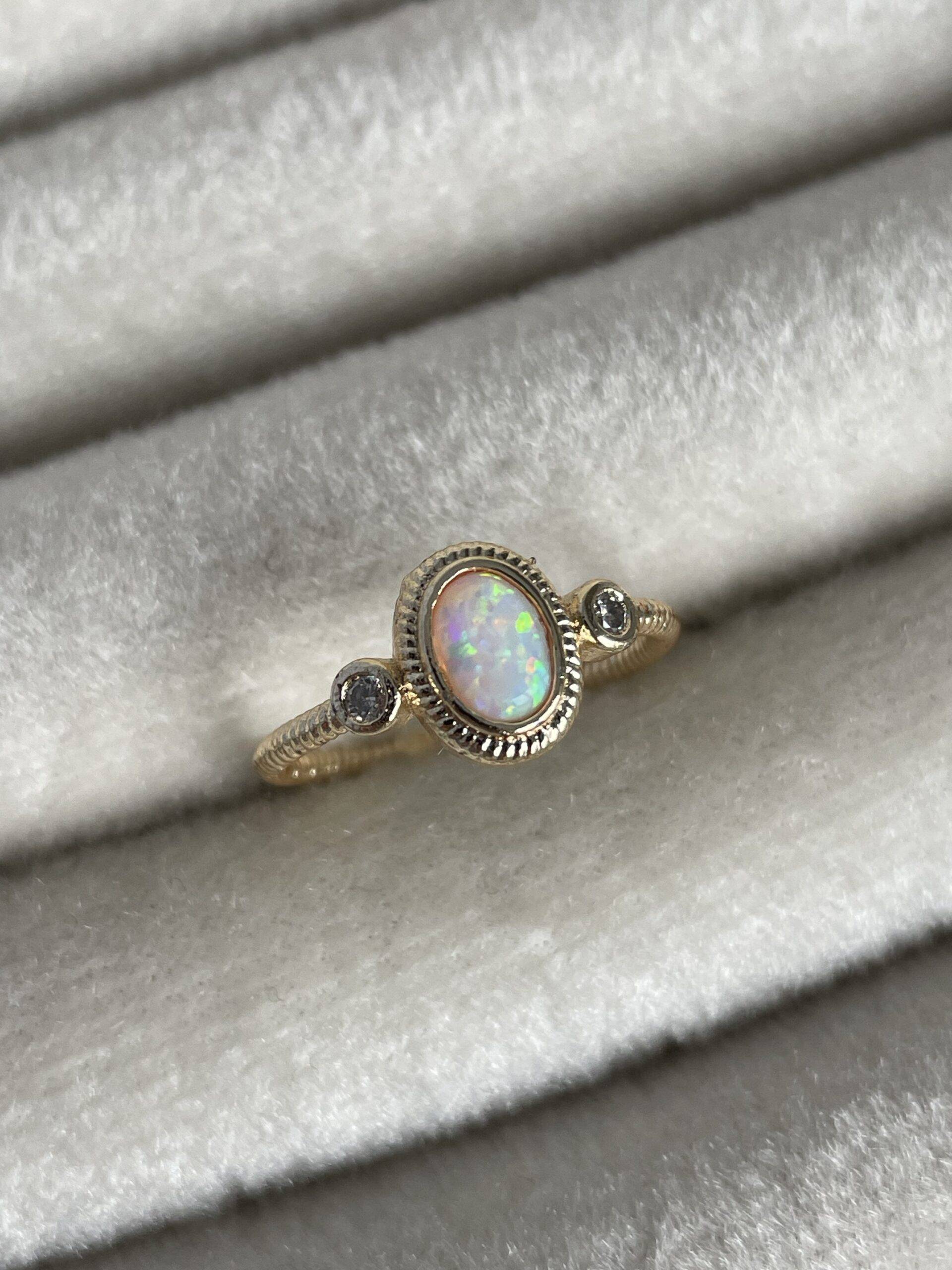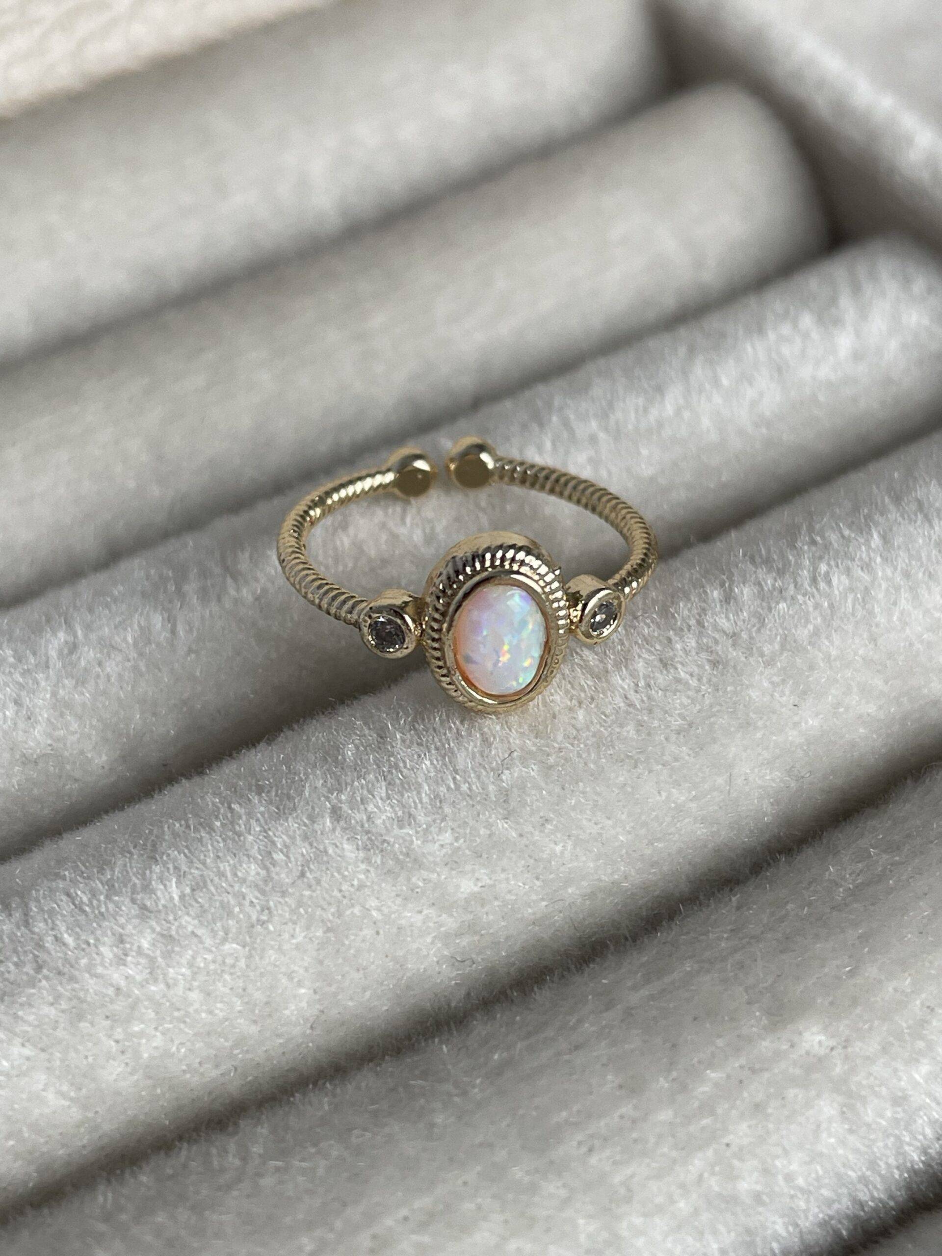 Özel Seri Sedefli Oval Tasarım Ayarlanabilir Gold Yüzük