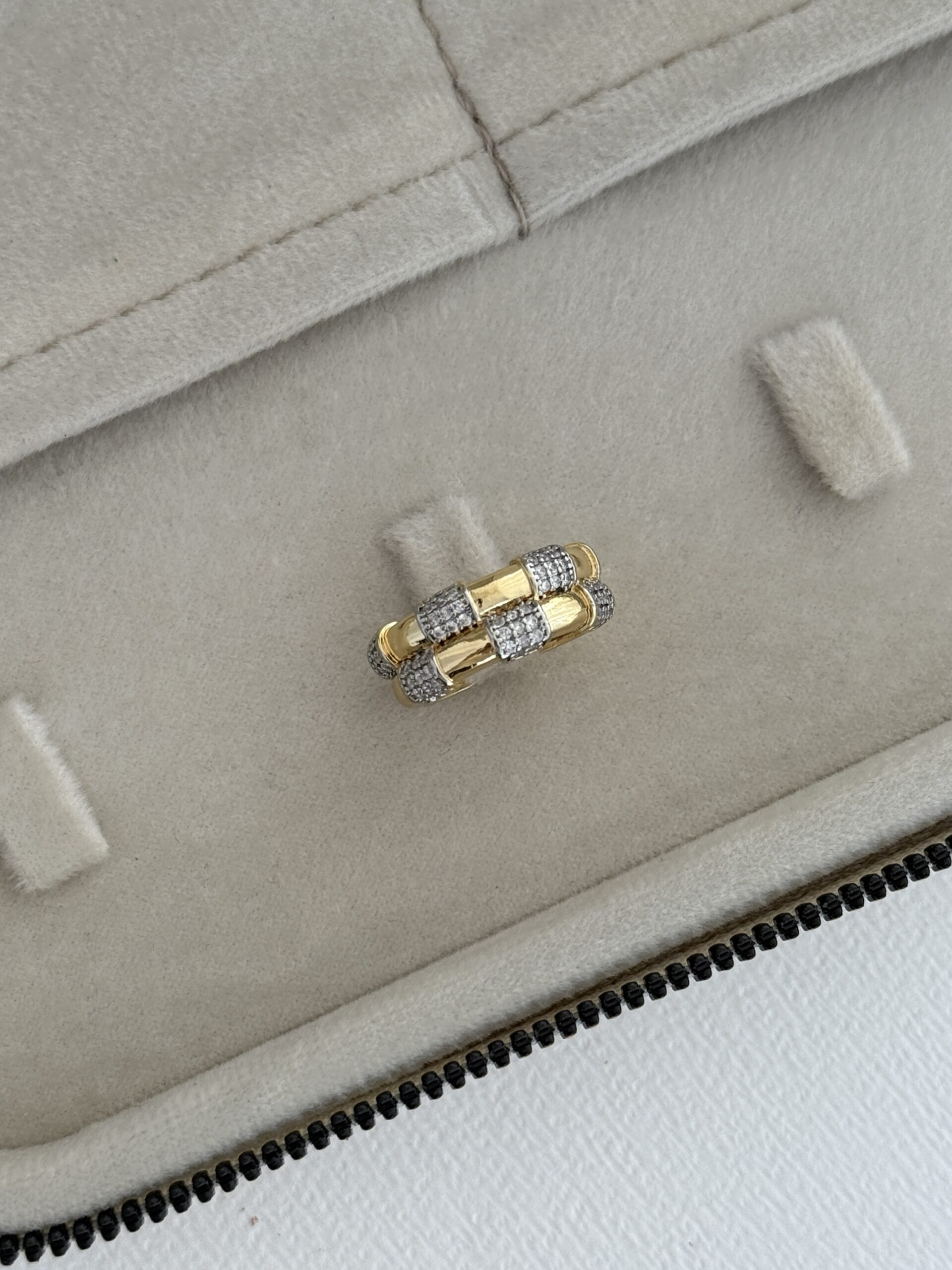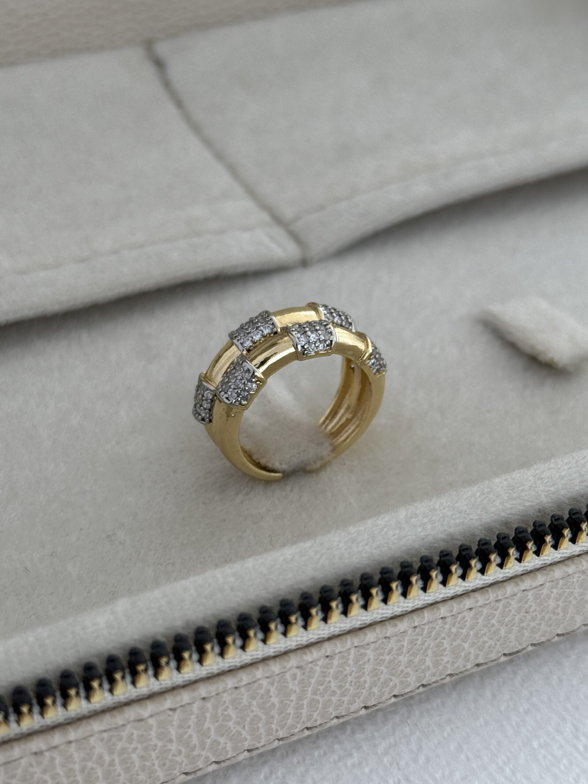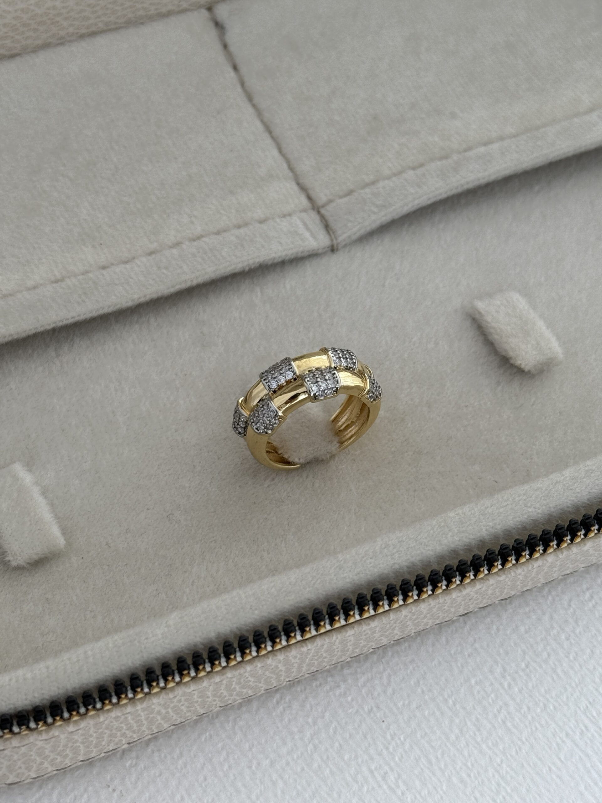 Özel Seri Şerit Zirkon Taş Detay İkili Gold Ayarlanabilir Yüzük