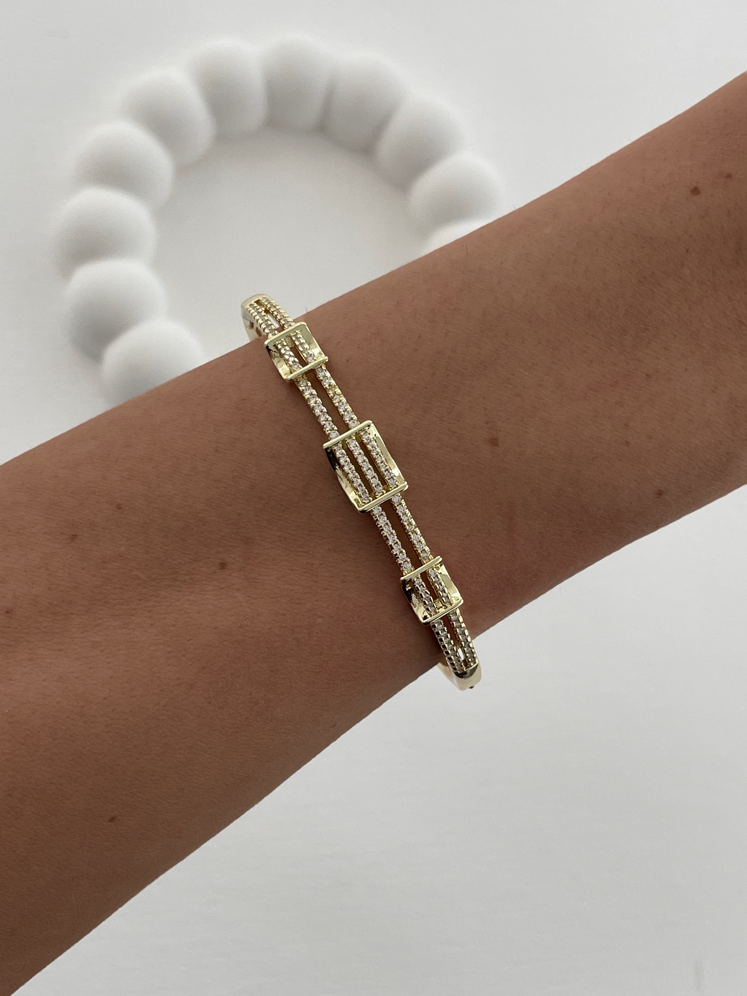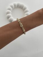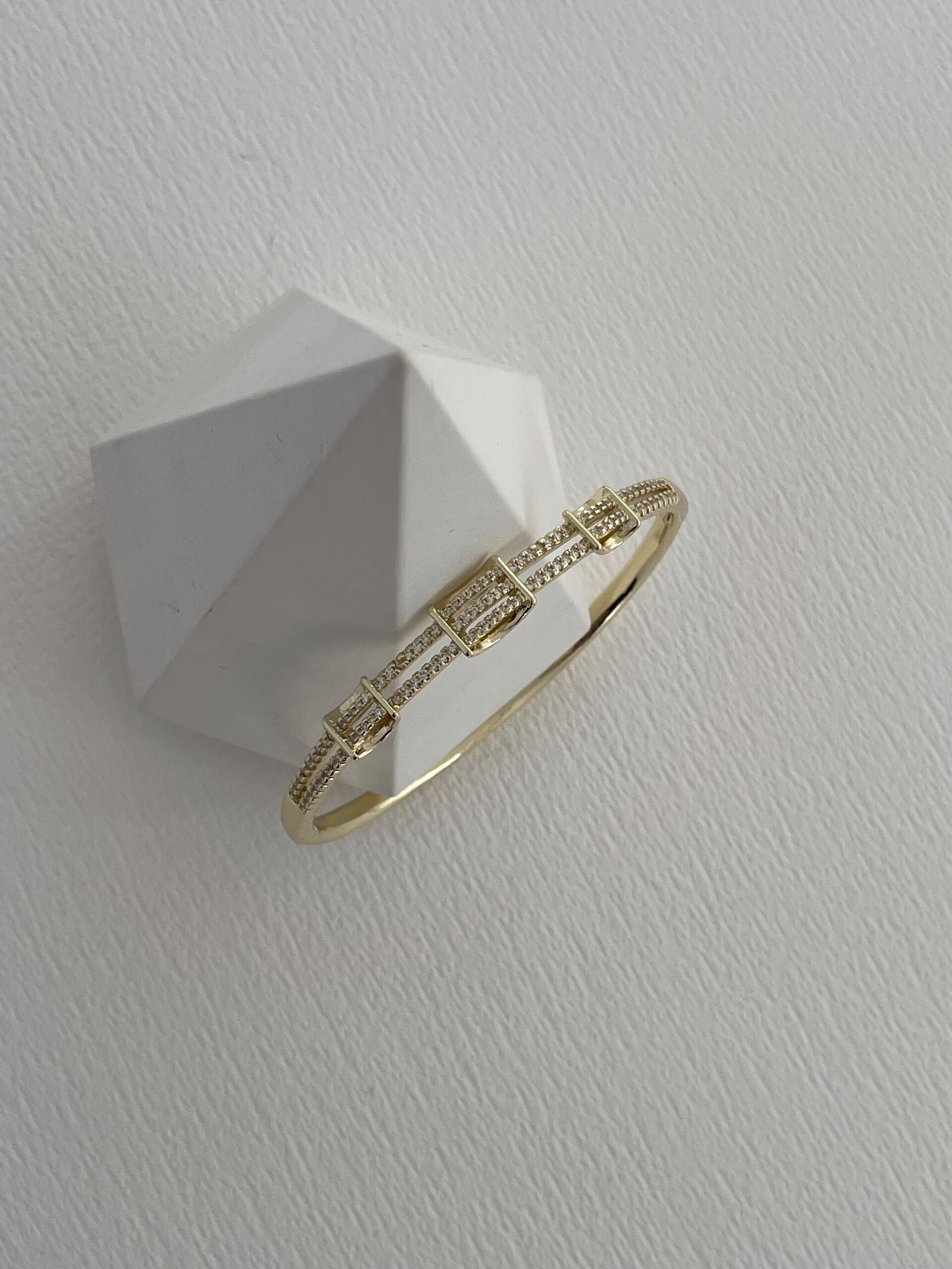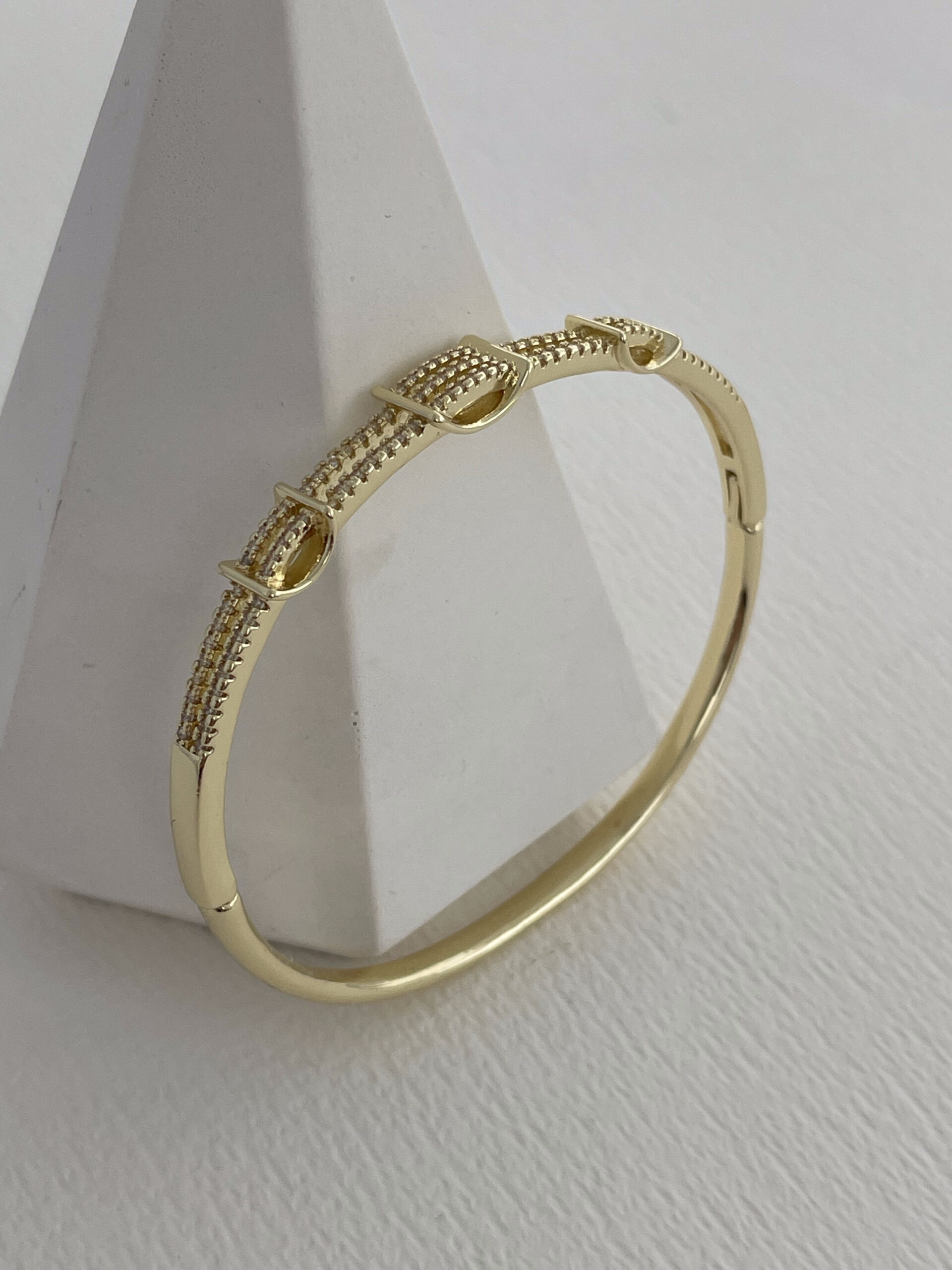 Özel Seri Sıra Zirkon Taş Detay Gold Kelepçe Bileklik