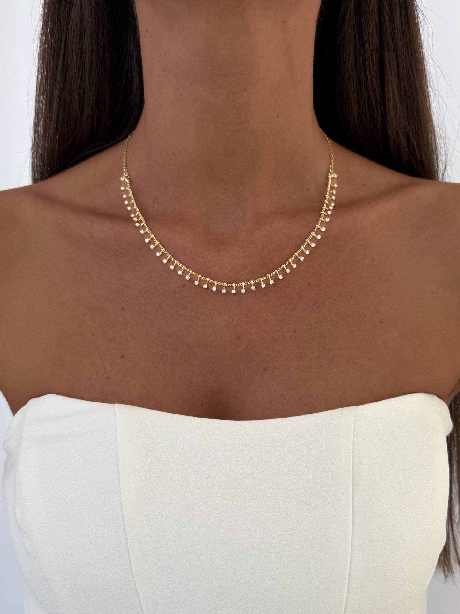 Özel Seri Sıralı Zirkon Taşlı Çubuk Gold Kolye