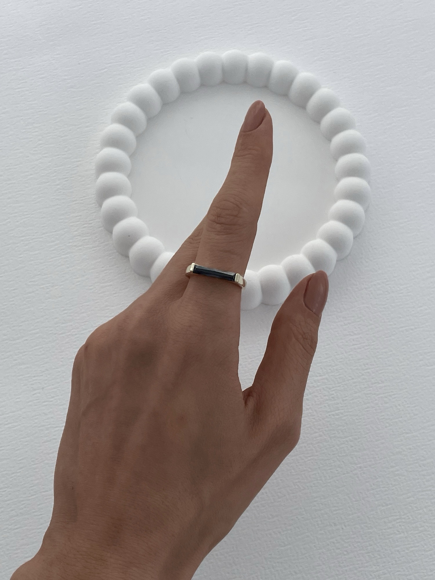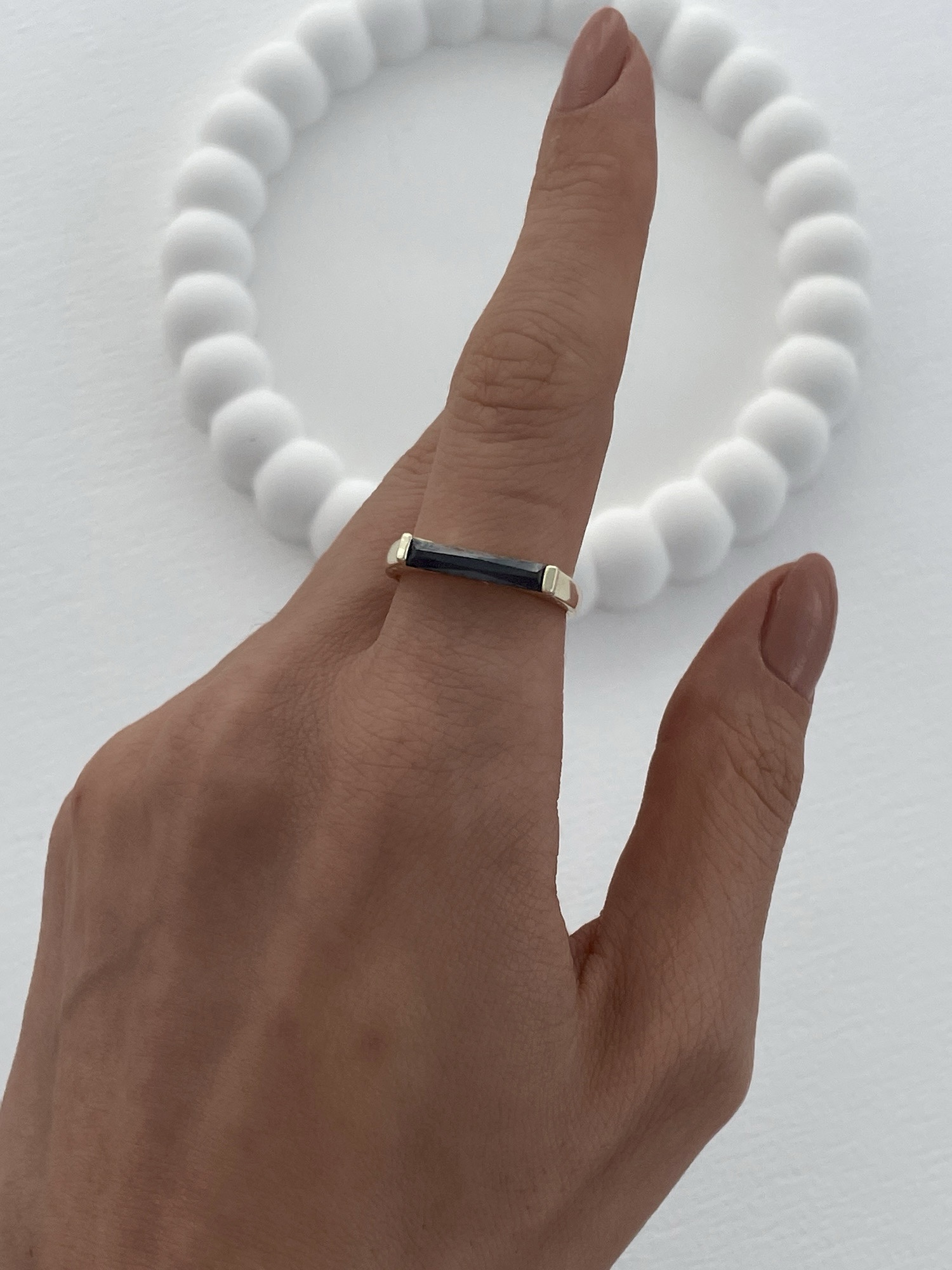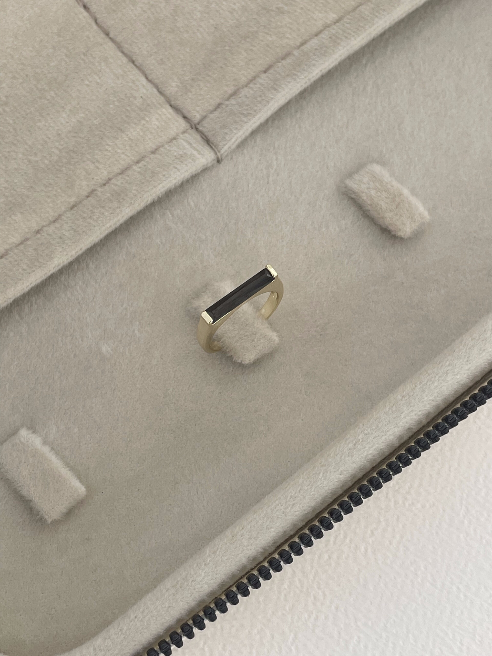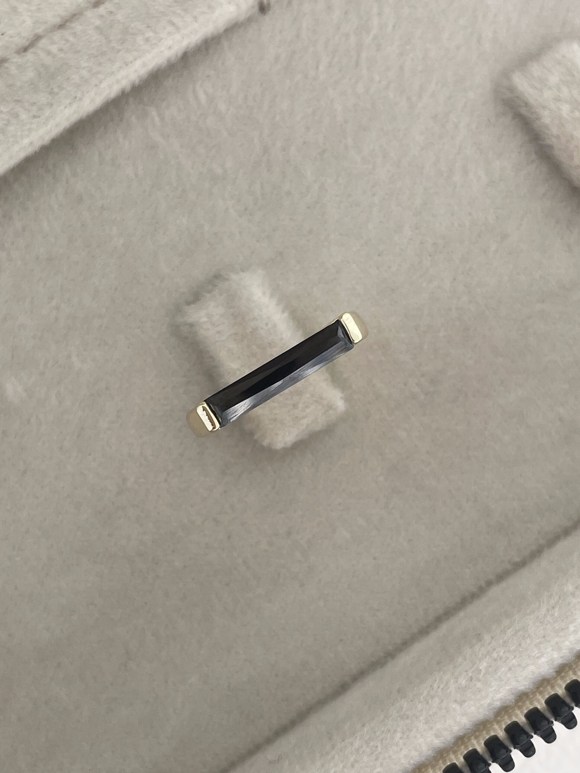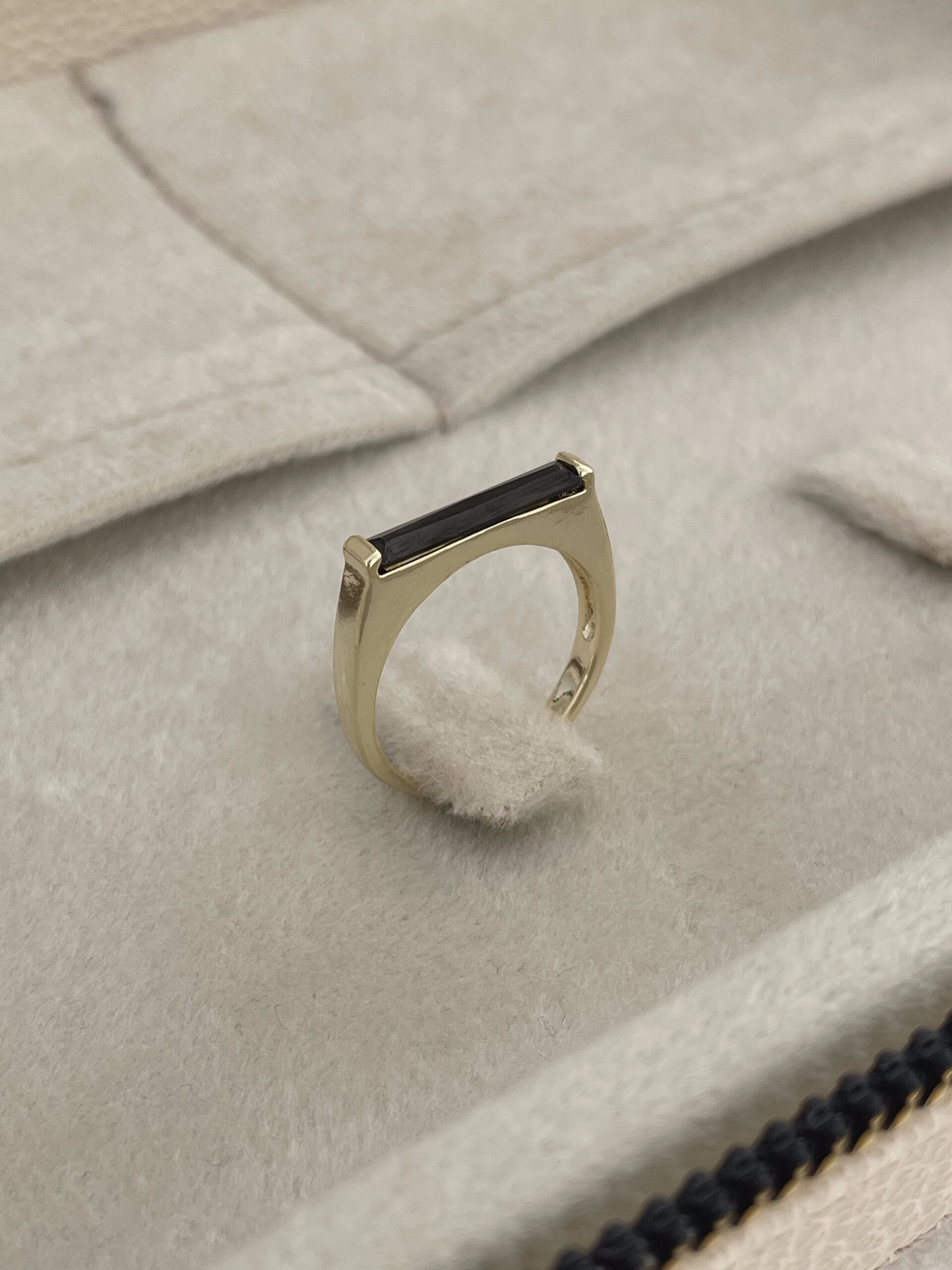 Özel Seri Siyah Baget Taşlı Dikdörtgen Model Ayarlanabilir Gold Yüzük