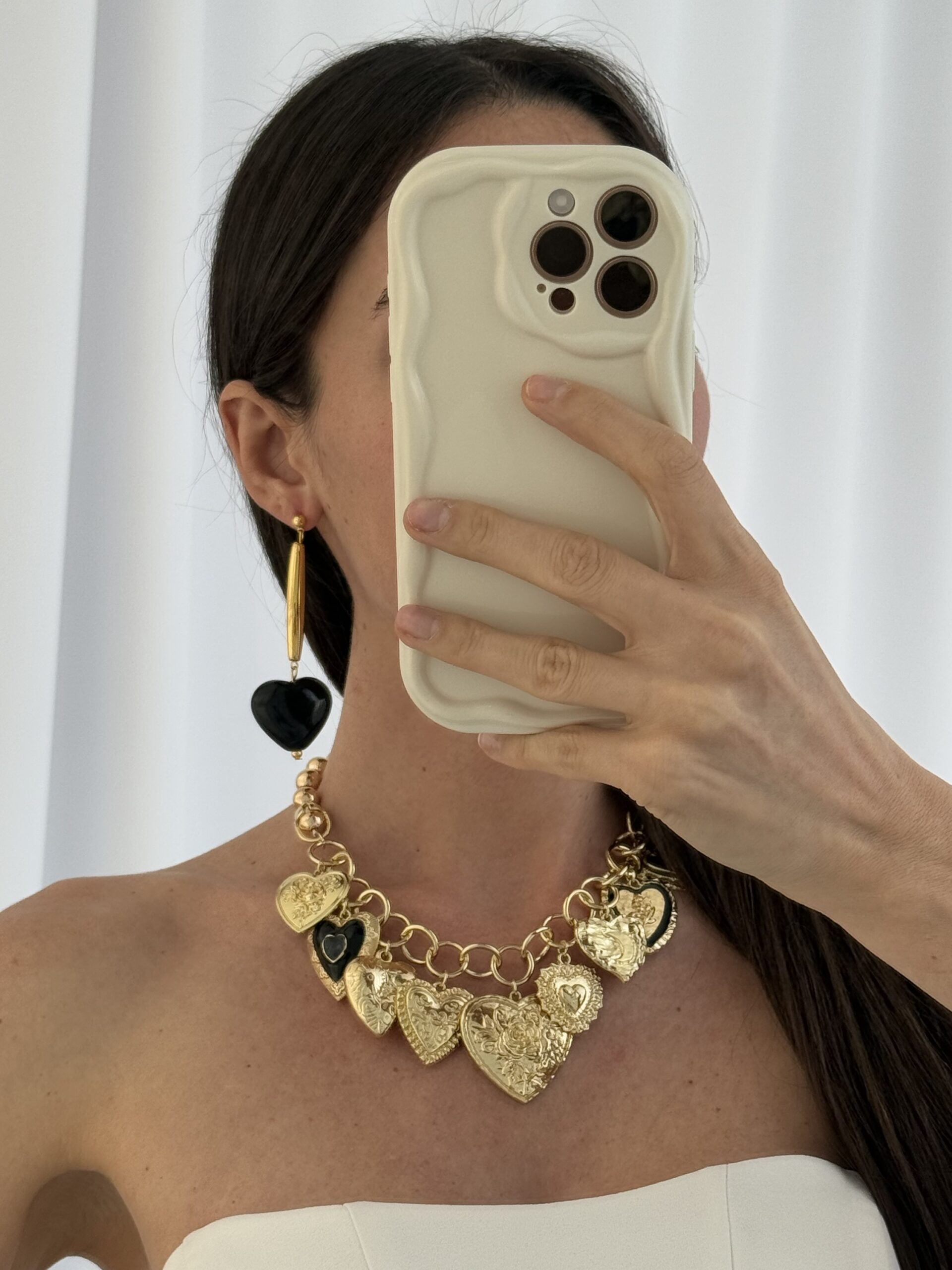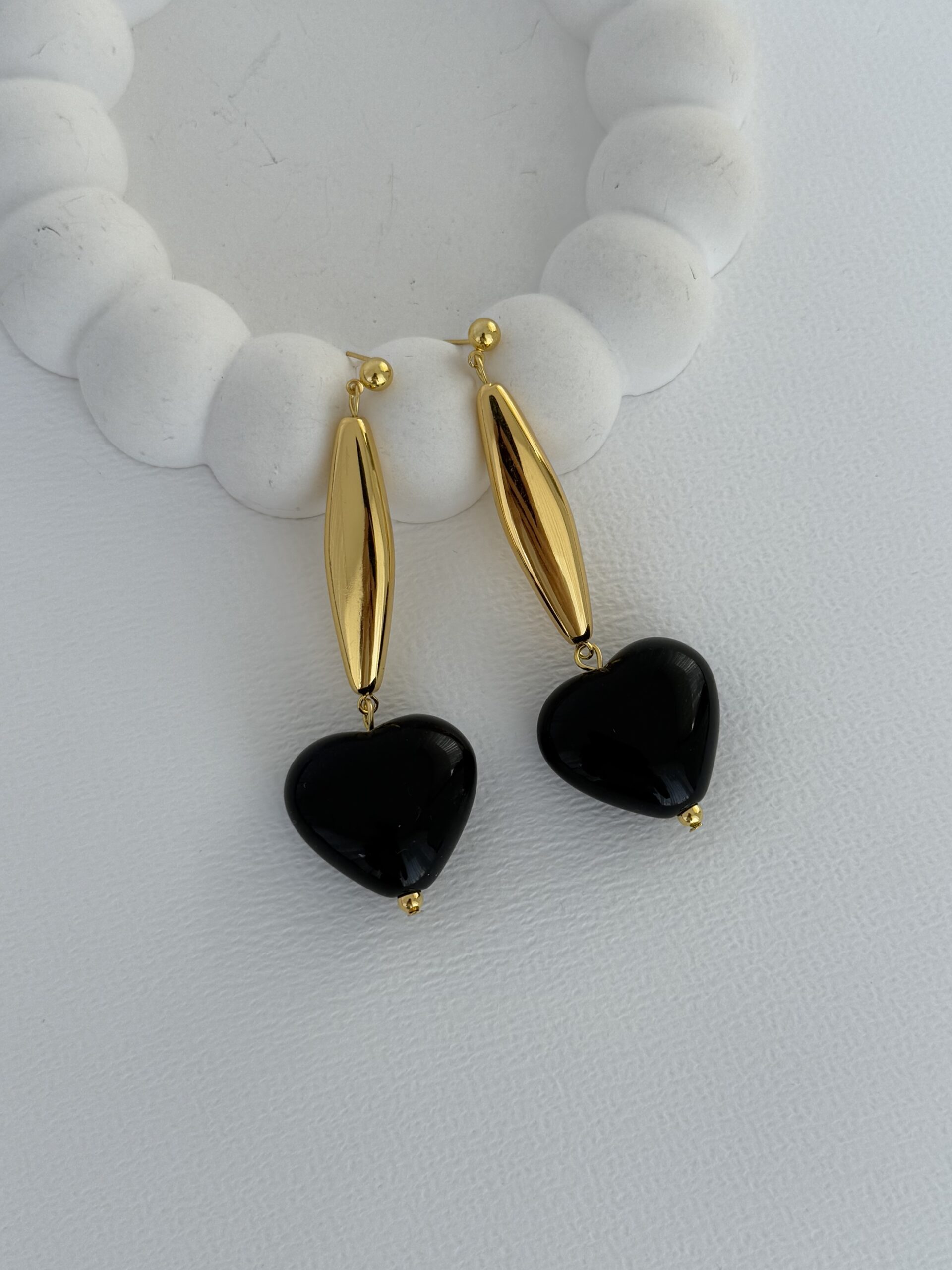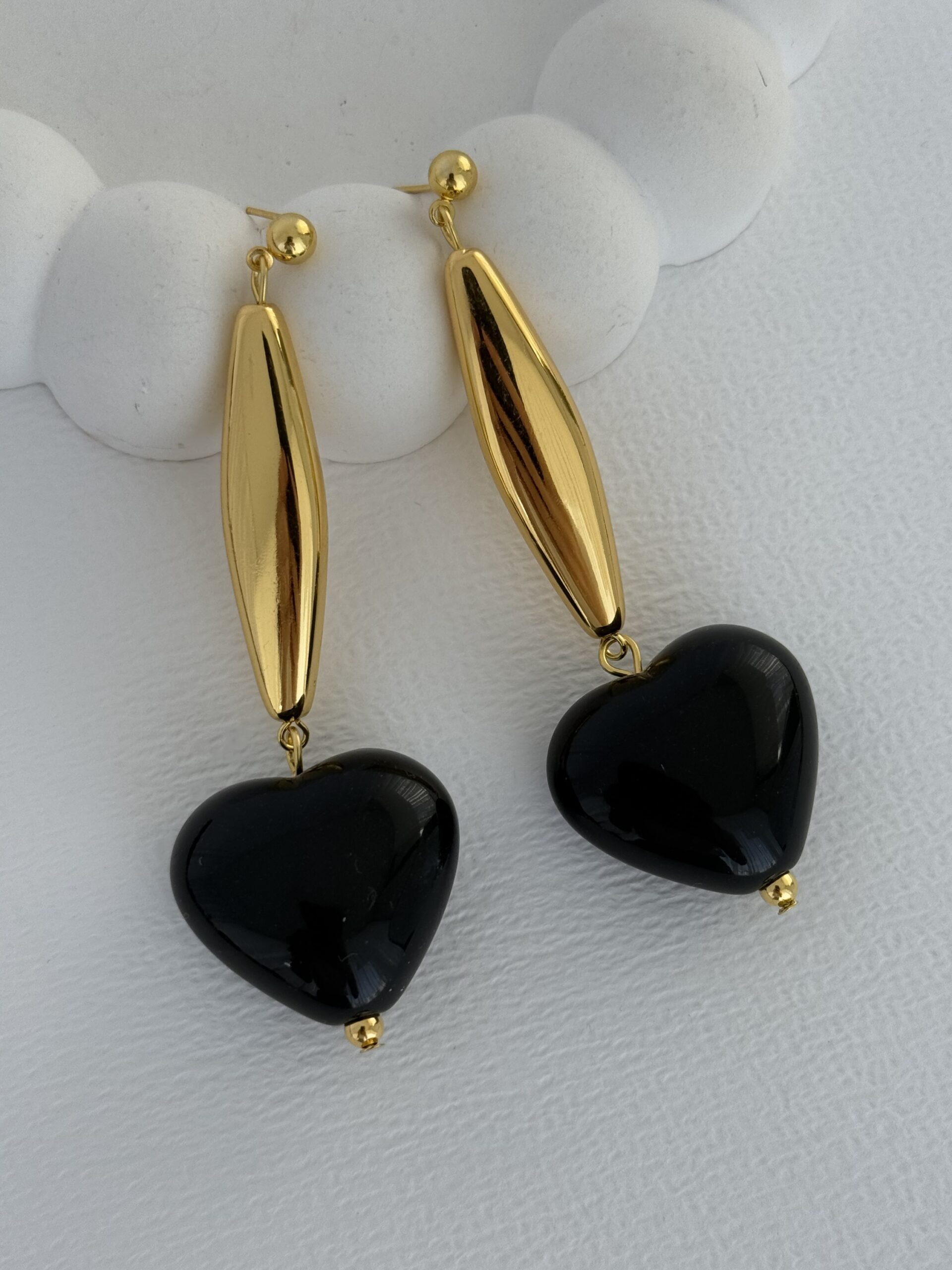 Özel Seri Siyah Kalp Tasarım Maksi Boy Gold Küpe