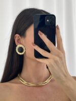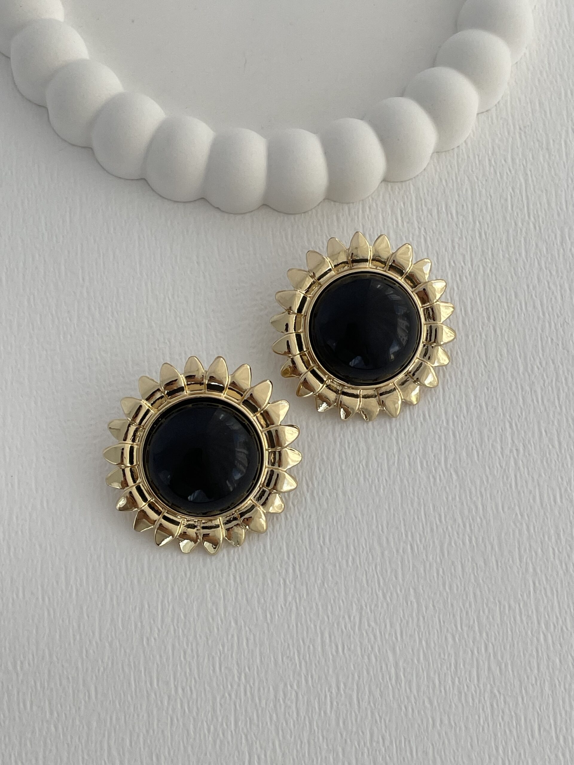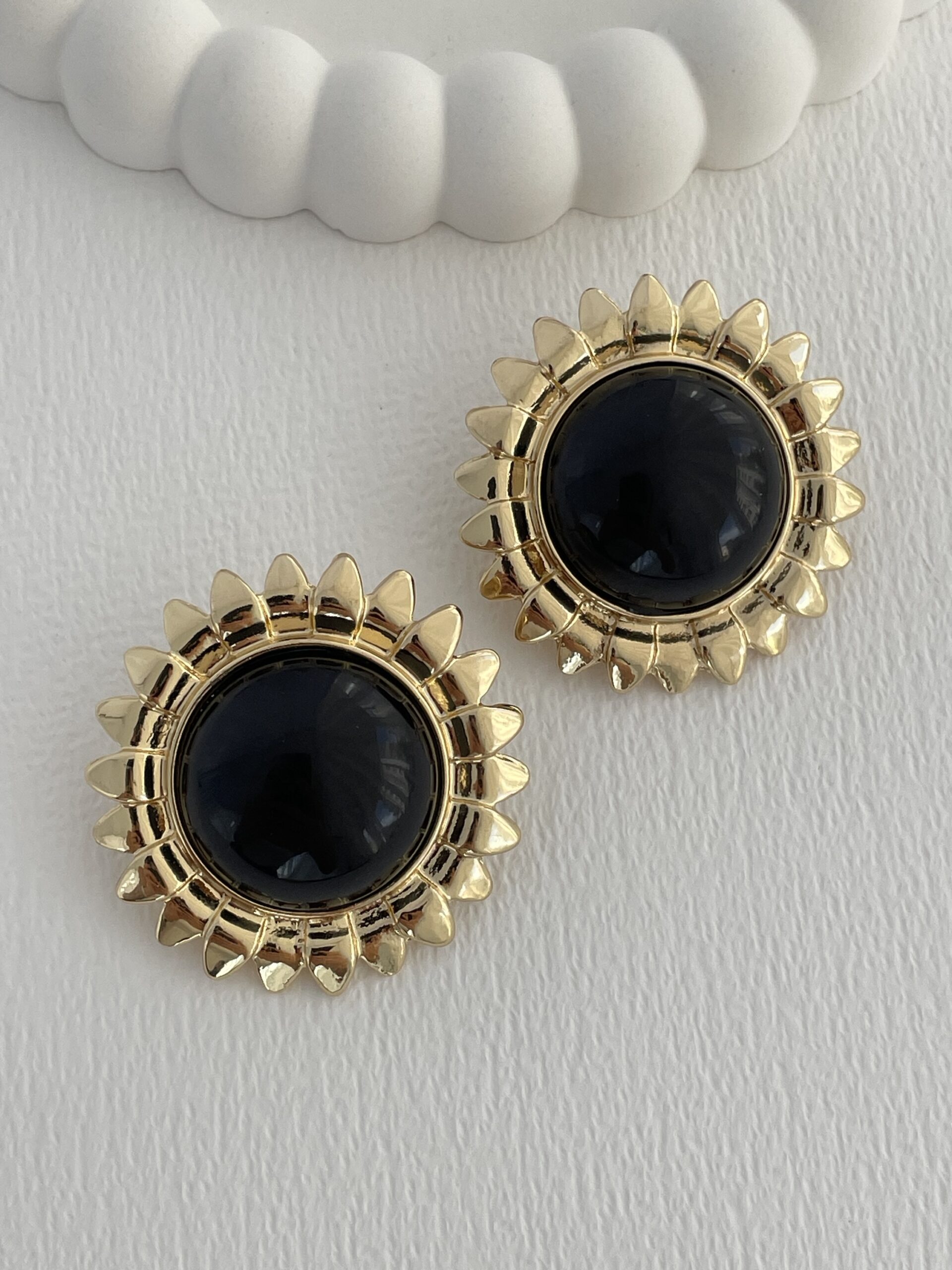 Özel Seri Siyah Kemik Ayçiçek Tasarım Gold Küpe