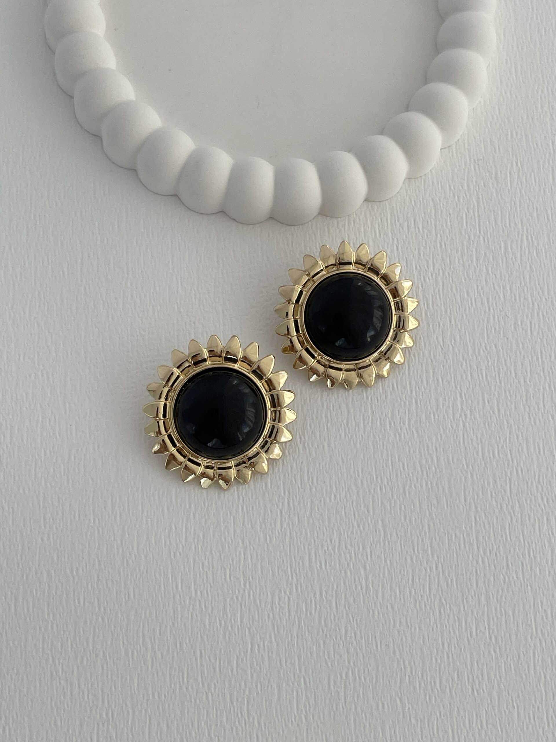 Özel Seri Siyah Kemik Ayçiçek Tasarım Gold Küpe