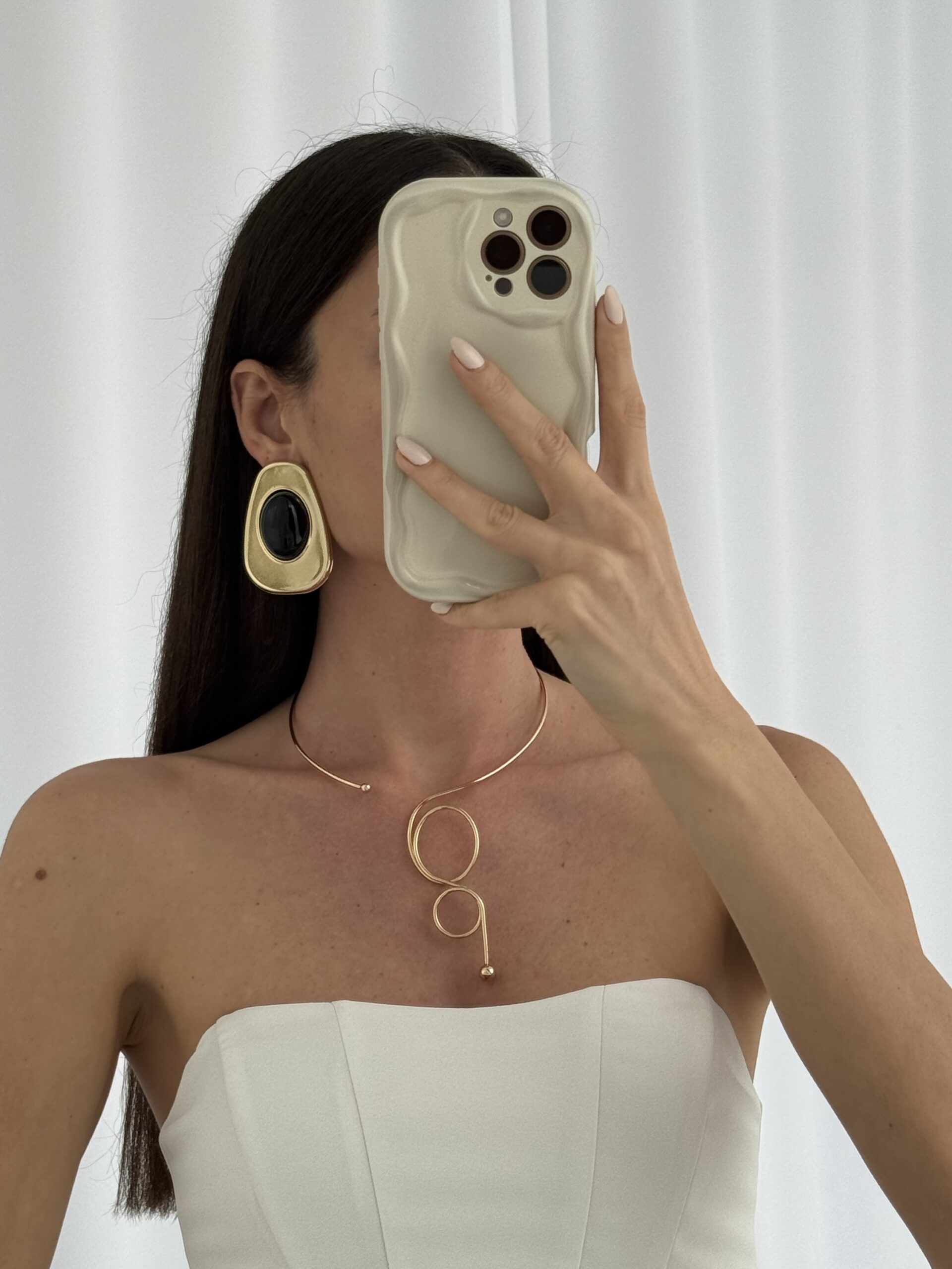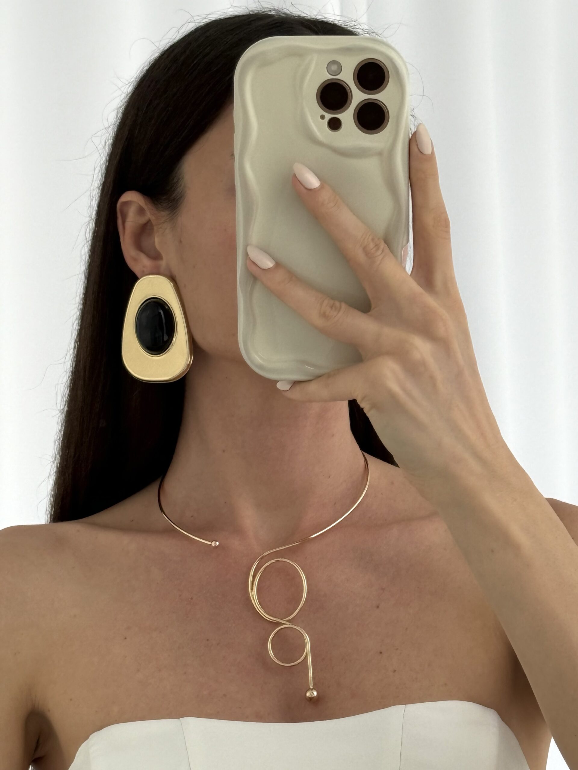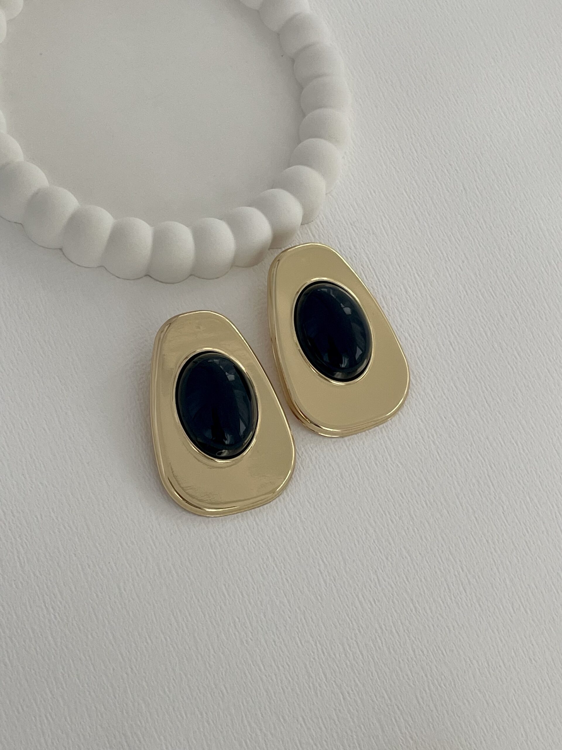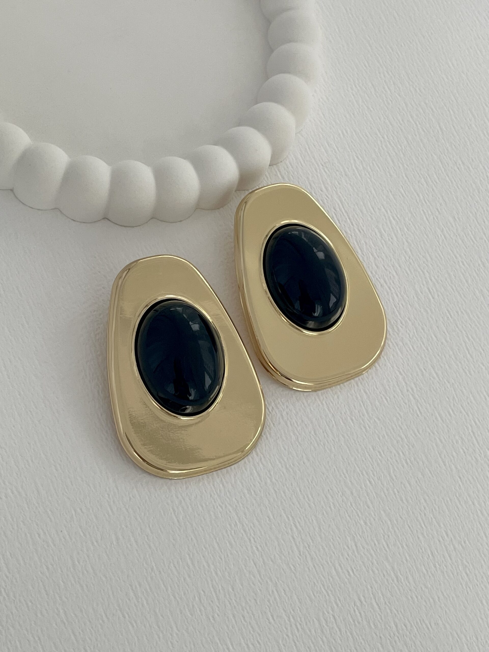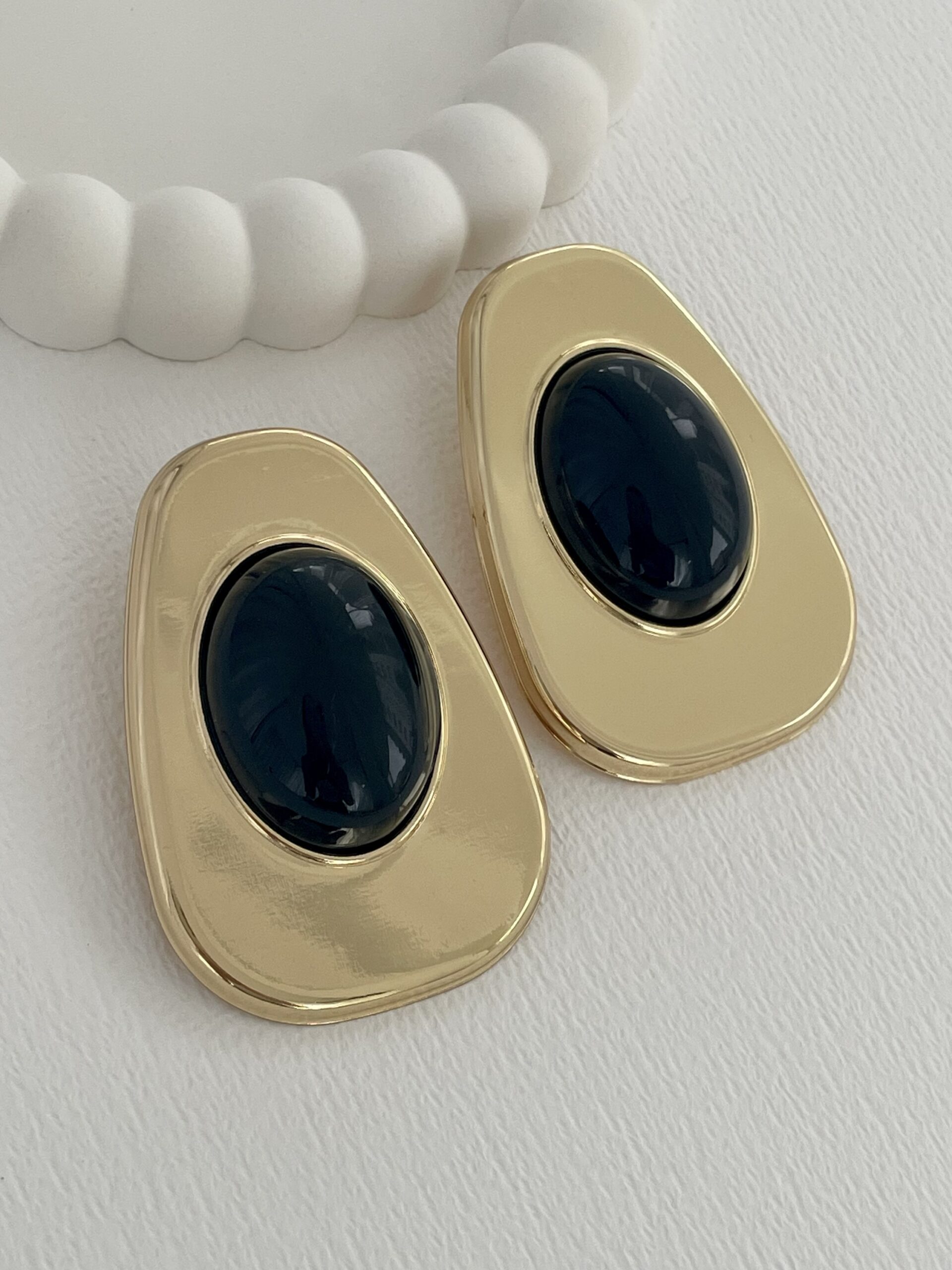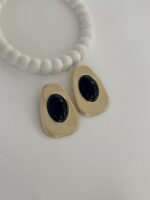 Özel Seri Siyah Kemik Büyük Oval Tasarım Gold Küpe