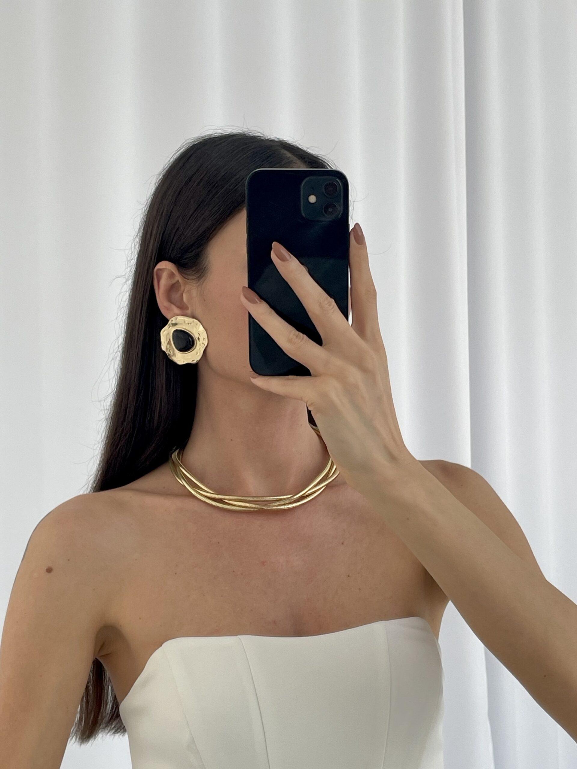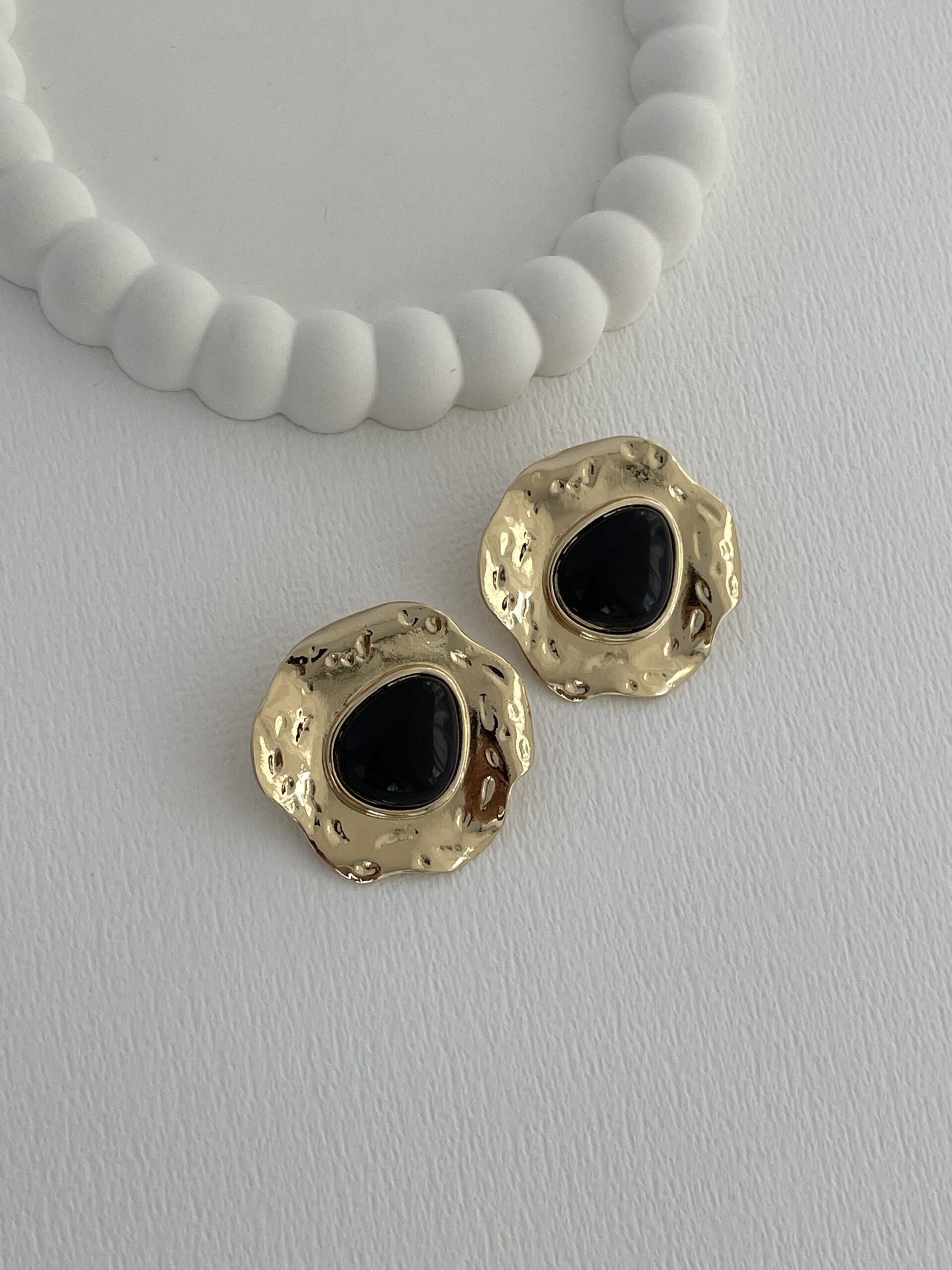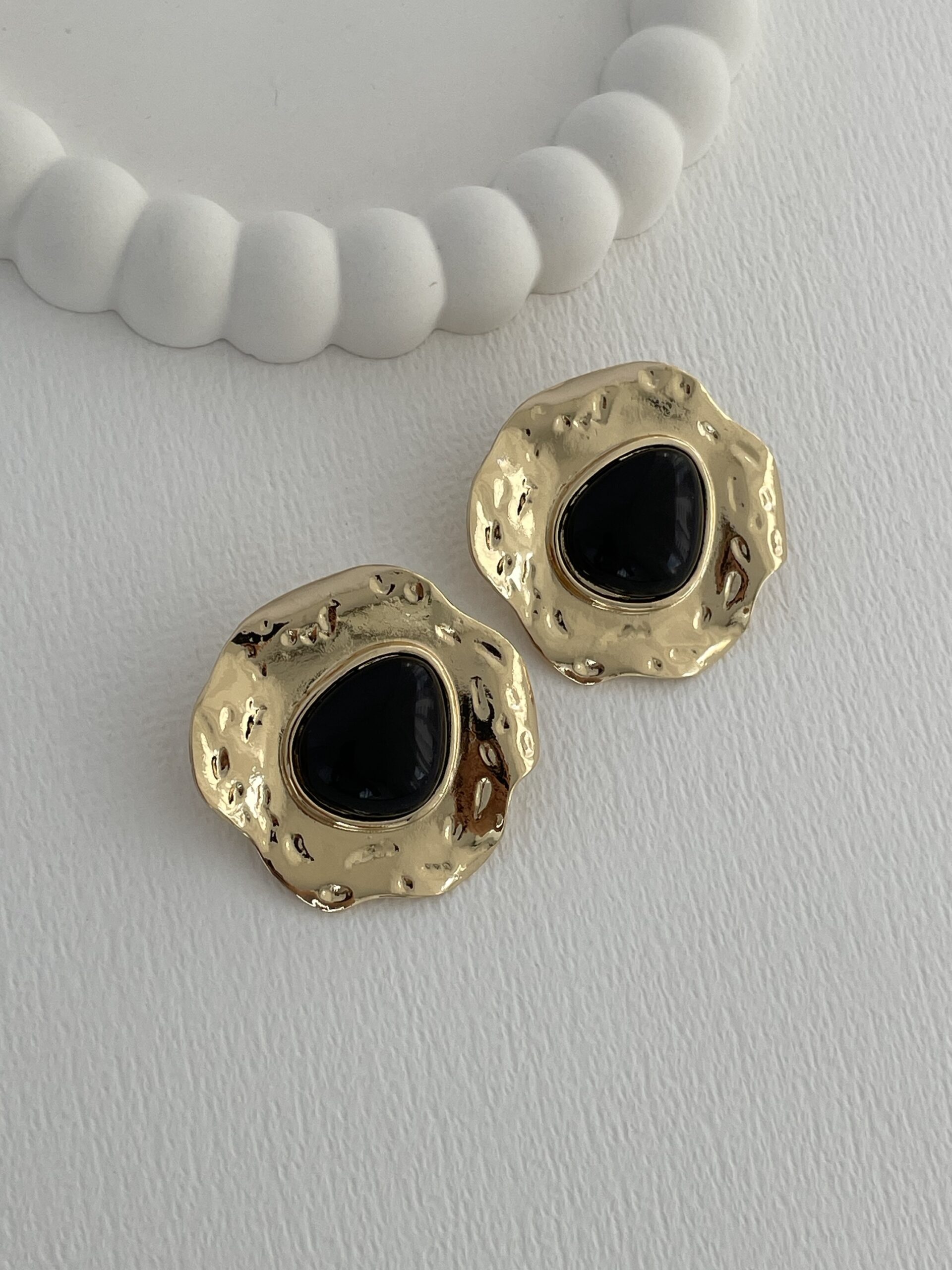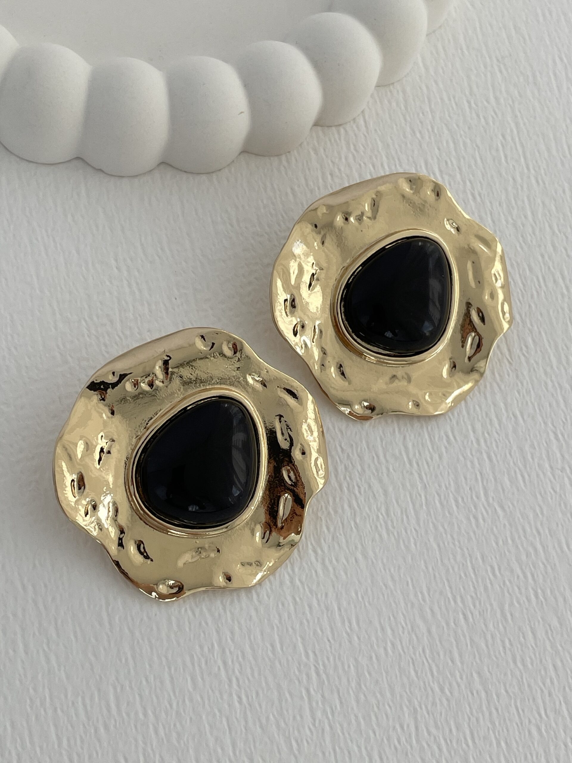 Özel Seri Siyah Kemik Desenli Soyut Tasarım Gold Küpe