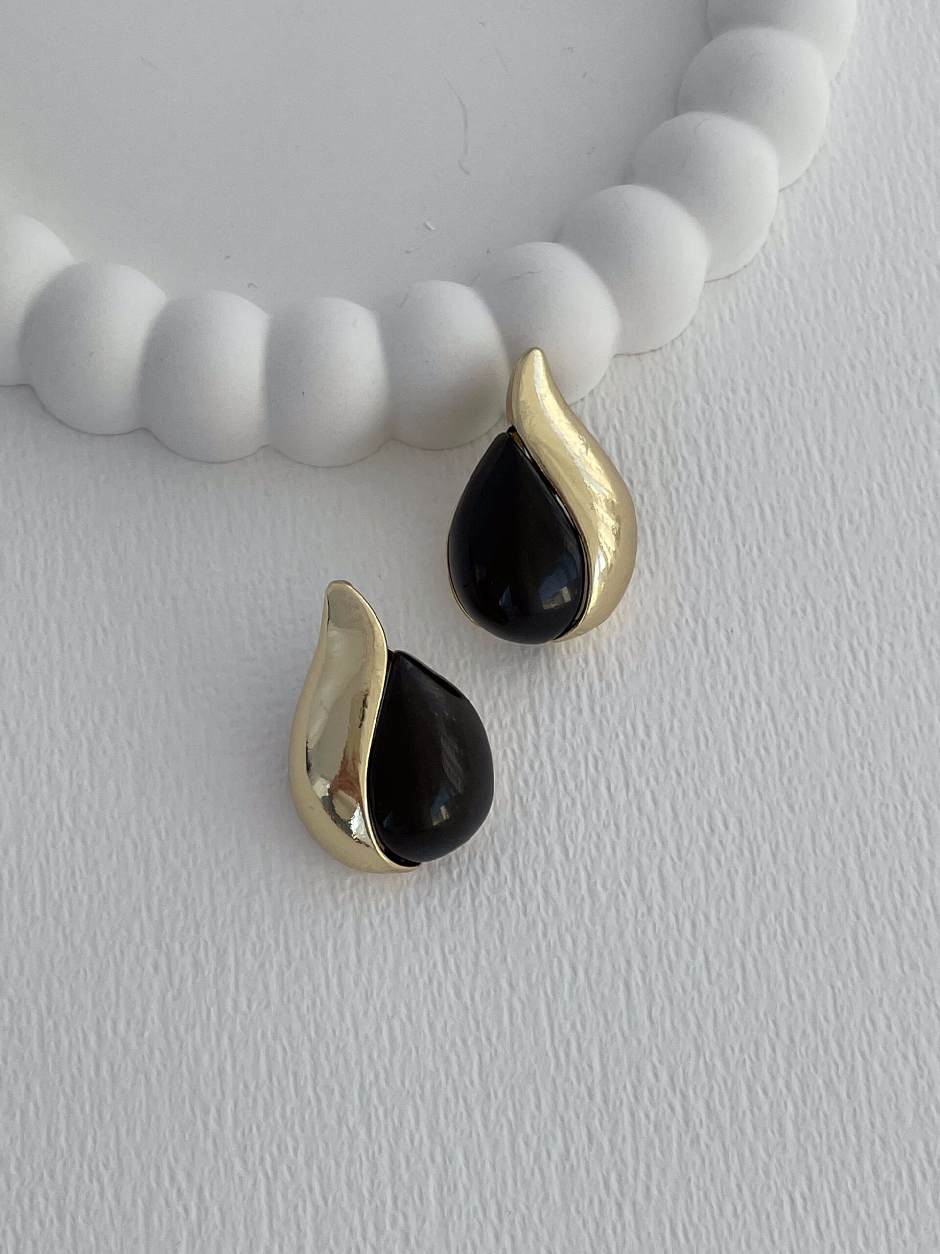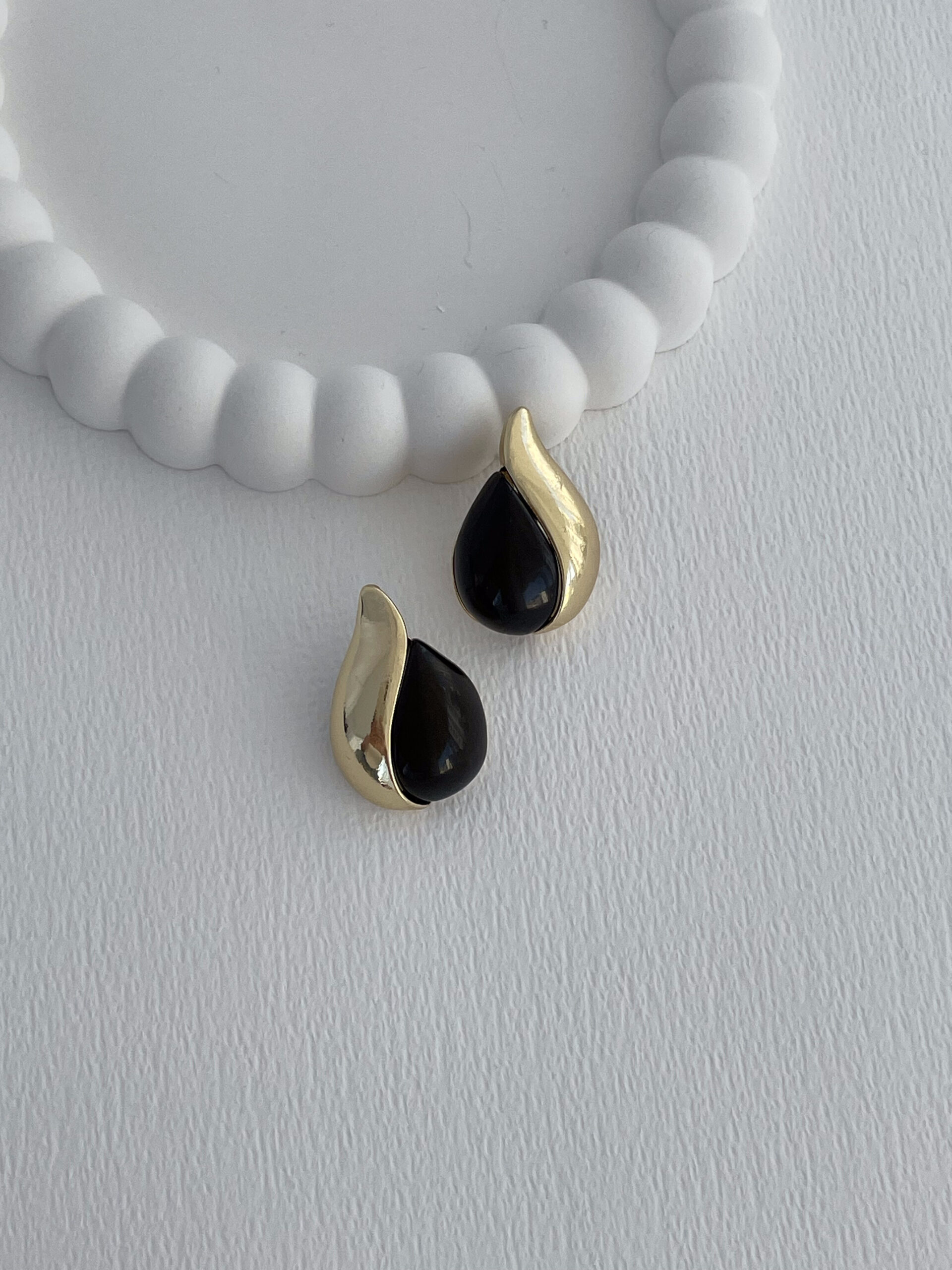 Özel Seri Siyah Kemik Detay Damla Model Gold Küpe