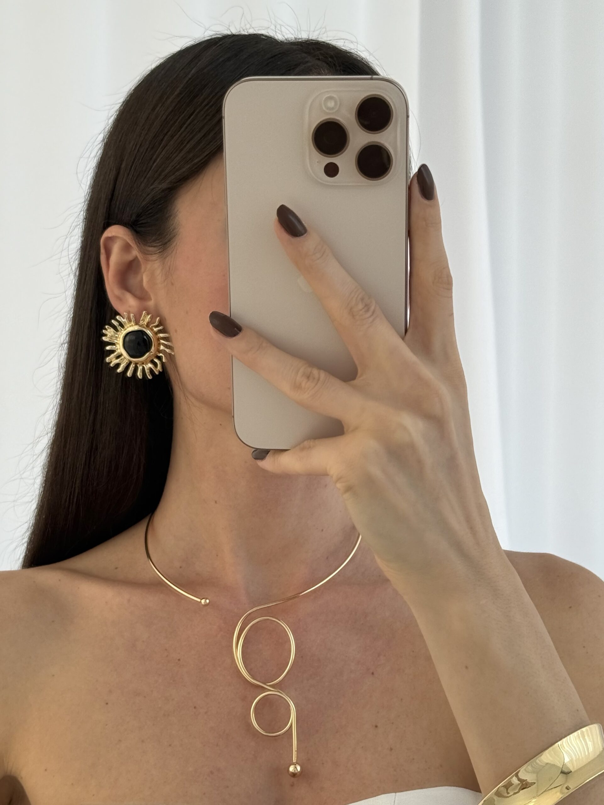 Özel Seri Siyah Kemik Detay Güneş Tasarım Gold Küpe