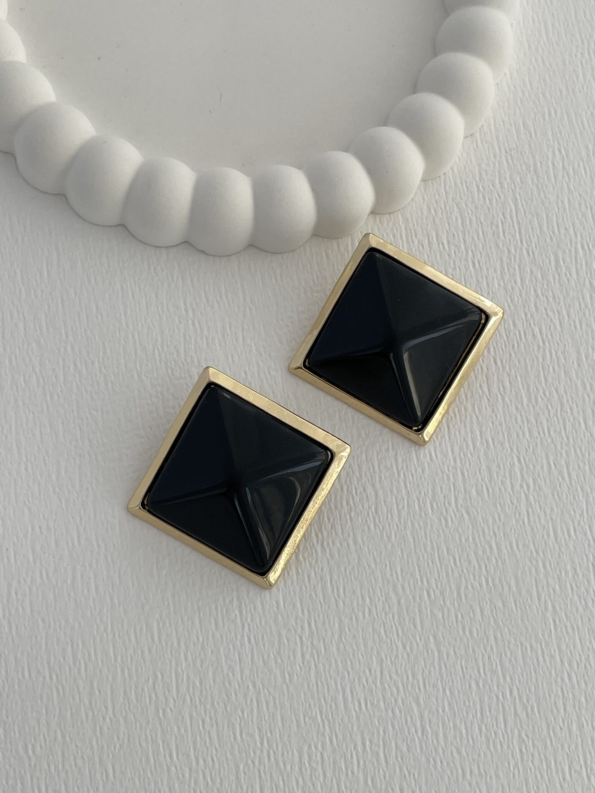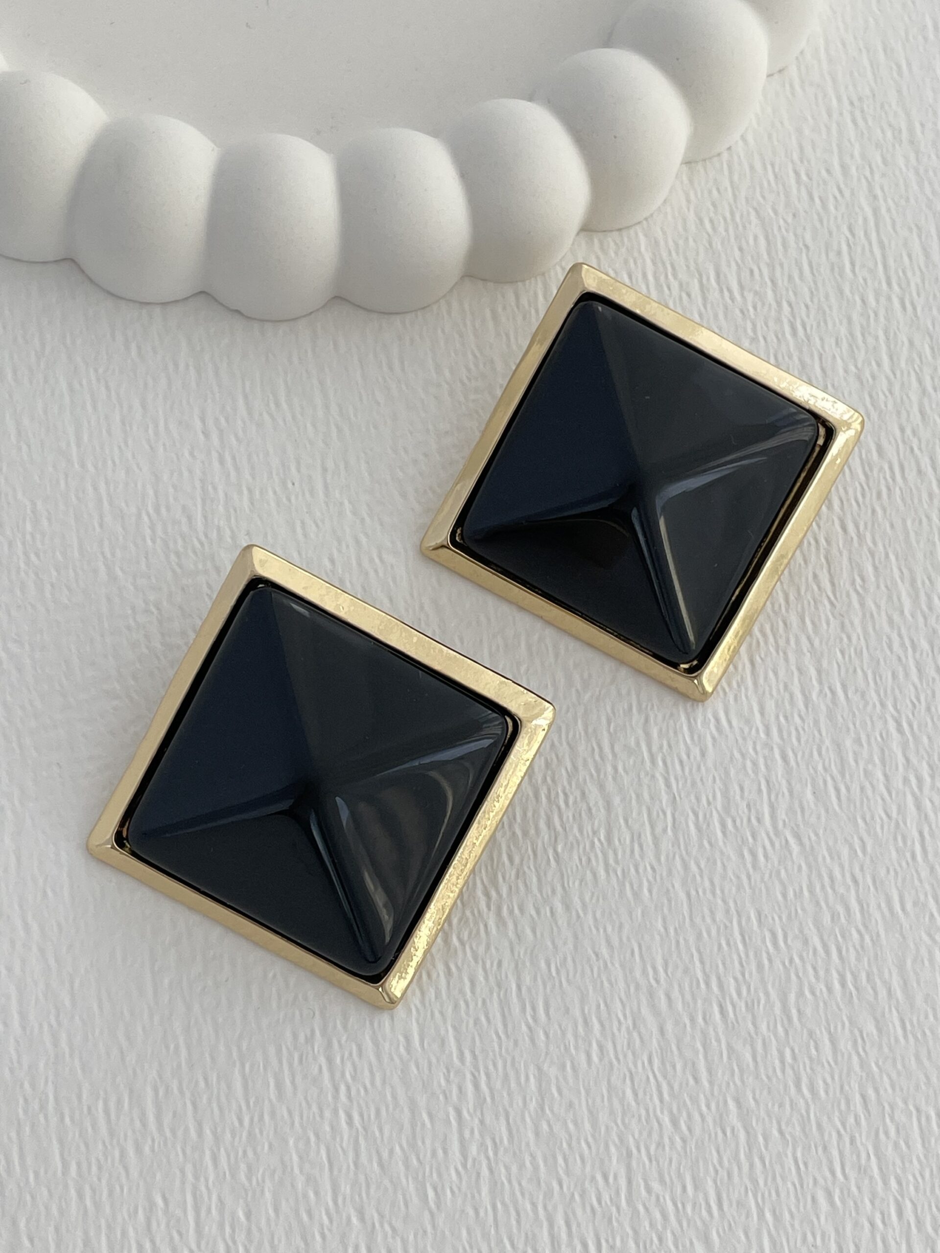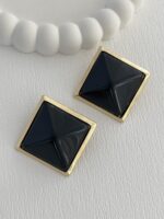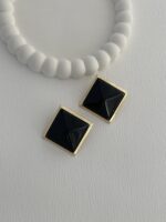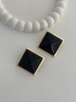 Özel Seri Siyah Kemik Detay Kare Tasarım Gold Küpe