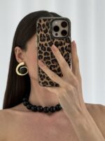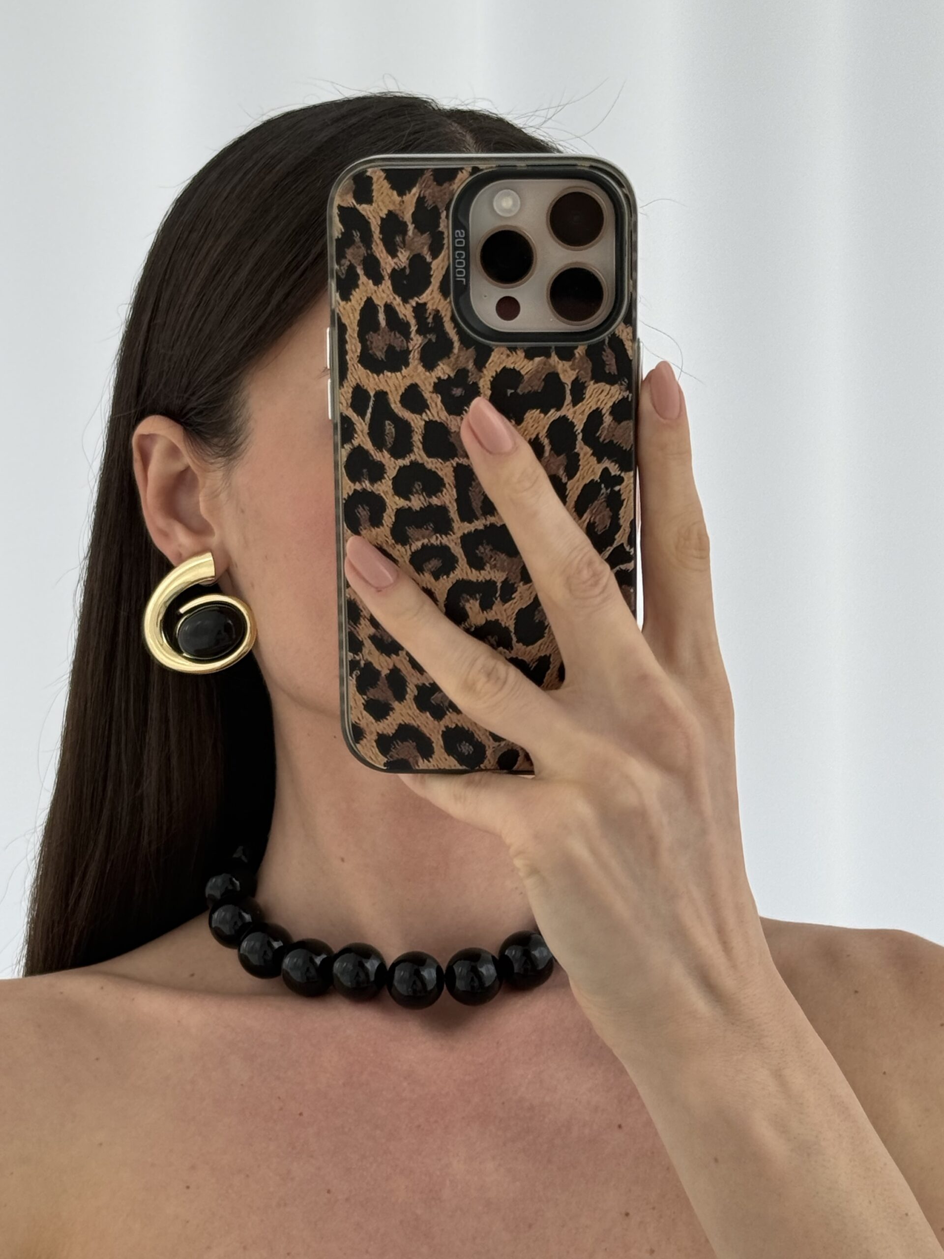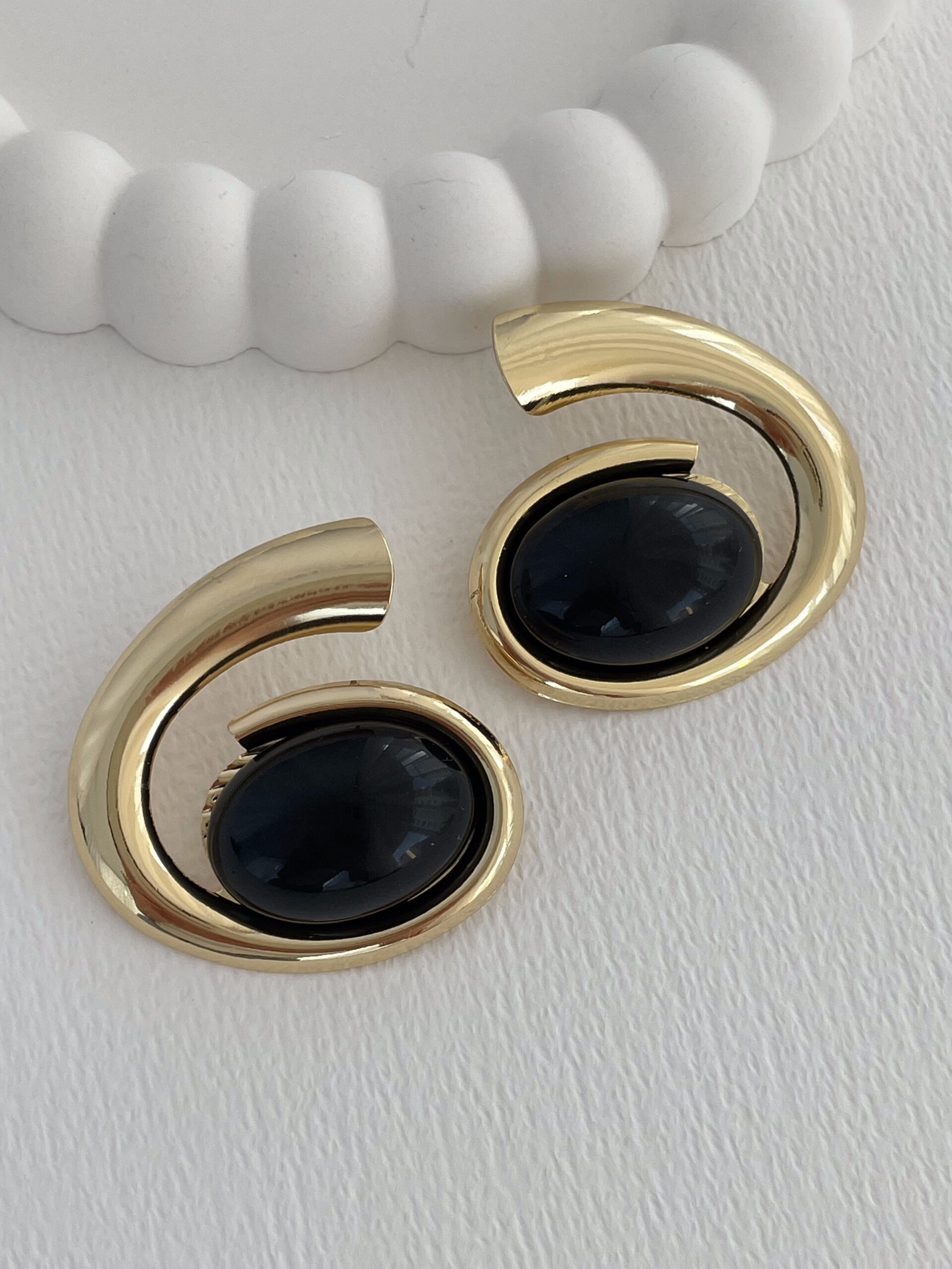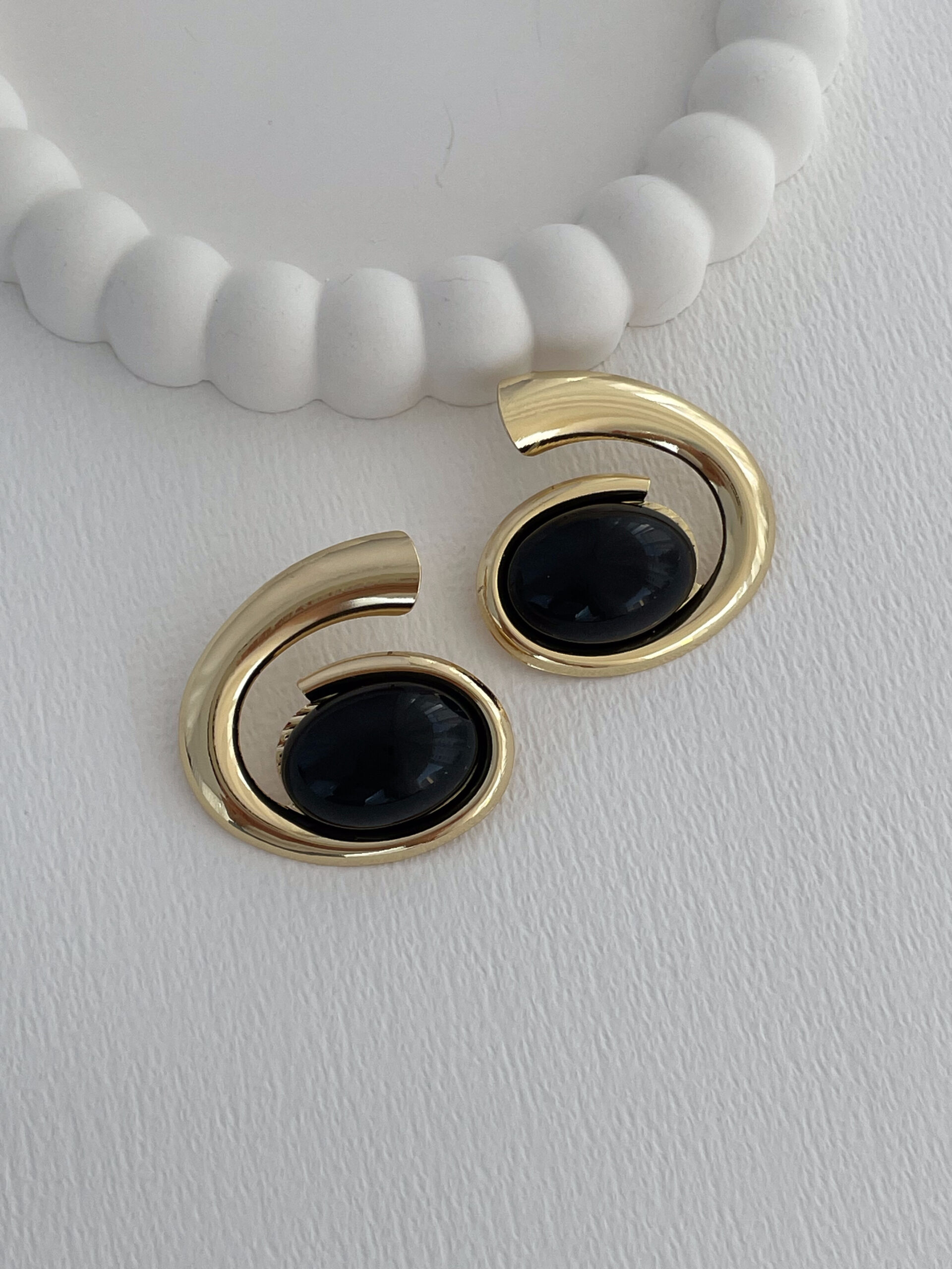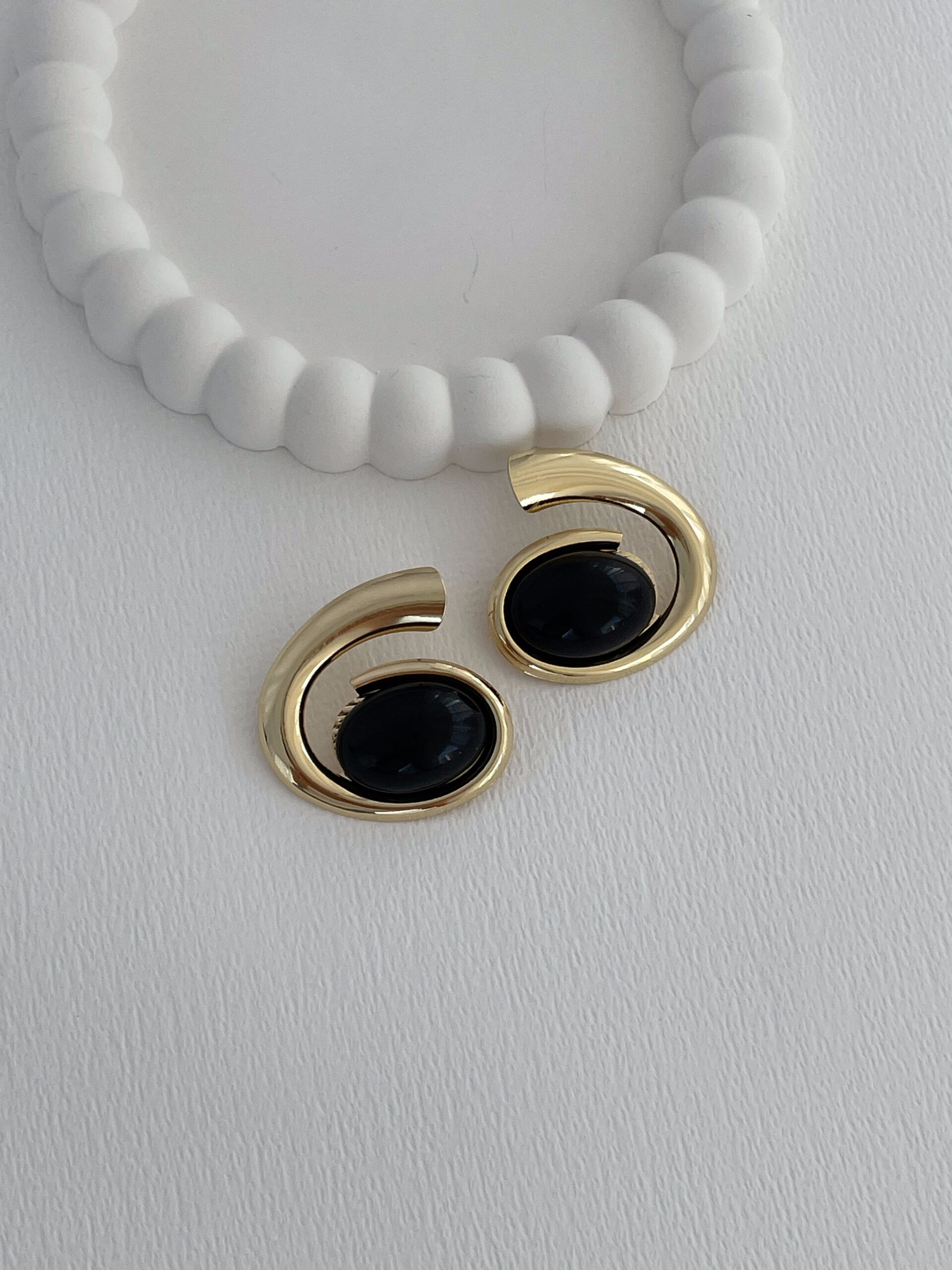 Özel Seri Siyah Kemik Detay Oval Tasarım Gold Küpe