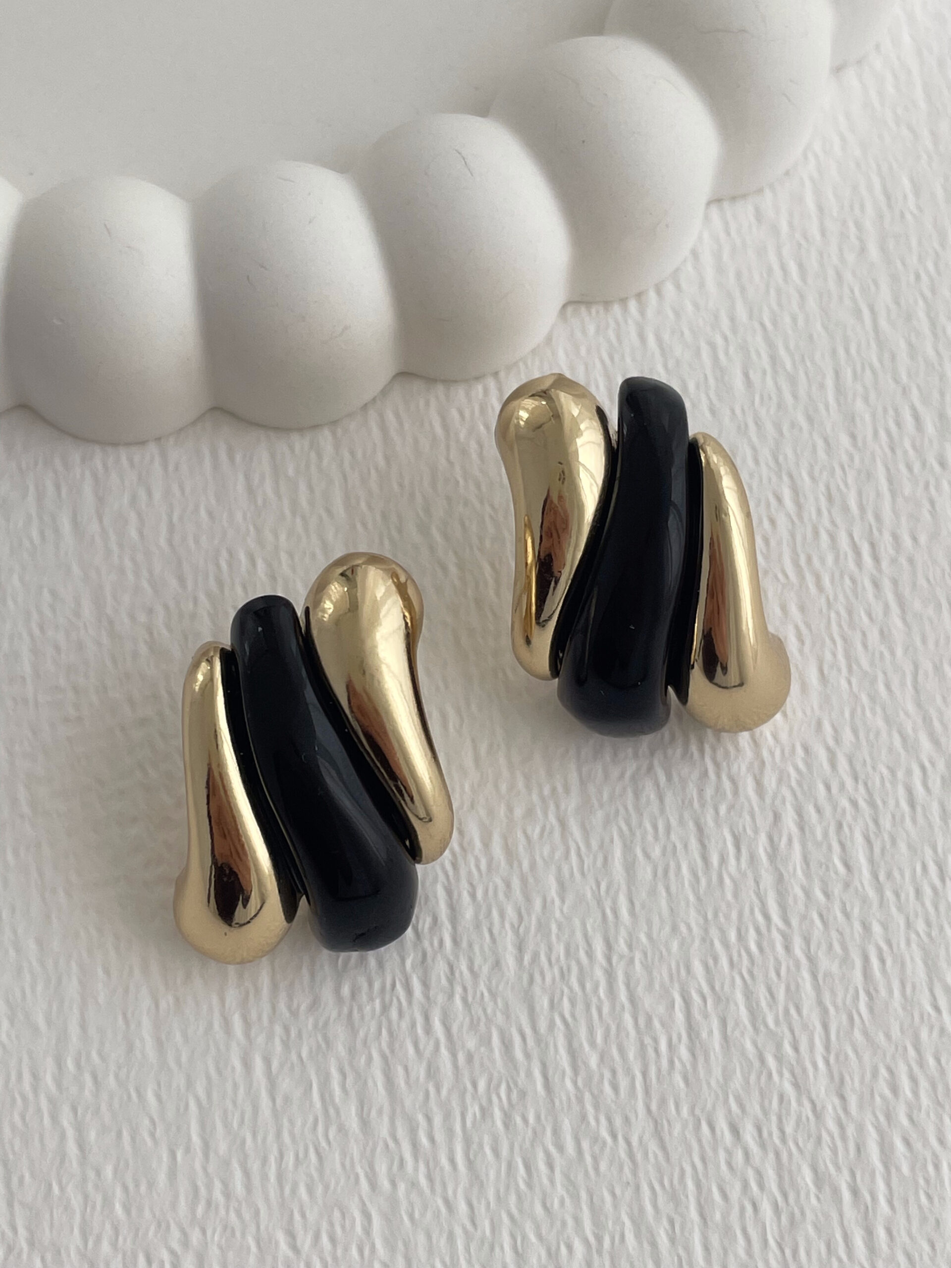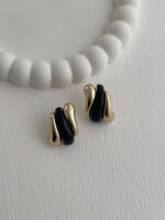 Özel Seri Siyah Kemik Detay Üçlü Damla Tasarım Gold Küpe