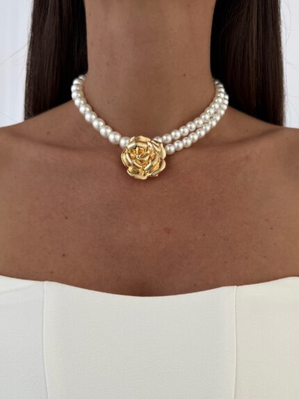 Özel Seri Siyah Kemik Hasır Zincir Gold Kolye