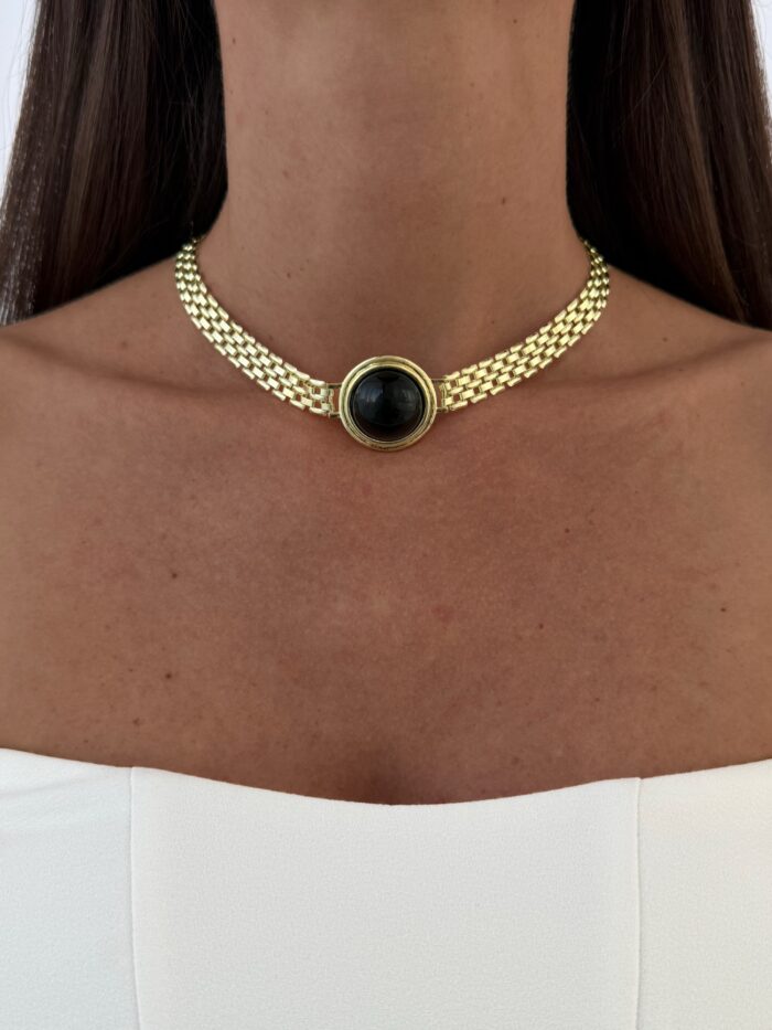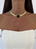 Özel Seri Siyah Kemik Hasır Zincir Gold Kolye