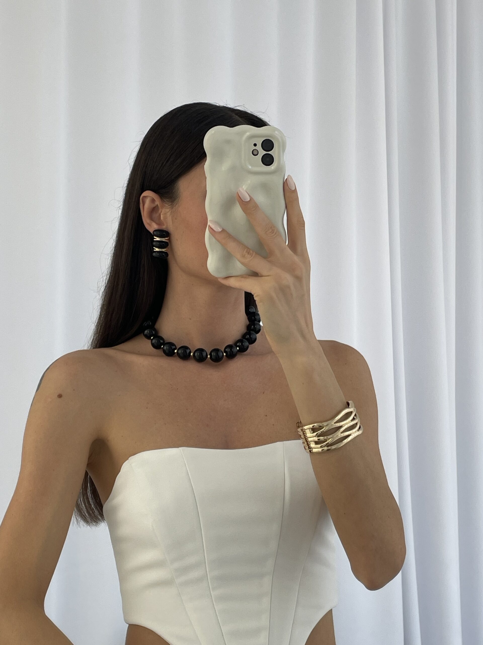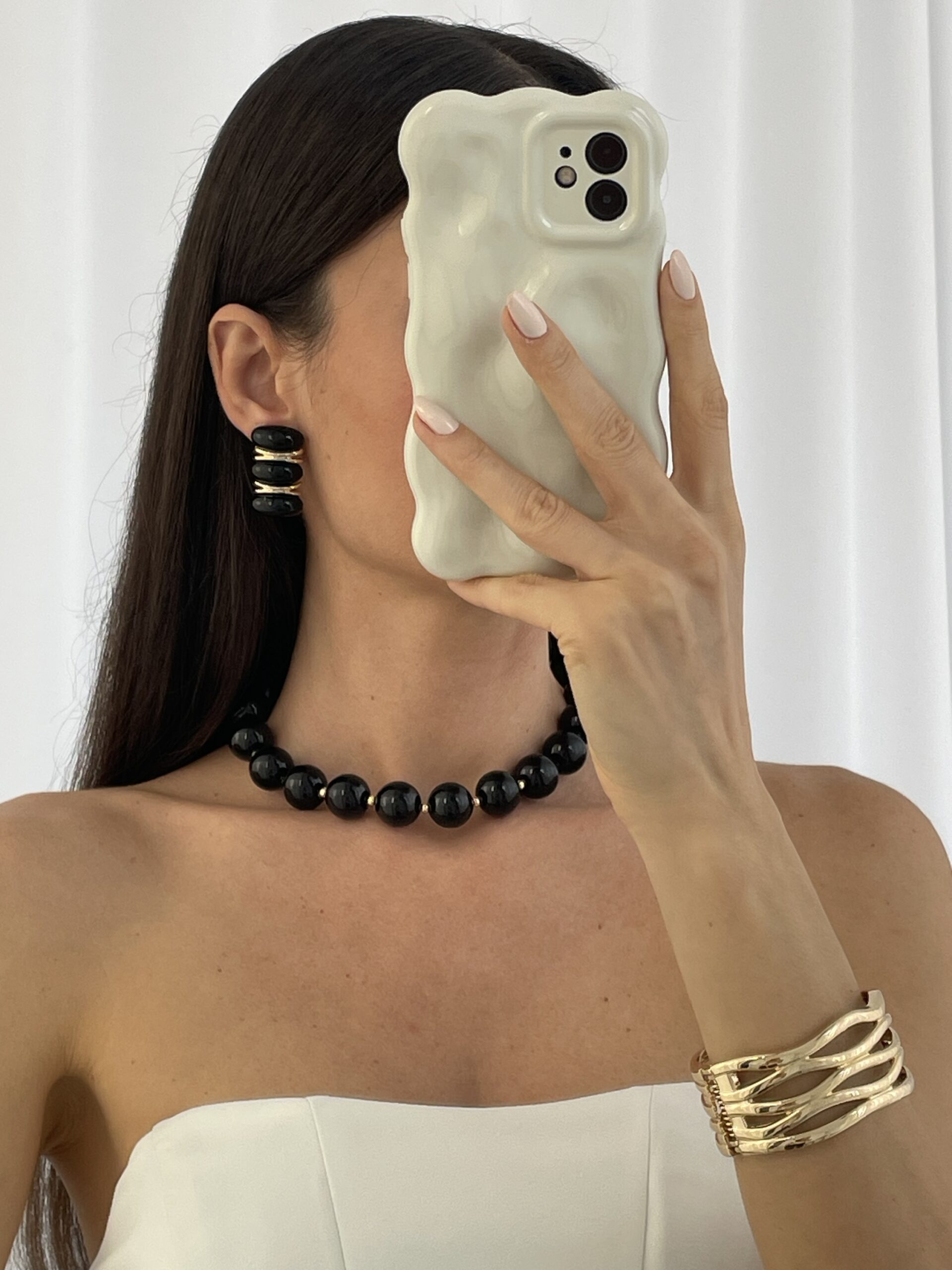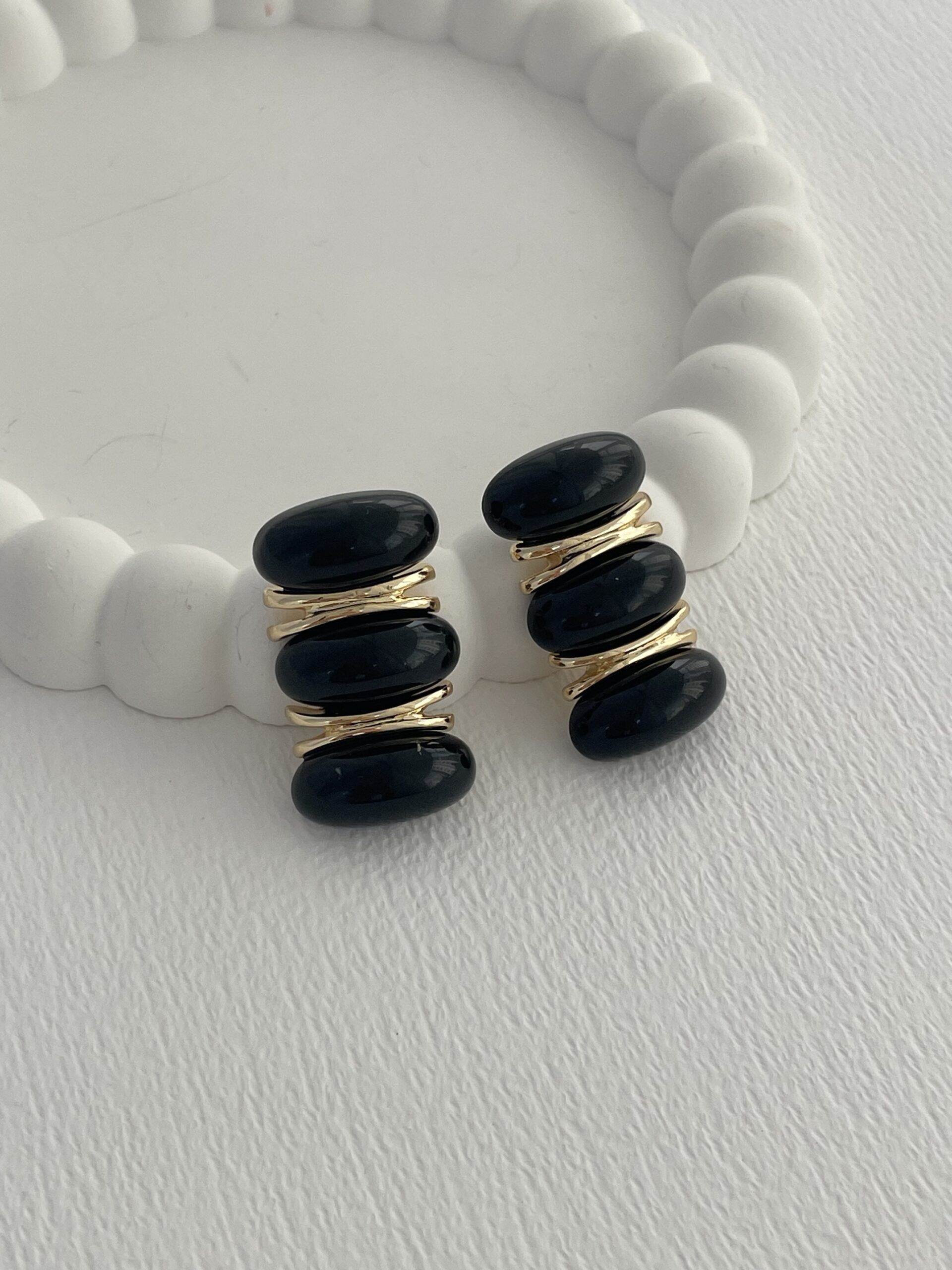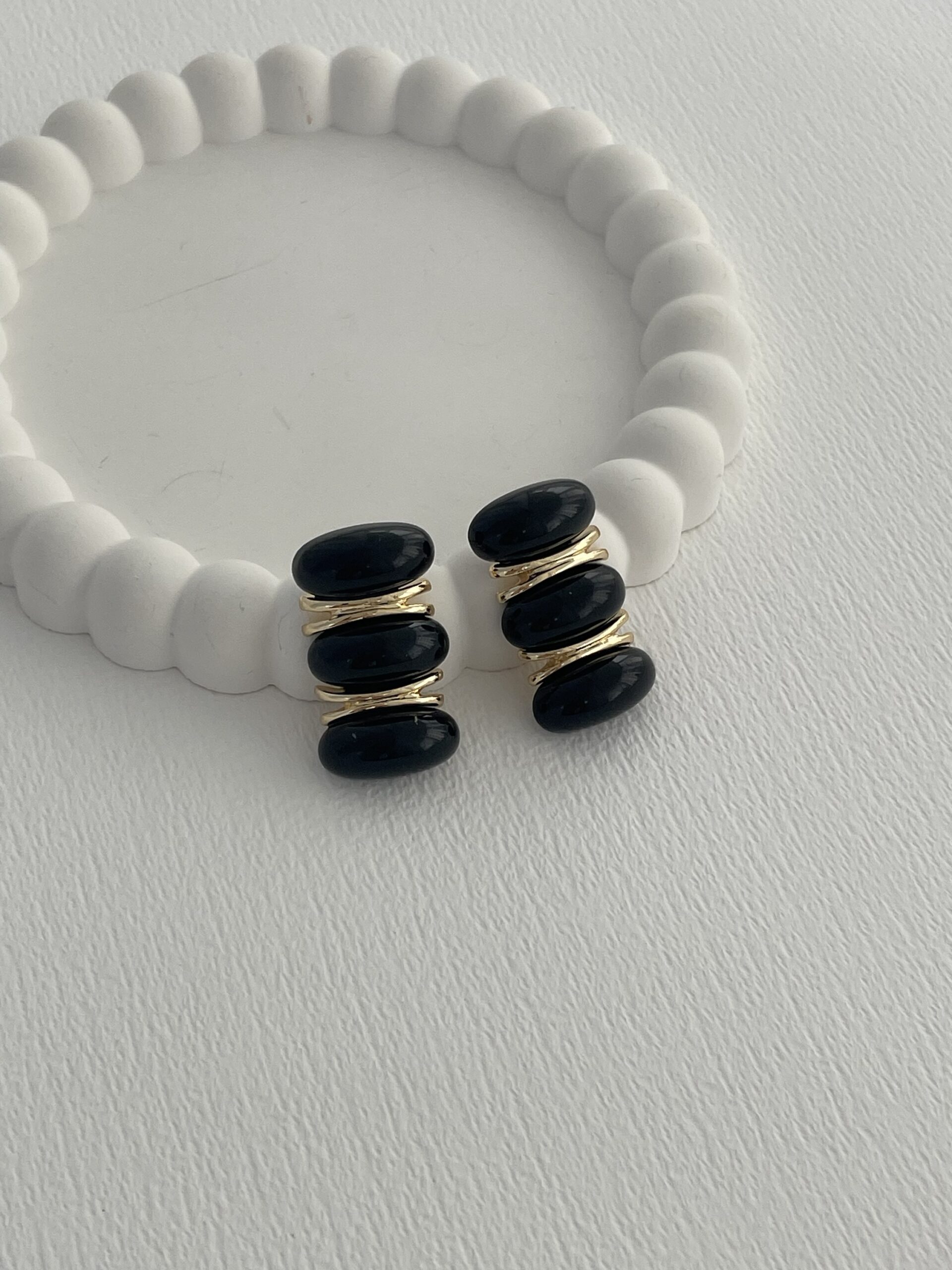 Özel Seri Siyah Kemik MNG Model Gold Detay Küpe