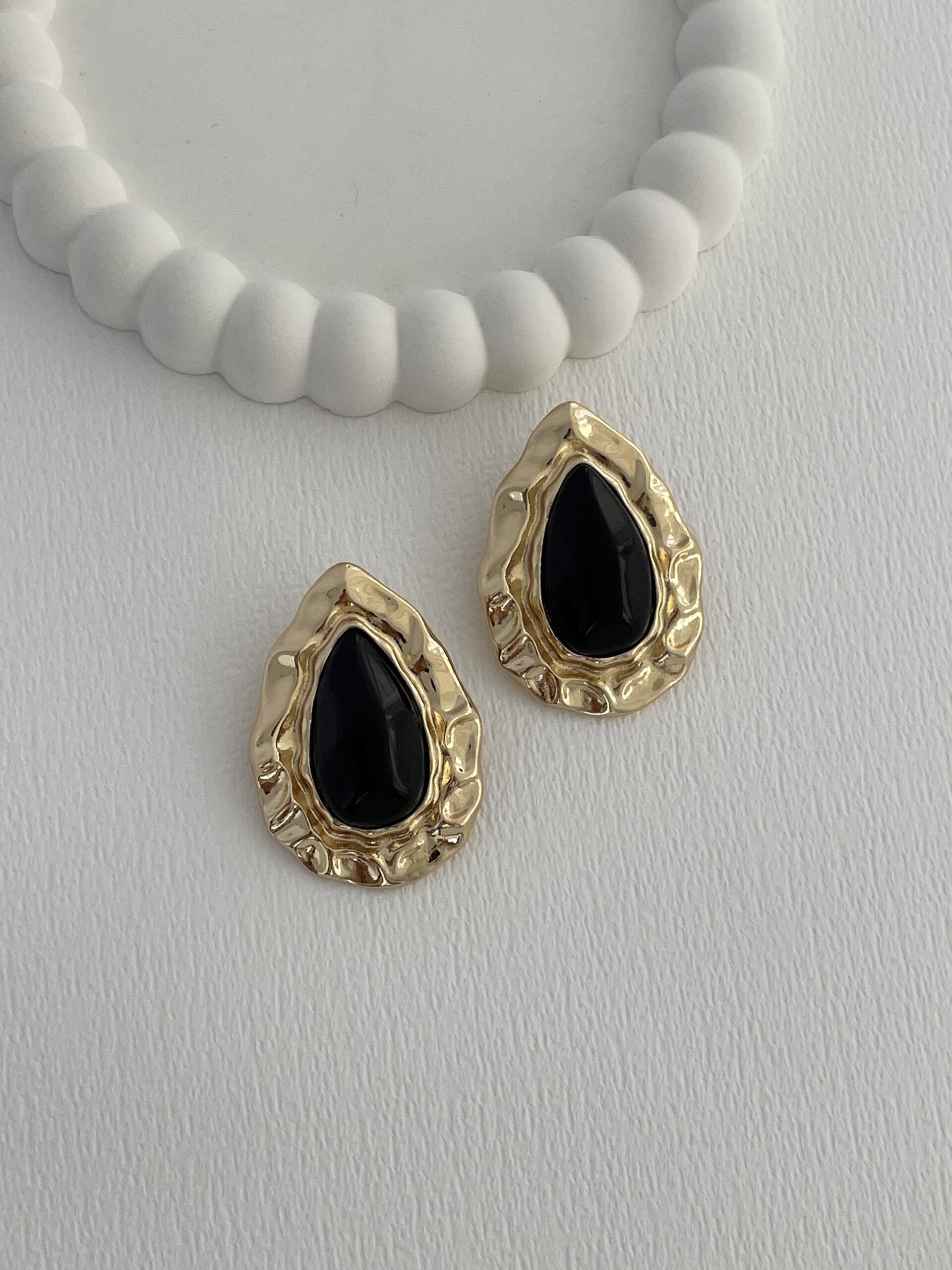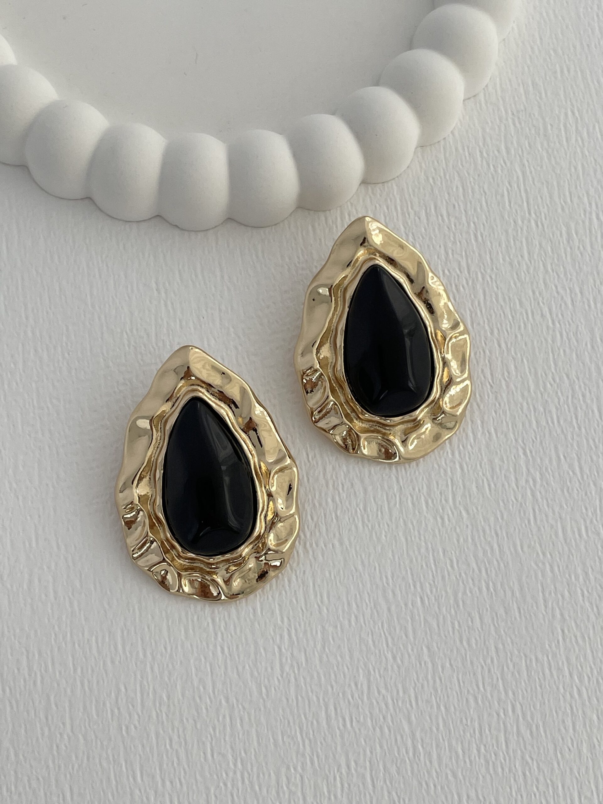 Özel Seri Siyah Kemik Soyut Damla Tasarım Gold Küpe