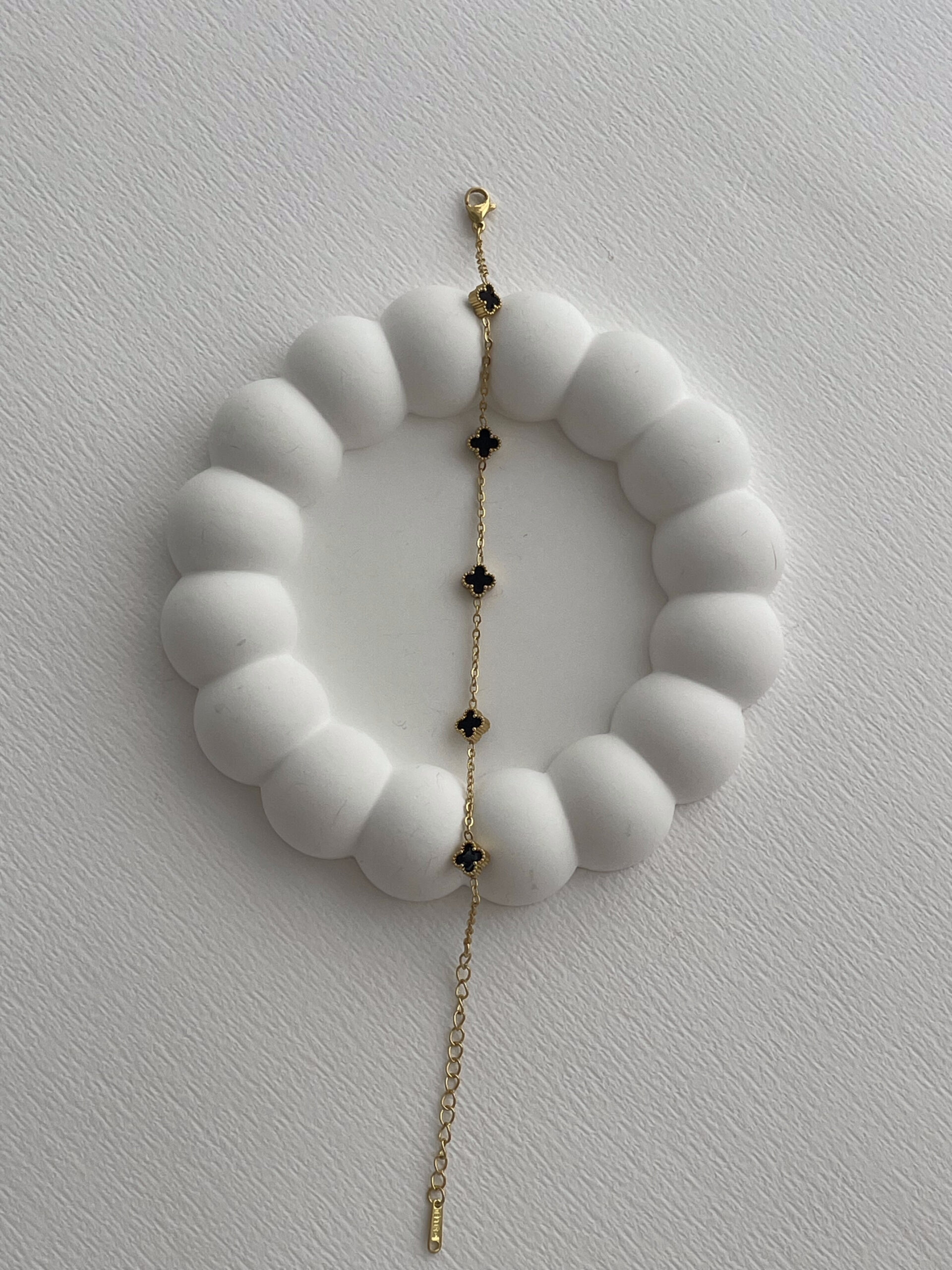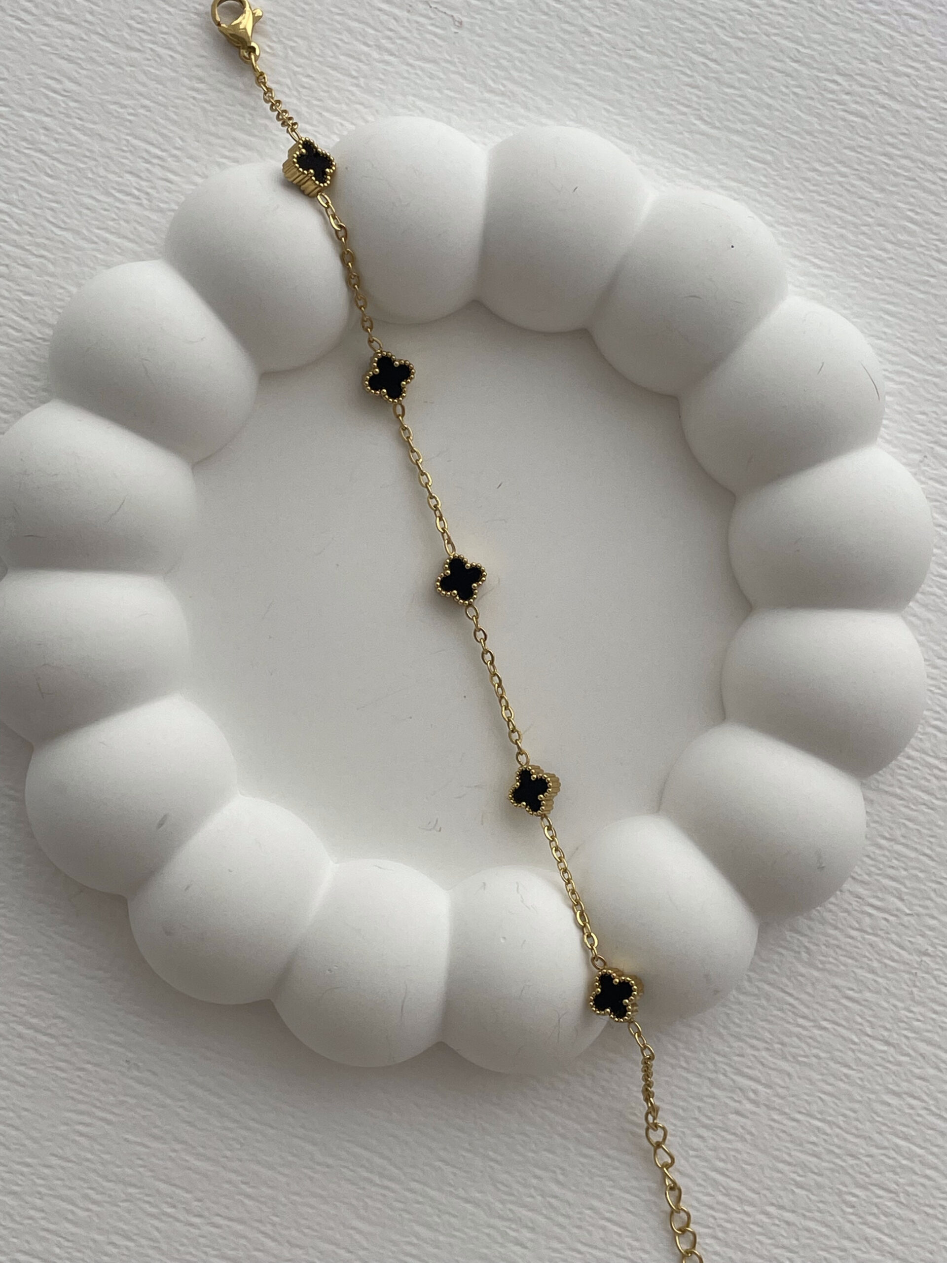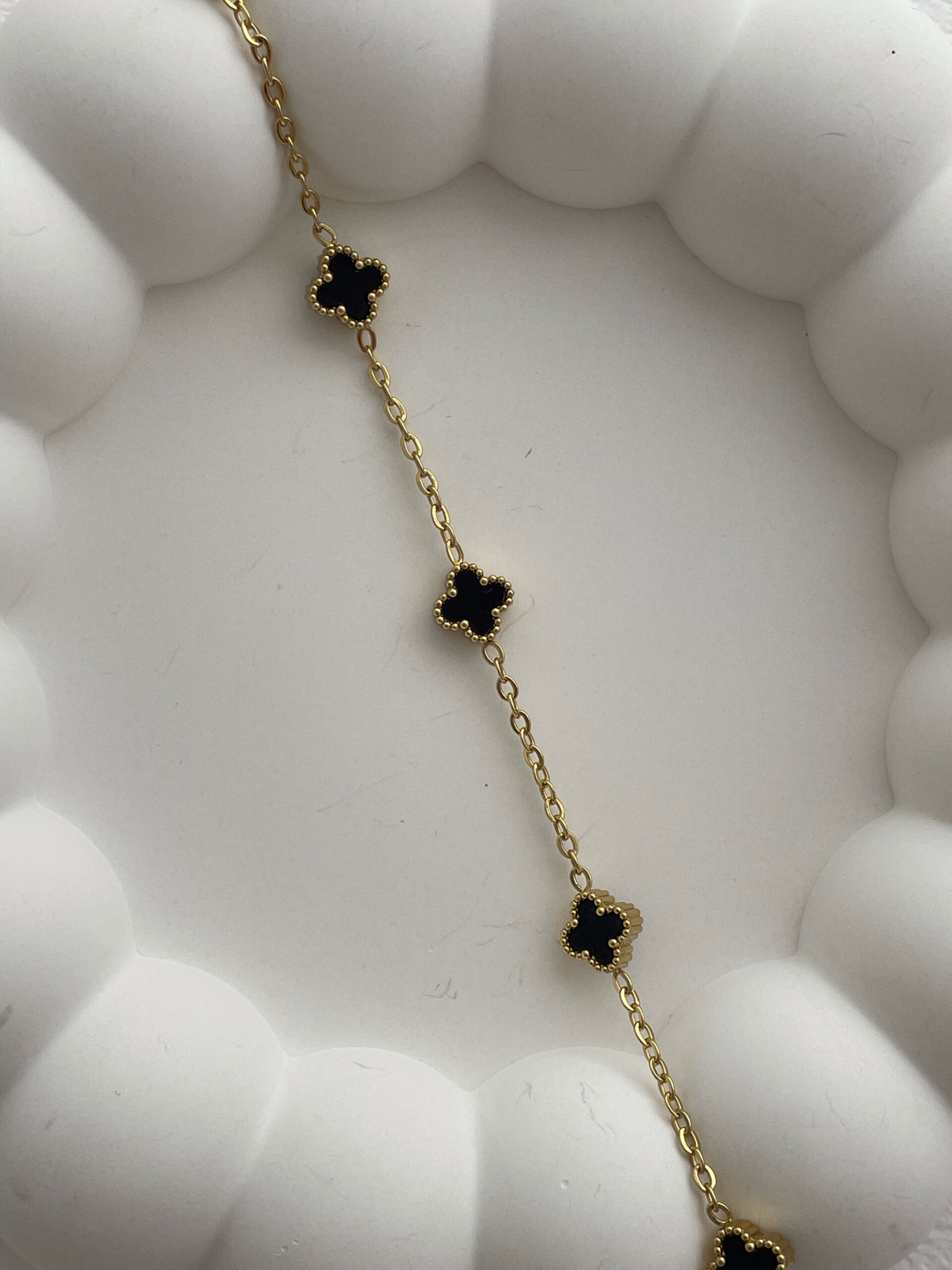 Özel Seri Siyah Mineli Beşli Mini Yonca Tasarım Gold Bileklik