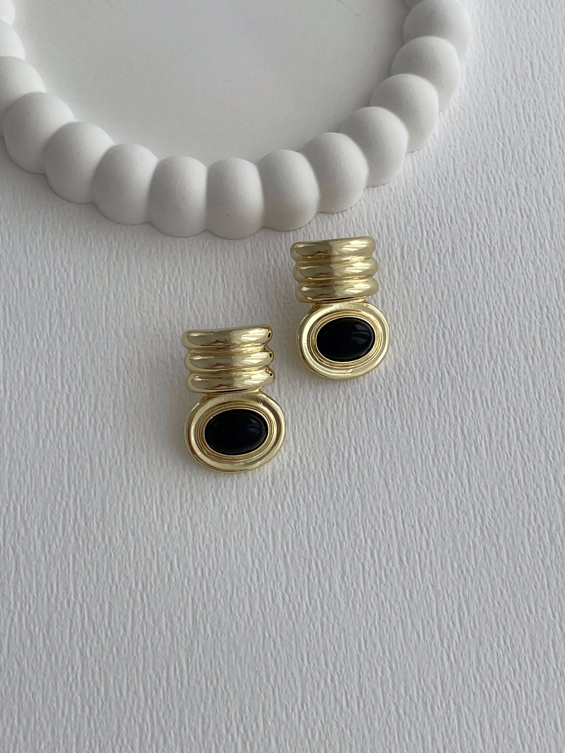 Özel Seri Siyah Mineli Burgu Model Gold Küpe