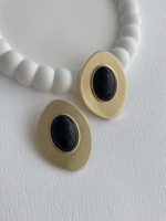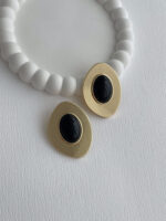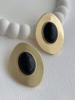 Özel Seri Siyah Mineli Geometrik Tasarım Gold Küpe