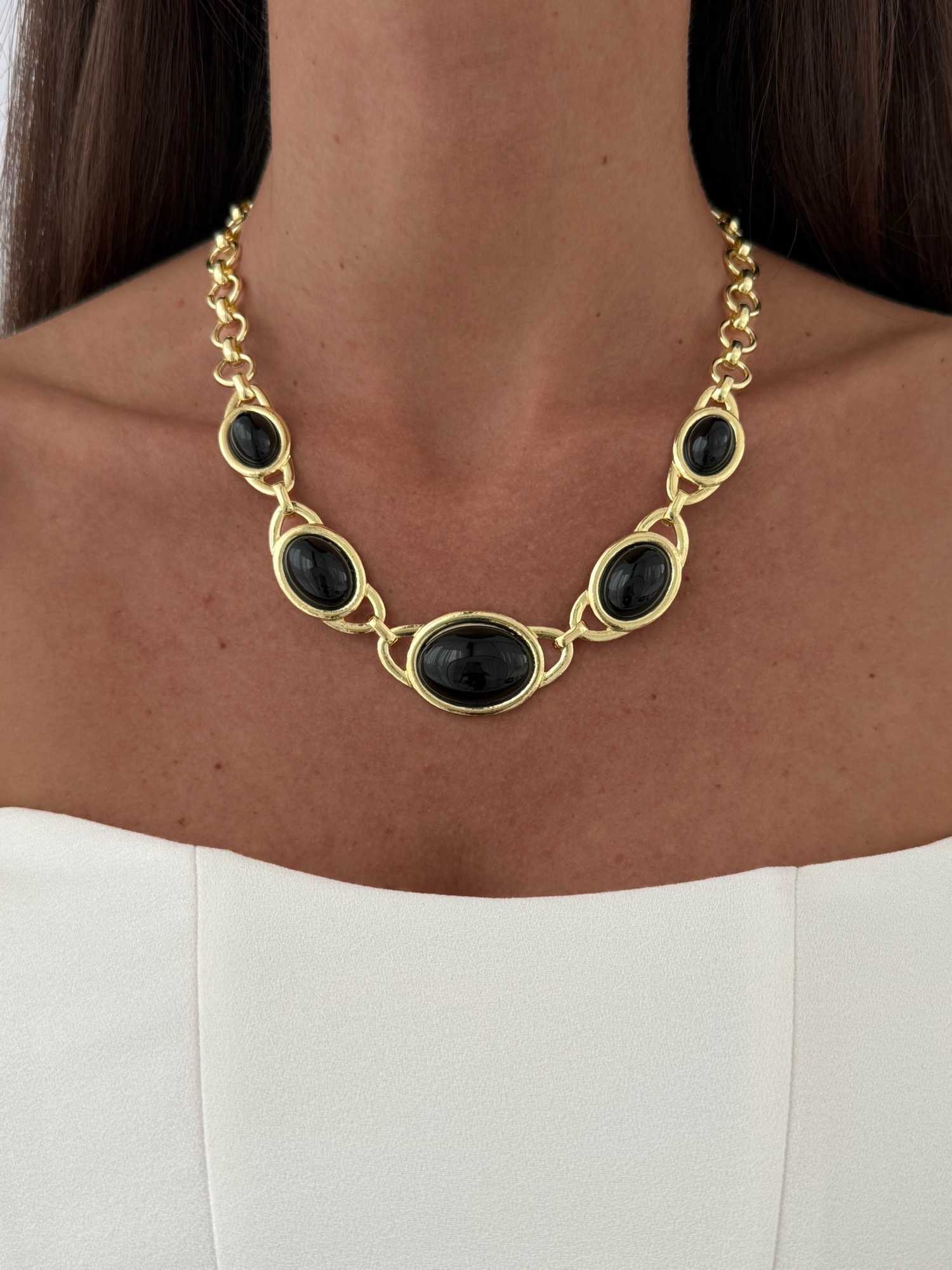 Özel Seri Siyah Mineli MNG Model Gold Kolye