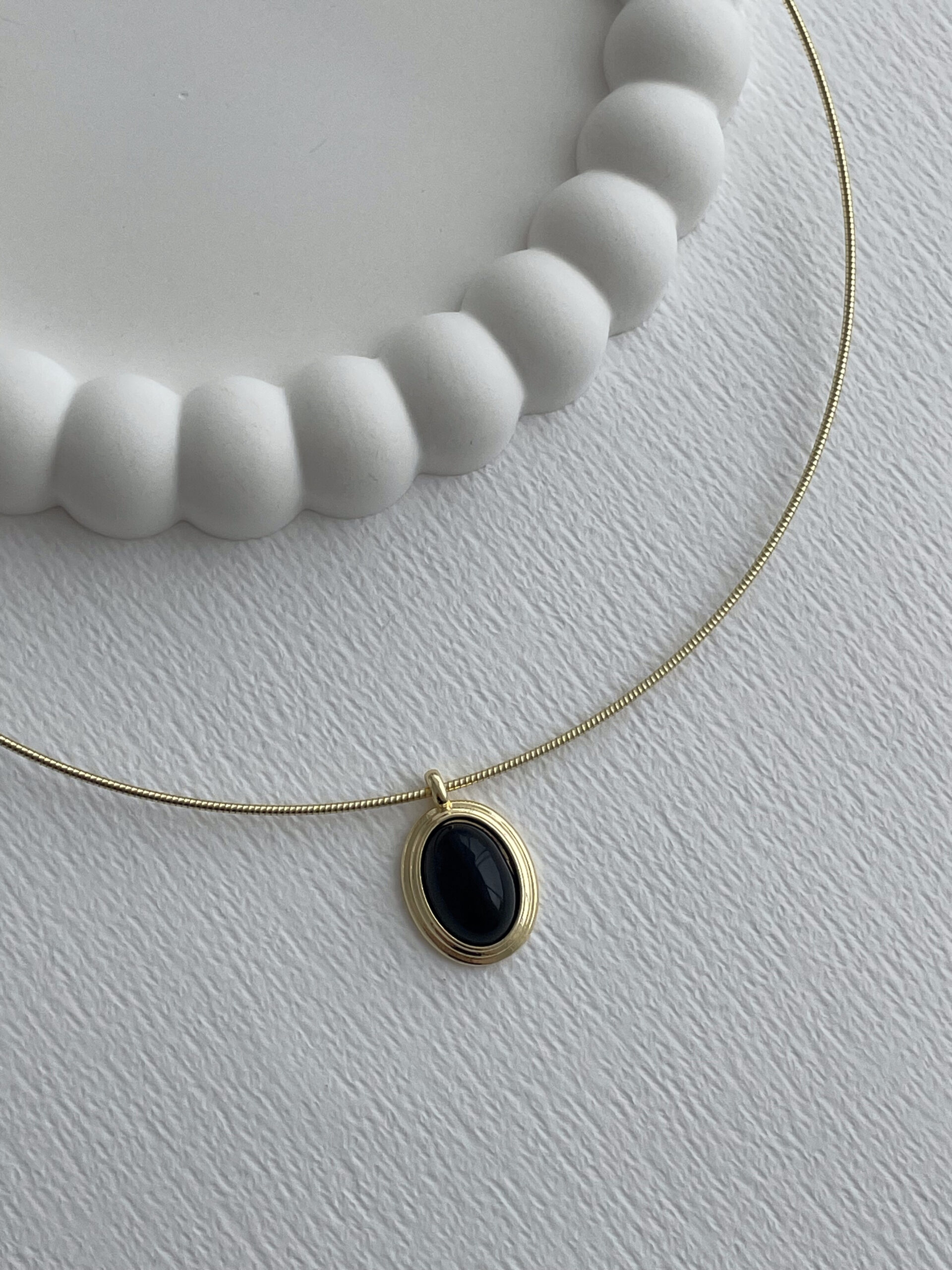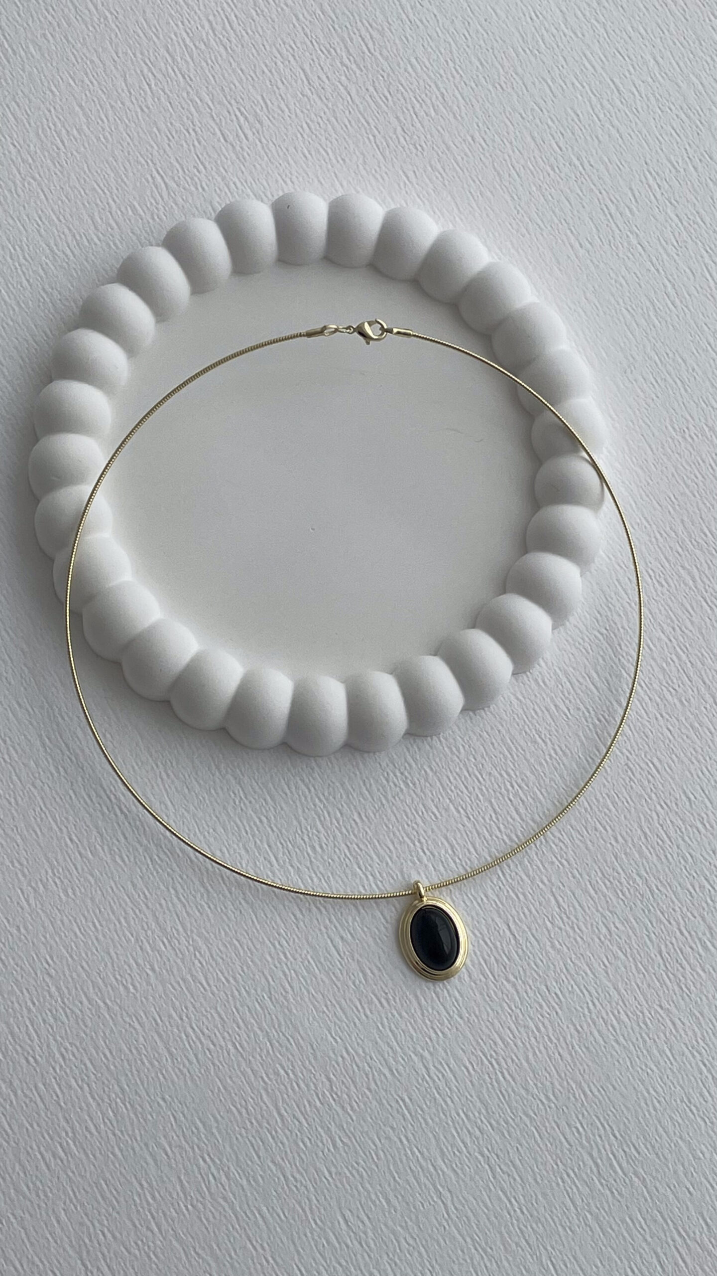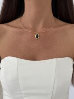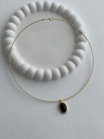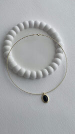 Özel Seri Siyah Mineli Oval Tasarım Gold Choker Kolye