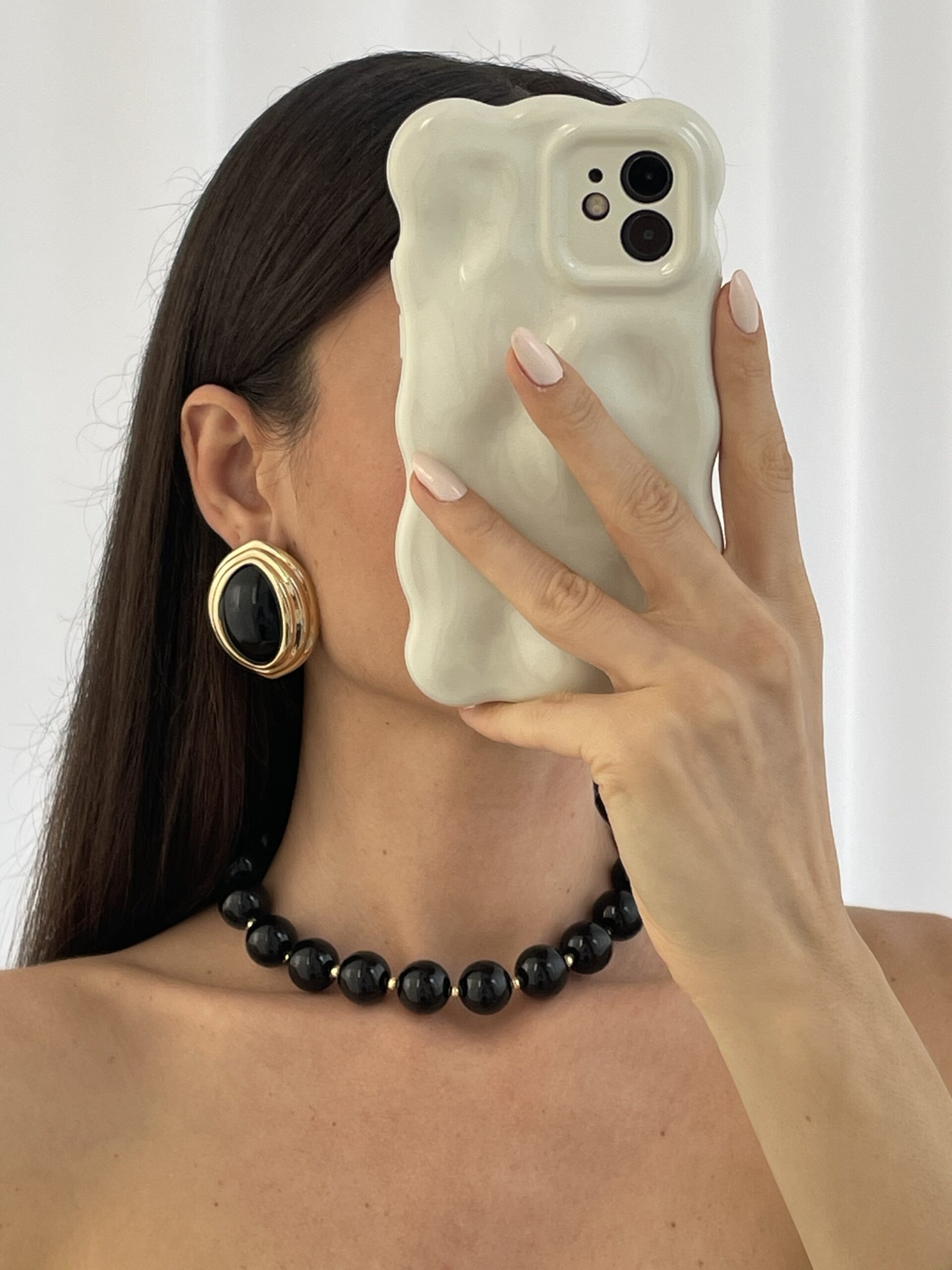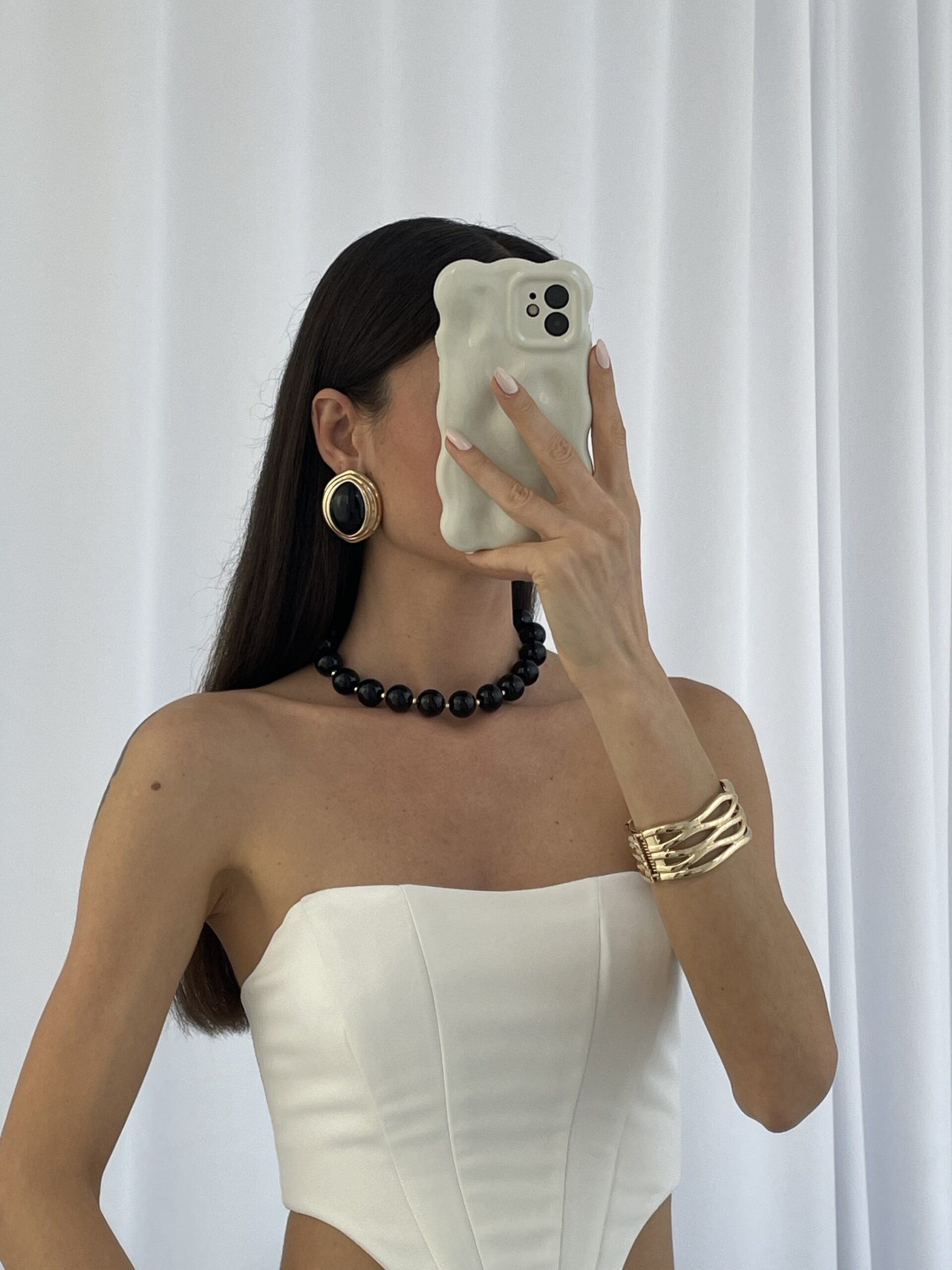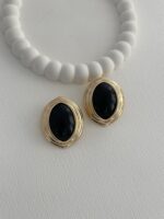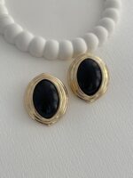 Özel Seri Siyah Mineli Oval Tasarım ZR Model Gold Küpe