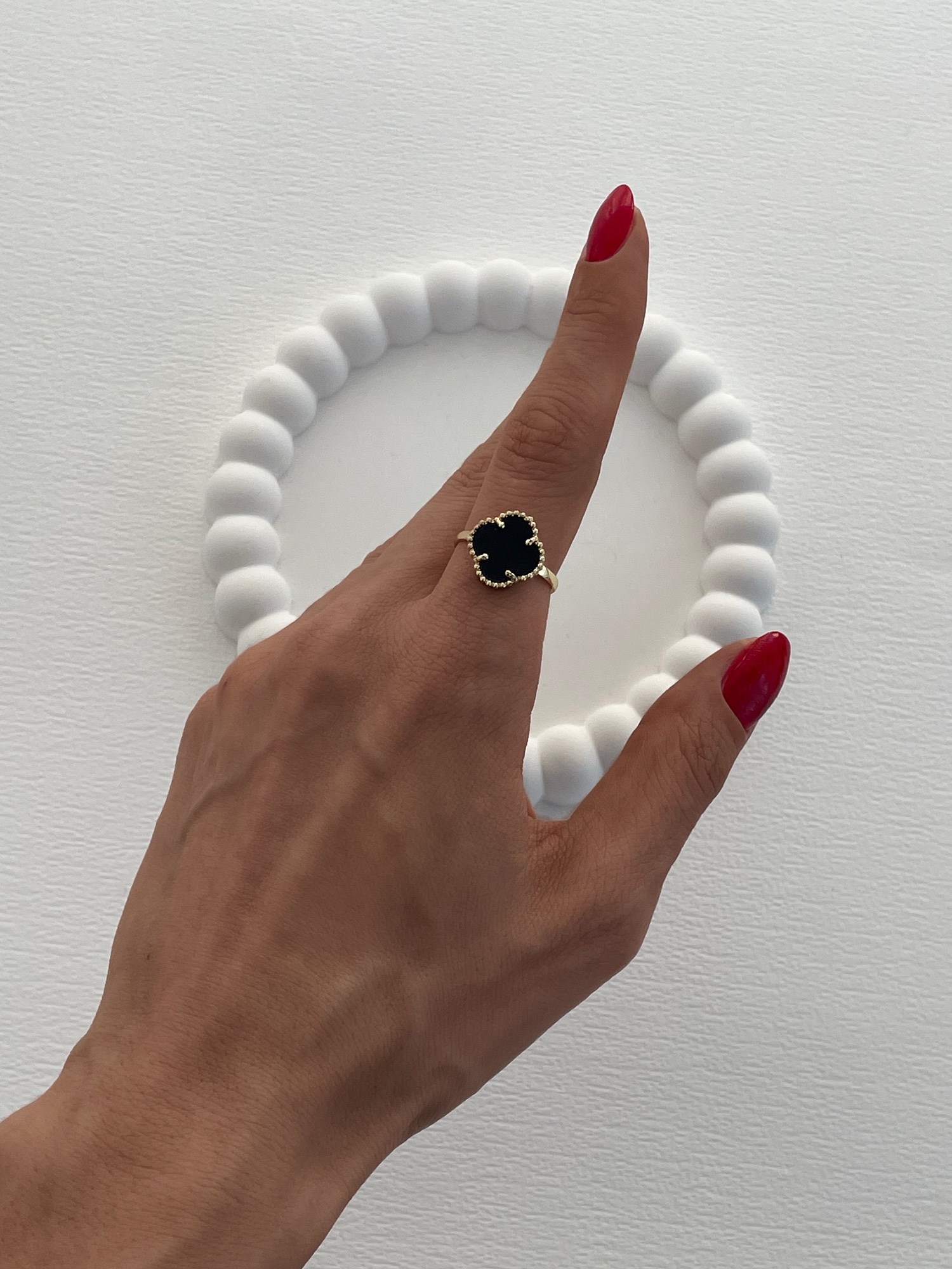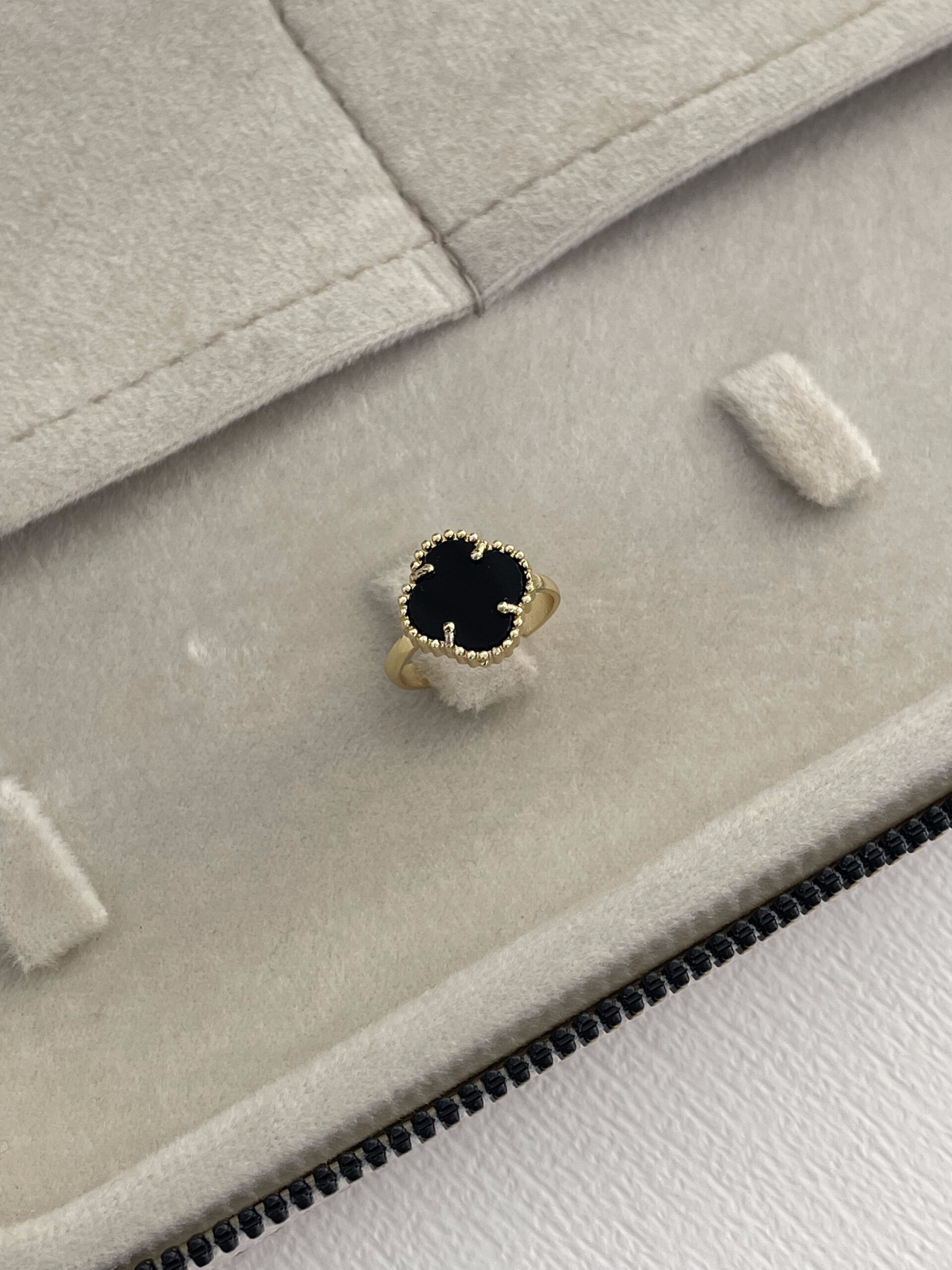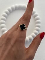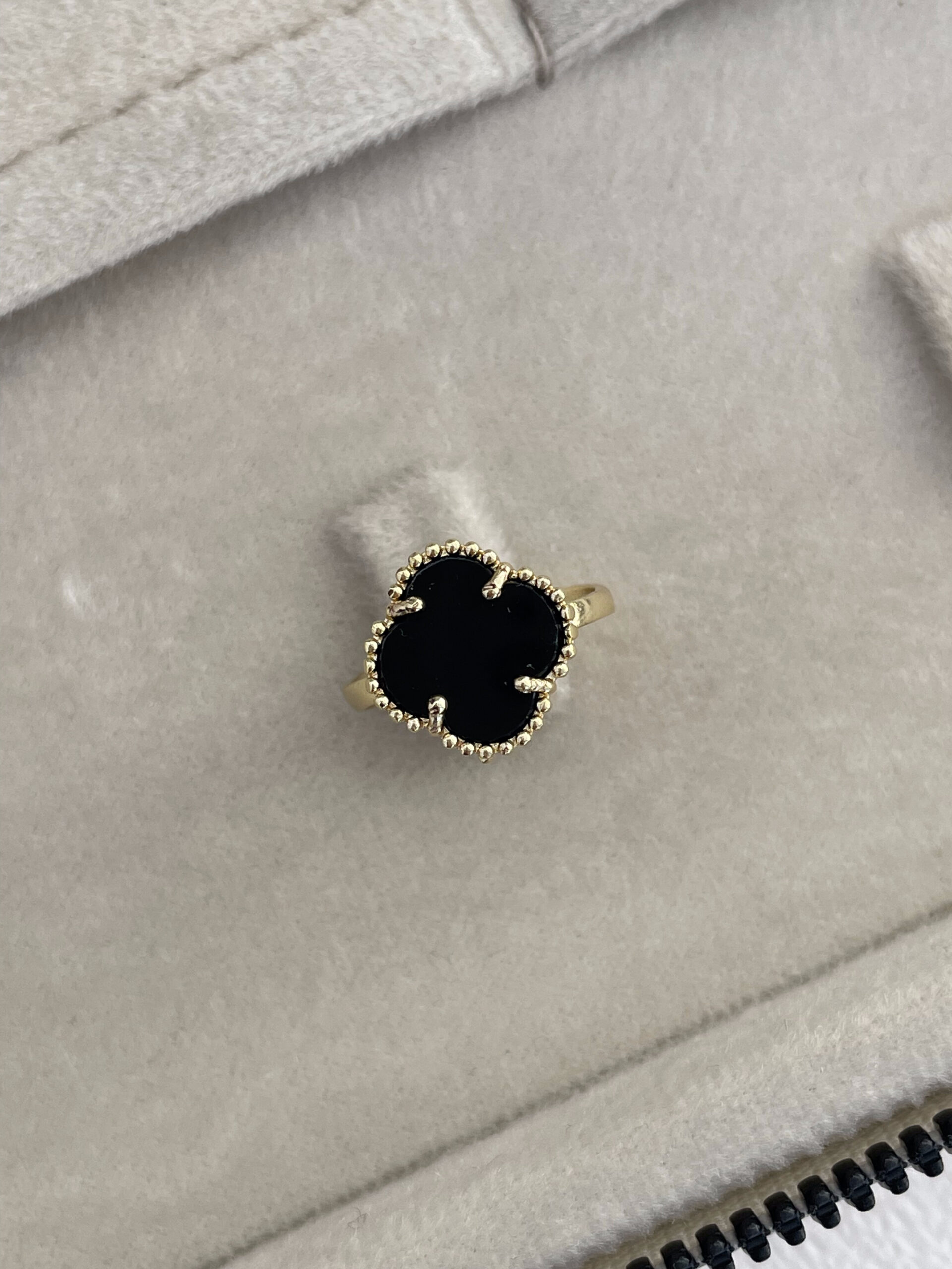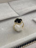 Özel Seri Siyah Mineli Yonca Tasarım Gold Ayarlanabilir Yüzük