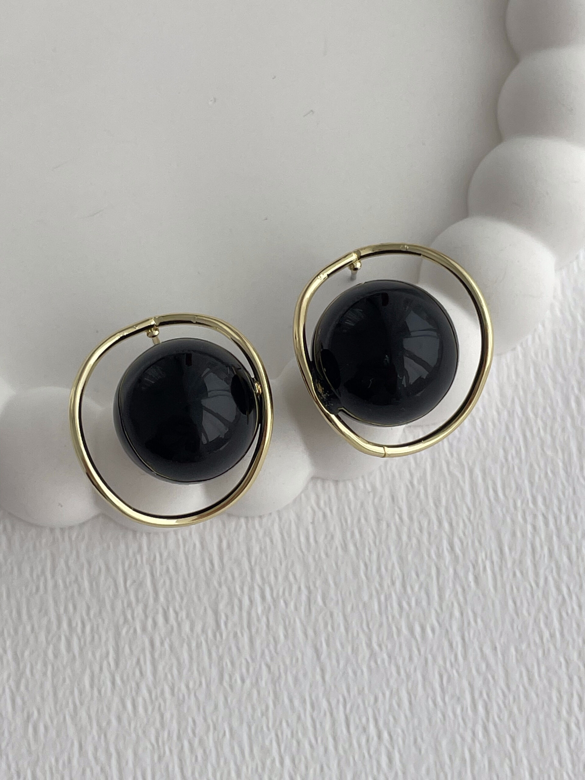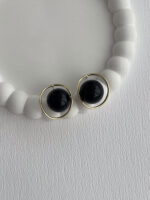Özel Seri Siyah Top Detay Gold Çerçeveli Küpe