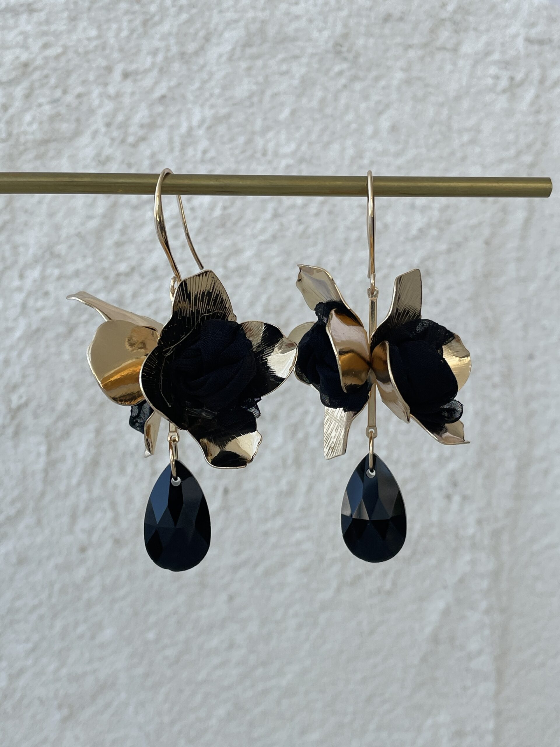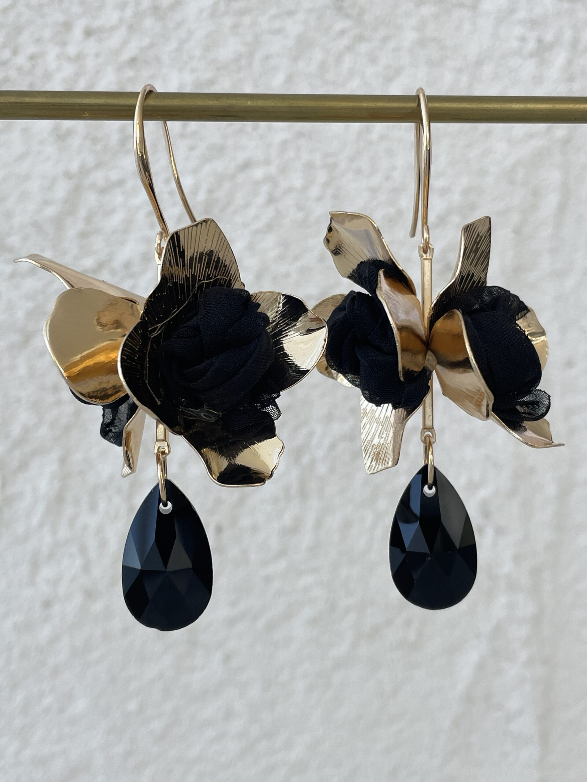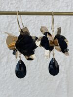 Özel Seri Siyah Tül Tasarım Büyük Gold Damla Küpe