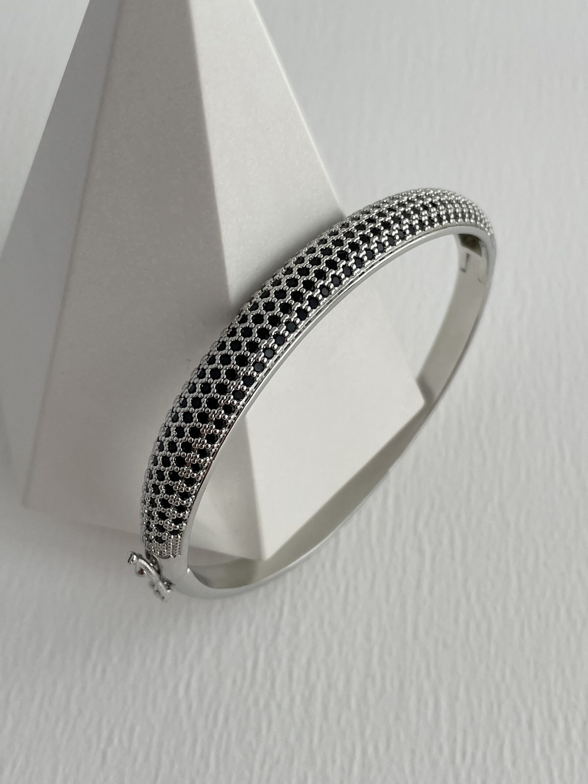 Özel Seri Siyah Zirkon Taşlı Gümüş Kelepçe Bileklik