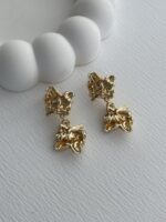 Özel Seri Soyut Çiçek Tasarım Gold Küpe