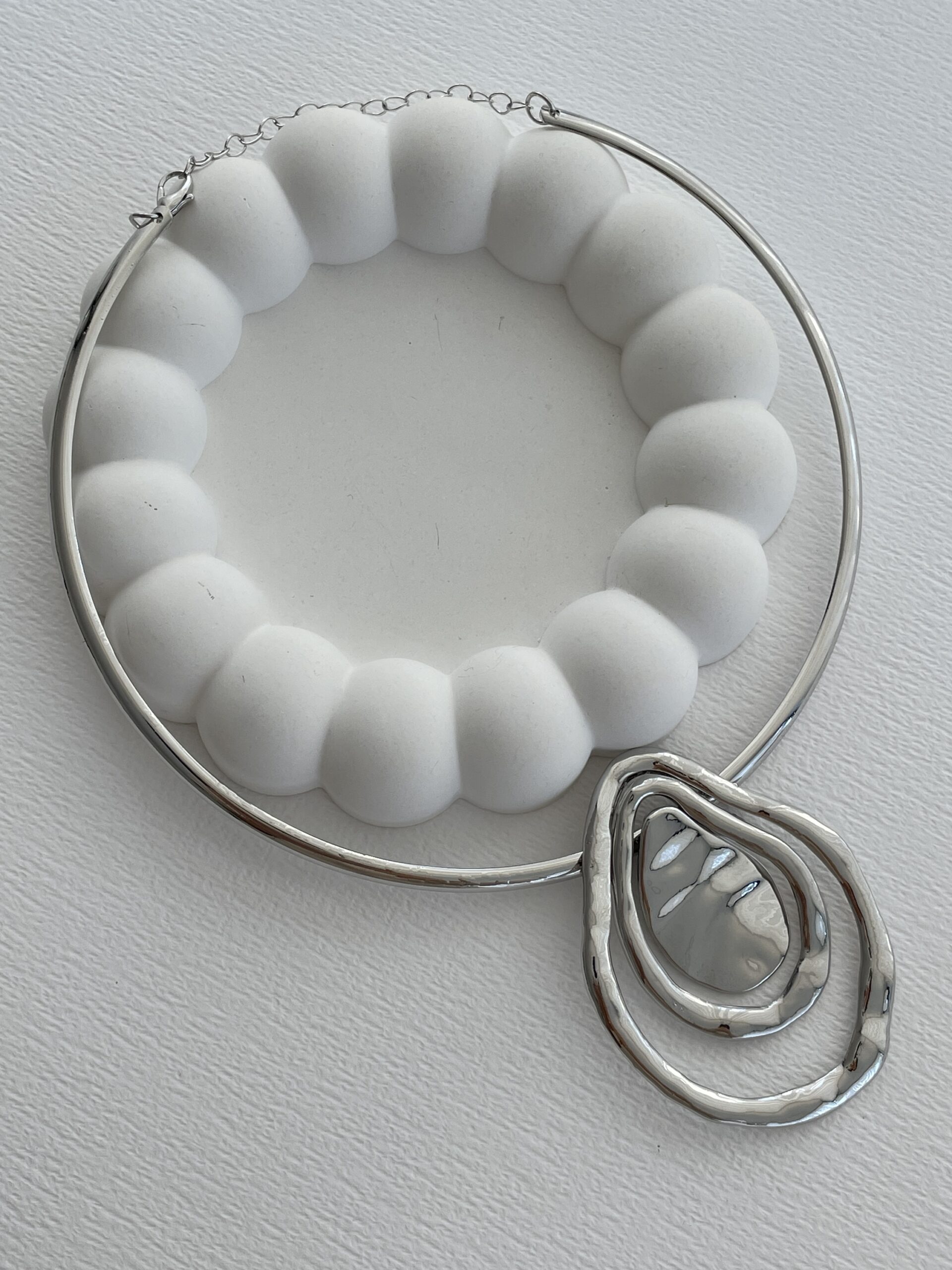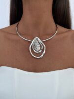 Özel Seri Soyut Damla Tasarım Gümüş Choker Kolye