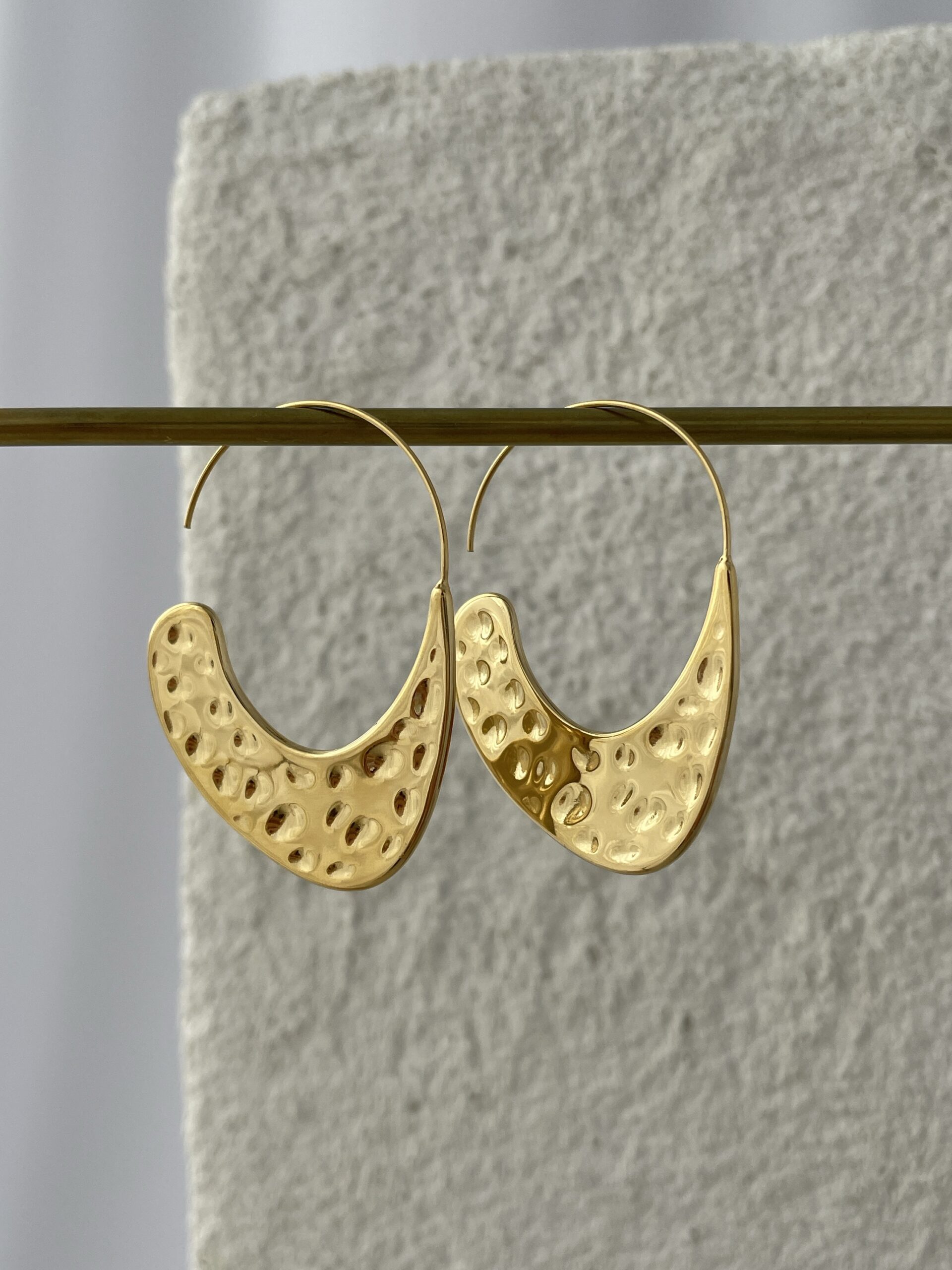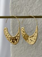 Çelik Soyut Desen Elips Gold Küpe