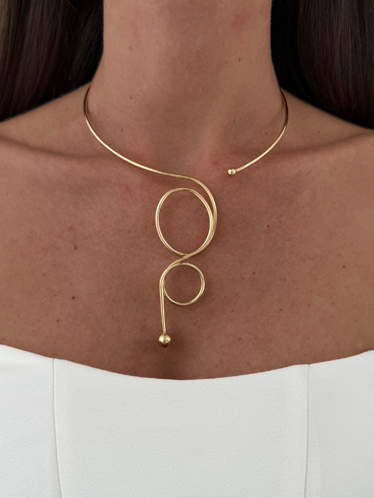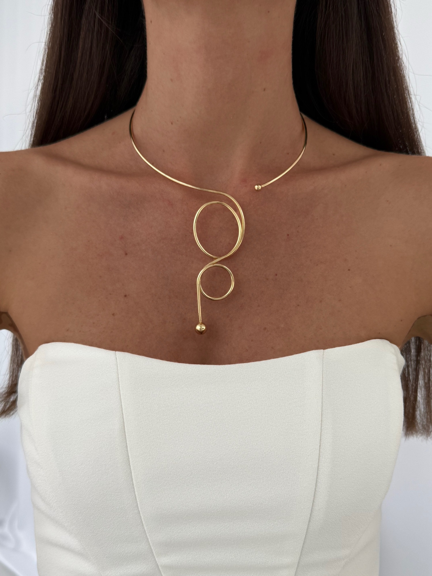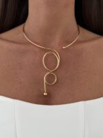Özel Seri Soyut Kıvrım Tasarım Gold Choker Kolye