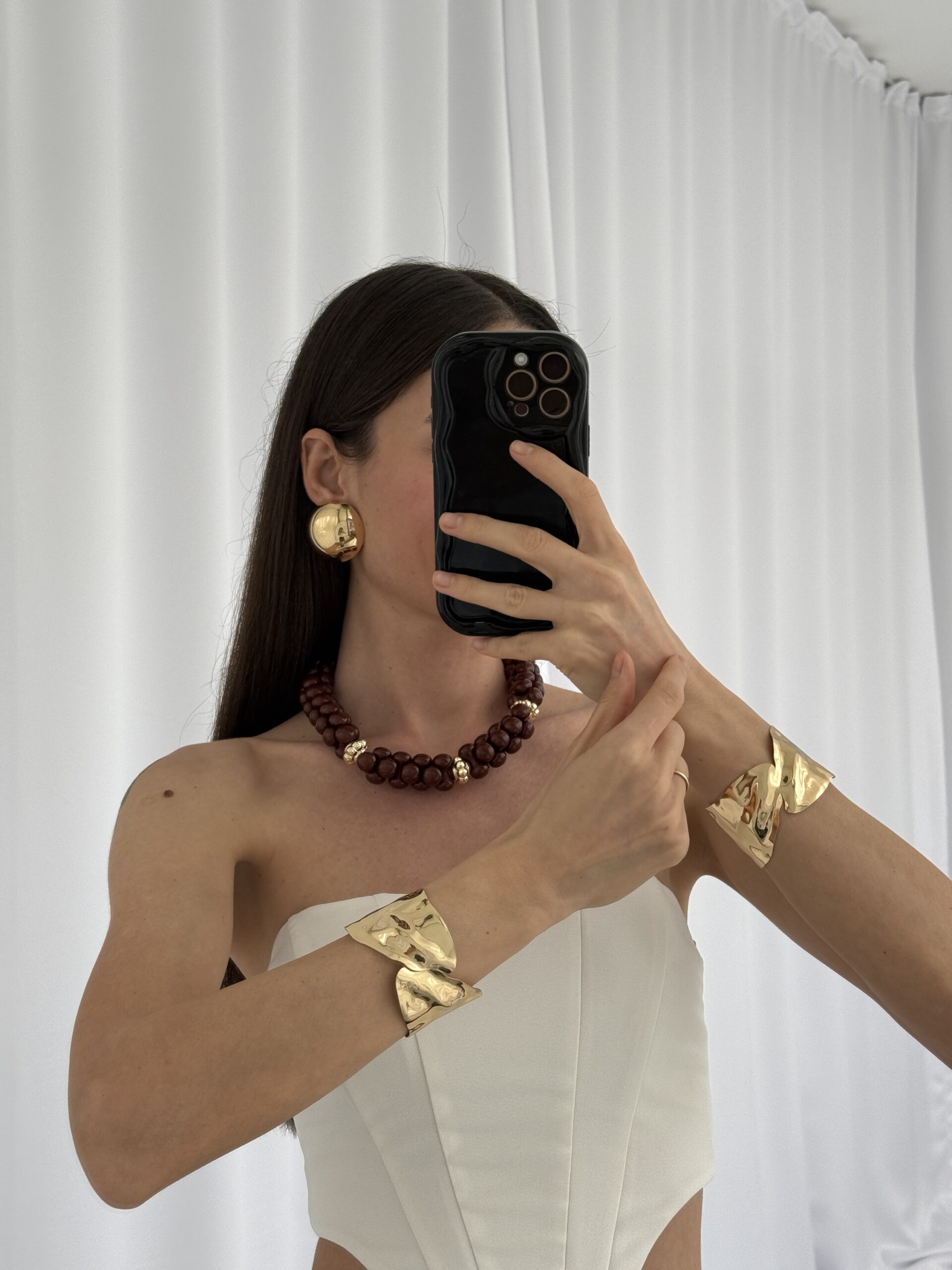 Özel Seri Soyut Tasarım Asimetrik Kıvrım Gold Kelepçe Bileklik