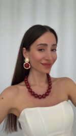 Özel Seri Soyut Tasarım Gold Detay Bordo Küpe