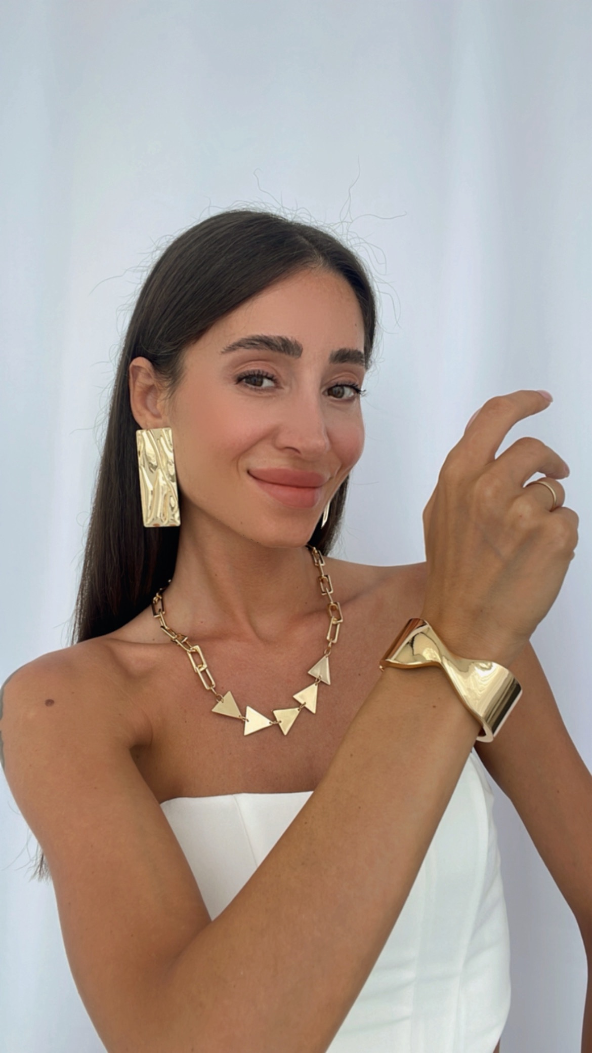 Özel Seri Soyut Tasarım Gold Maksi Boy Küpe