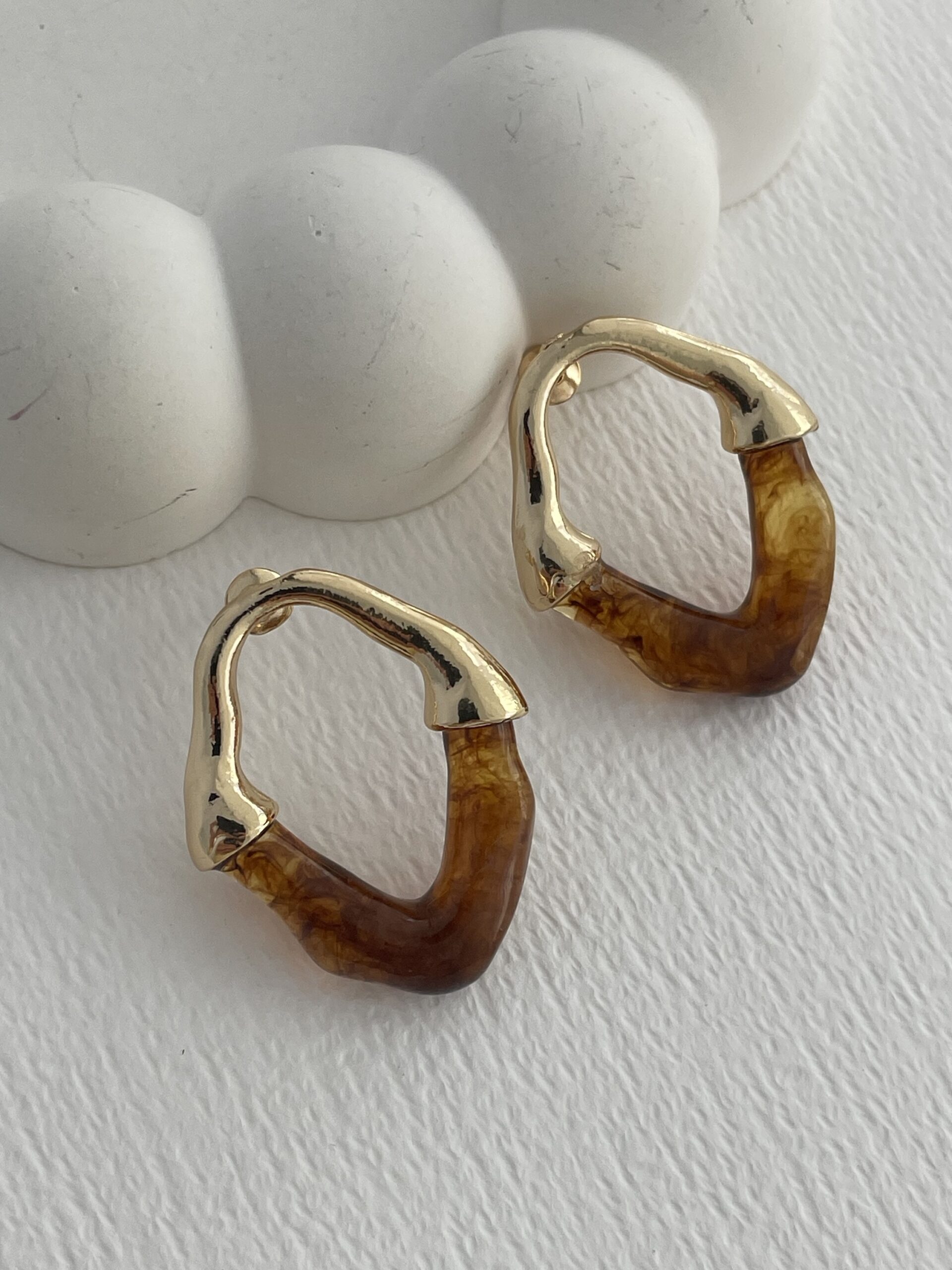 Özel Seri Soyut Tasarım Kahve Kemik Gold Küpe