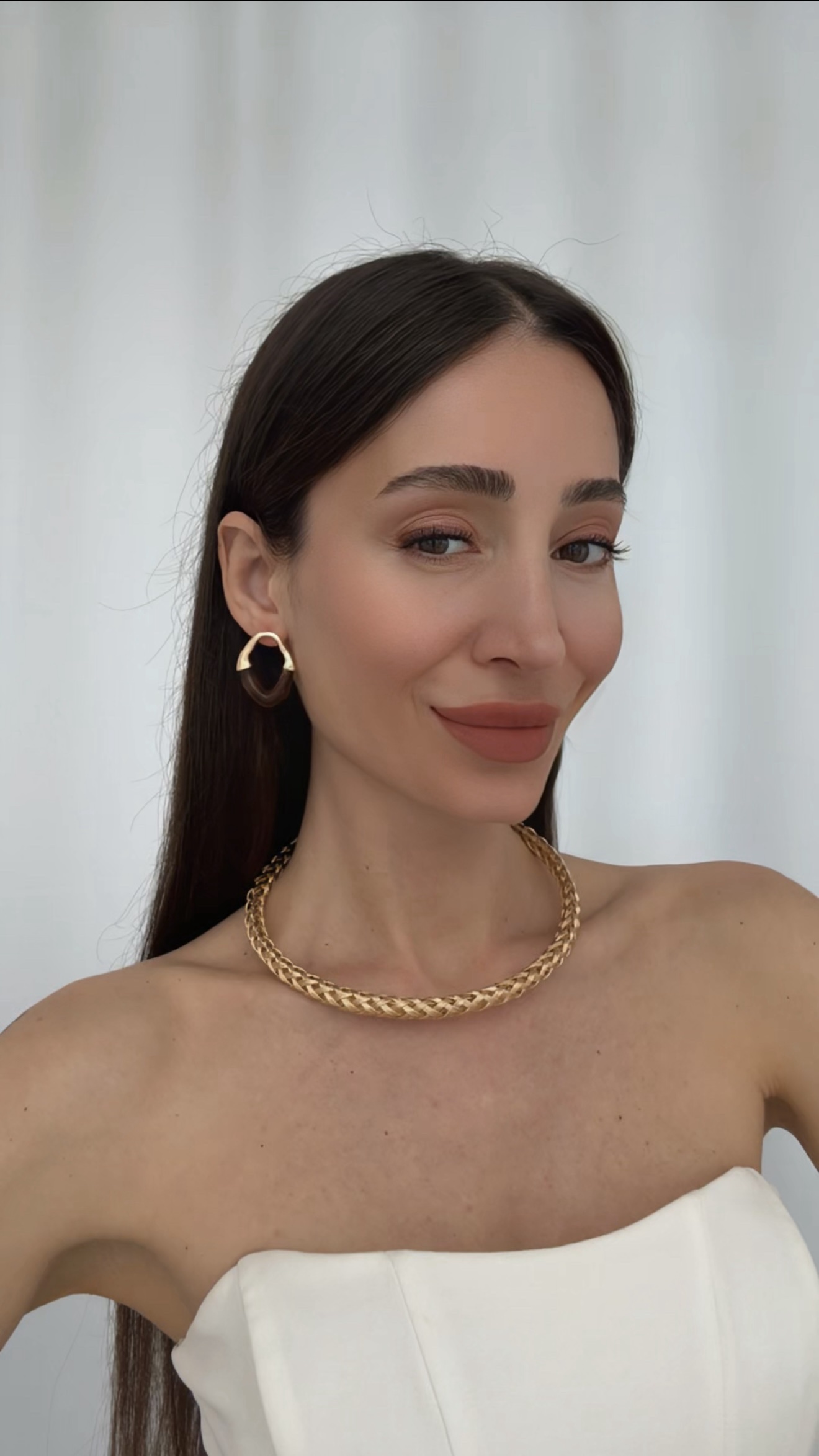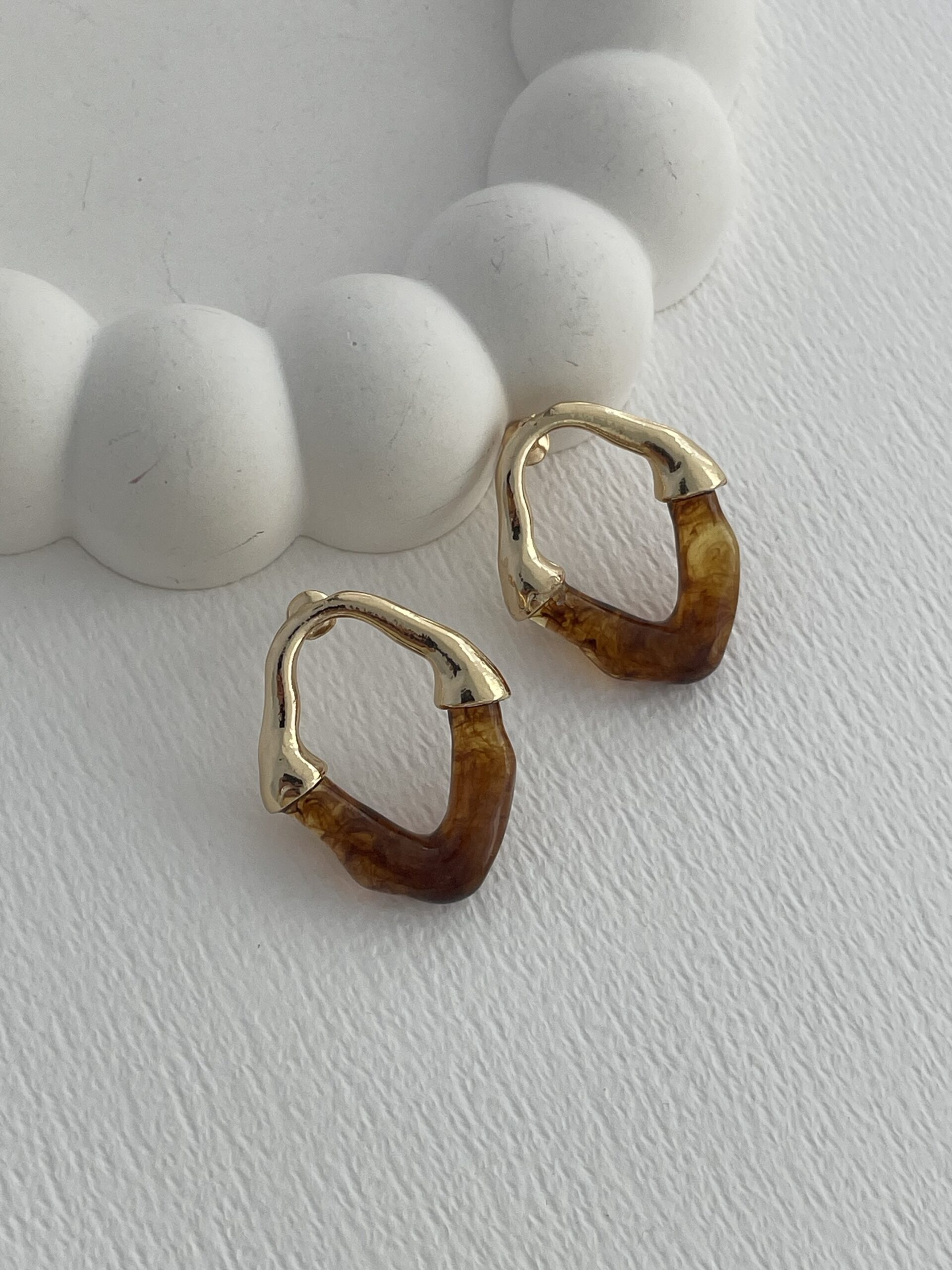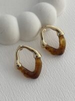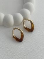 Özel Seri Soyut Tasarım Kahve Kemik Gold Küpe