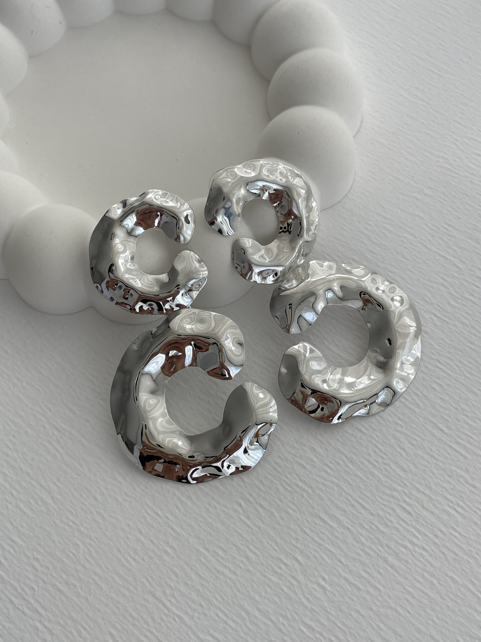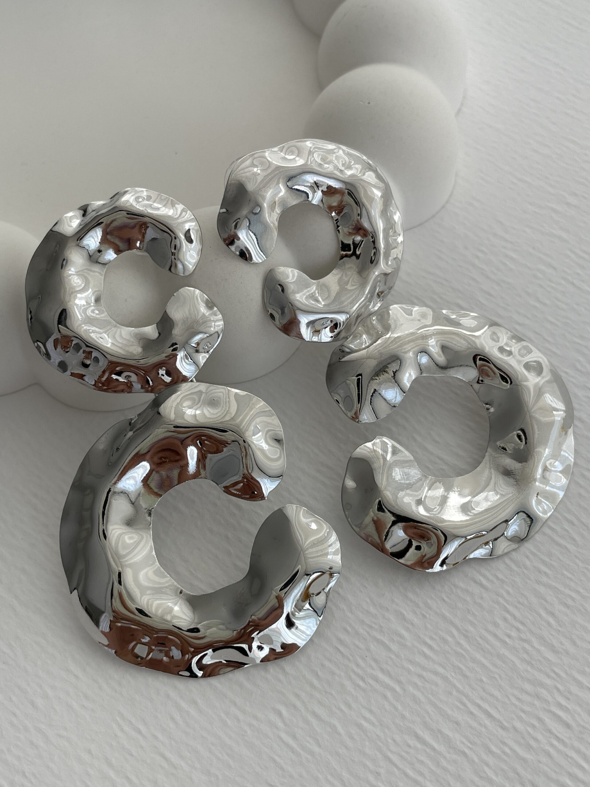 Özel Seri Soyut Tasarım Maksi Boy Gümüş Plaka Küpe