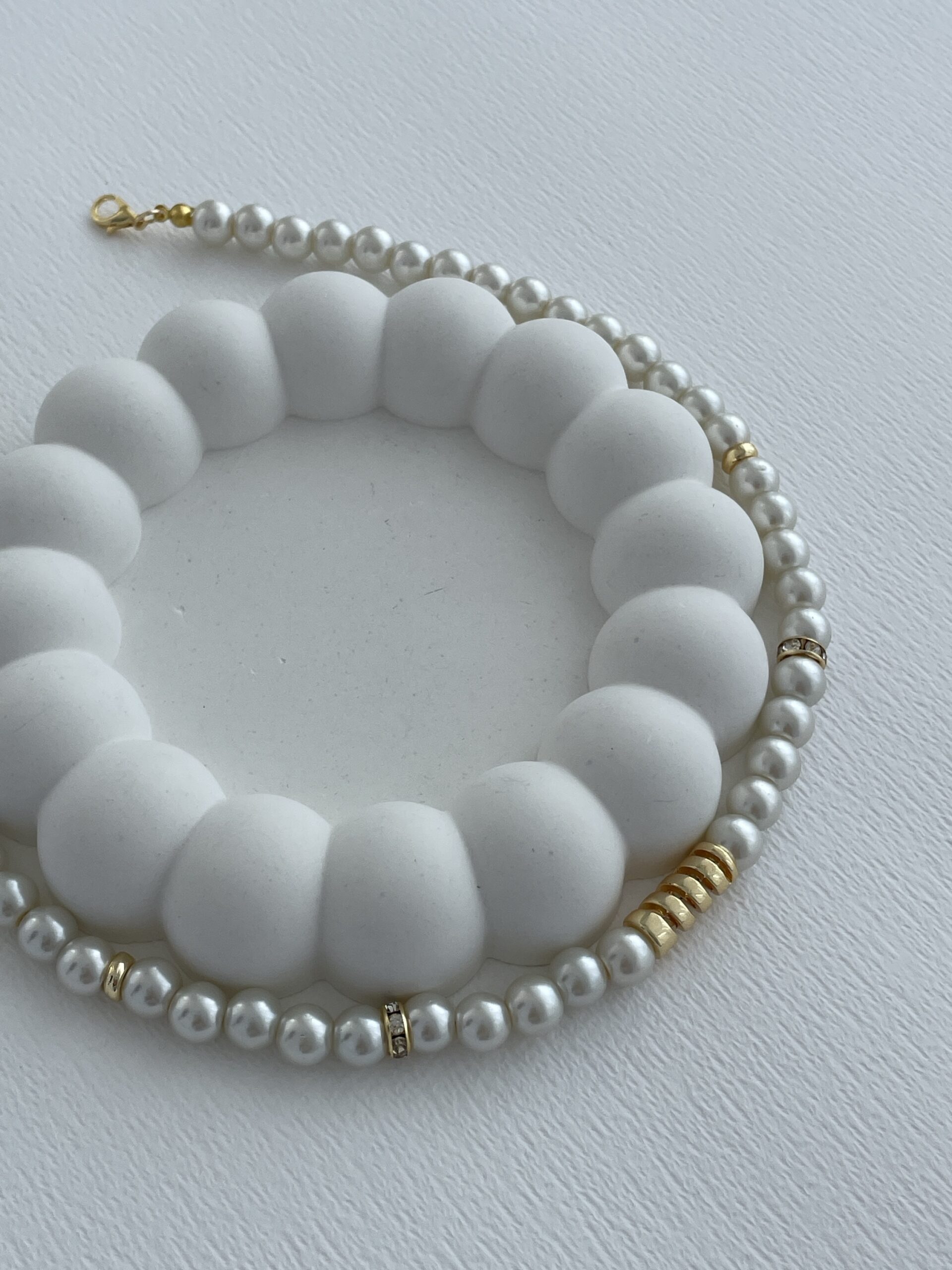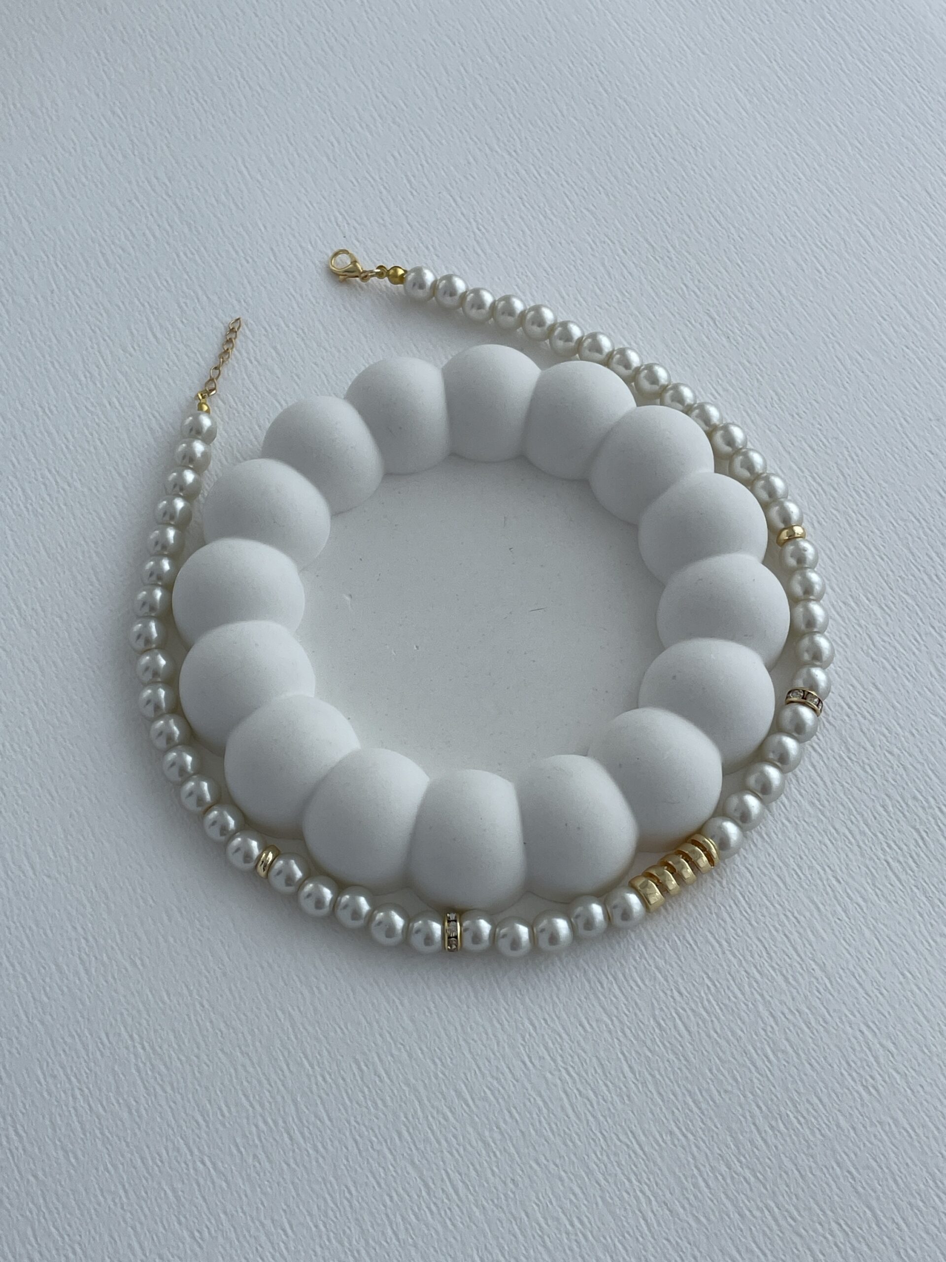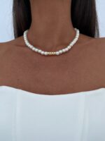 Özel Seri Spiral Detaylı Zirkon Taşlı Gold İnci Kolye