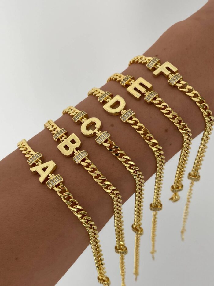 Özel Seri T Harf Zirkon Taşlı Gold Bileklik