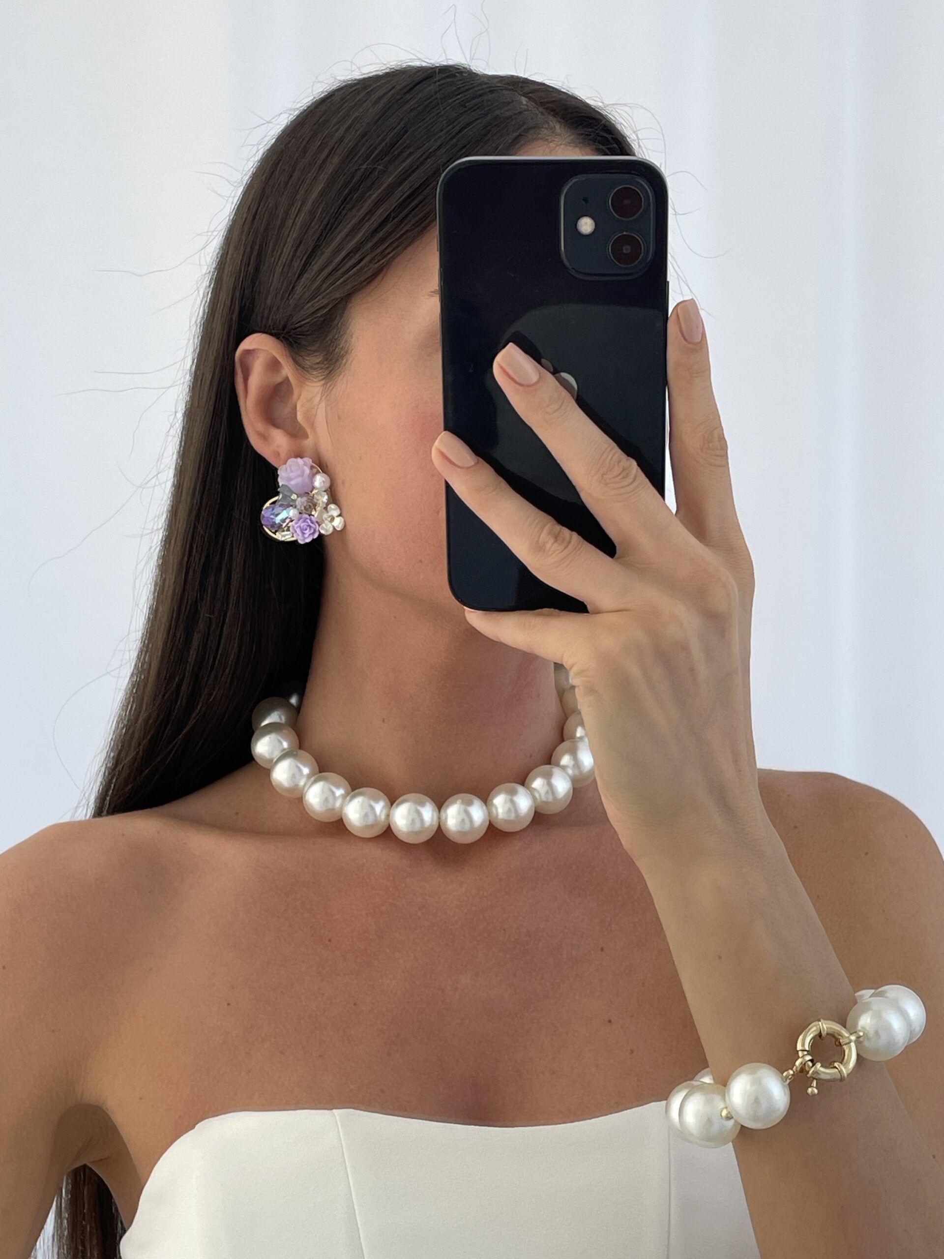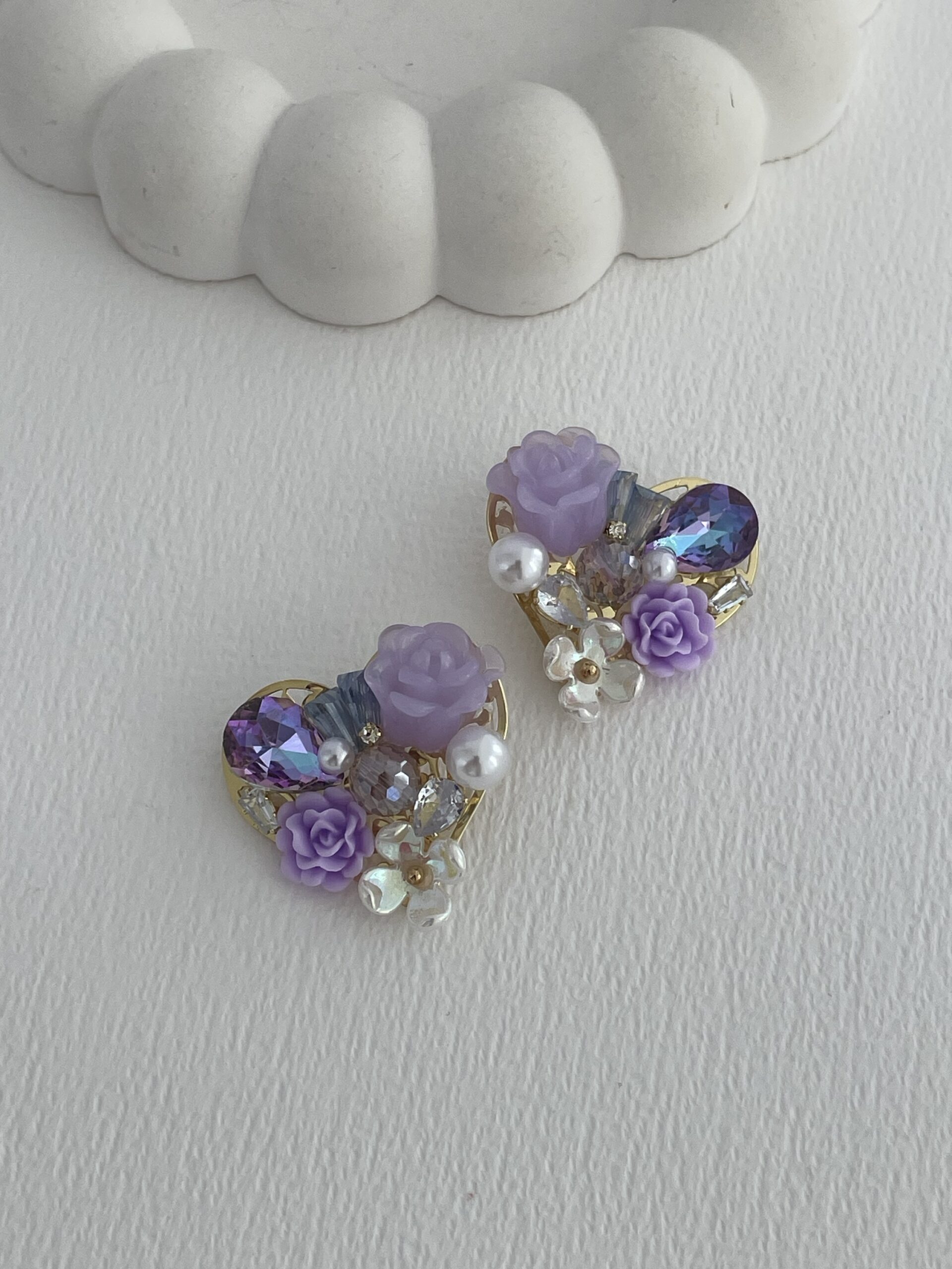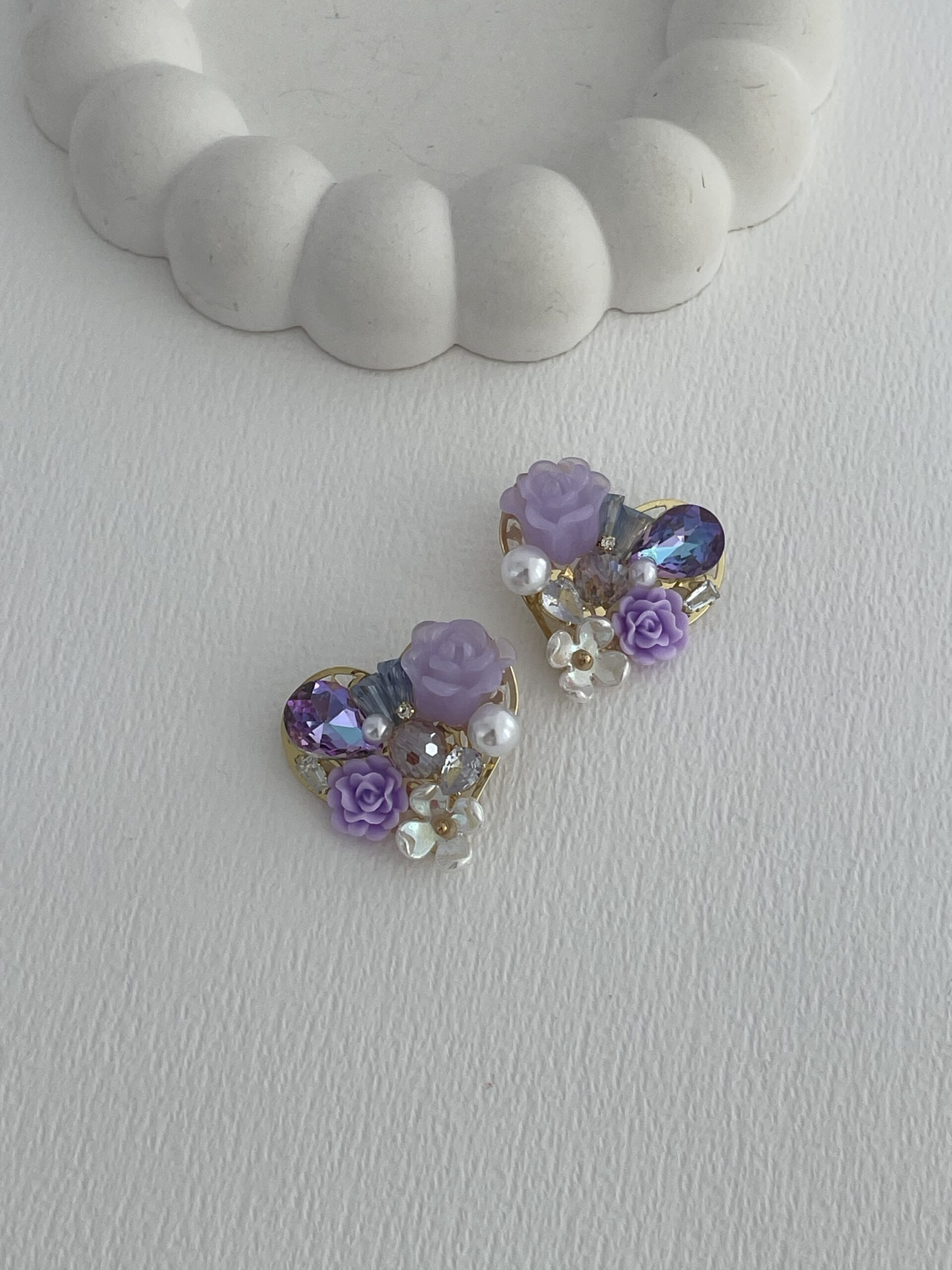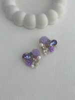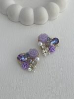 Özel Seri Taşlı Çiçek & İnci Tasarım Mor Kalp Küpe